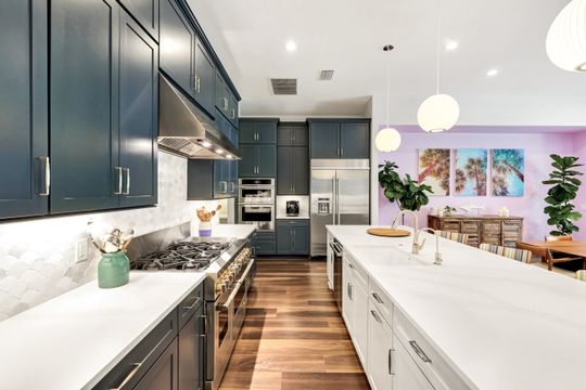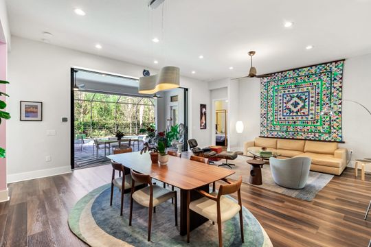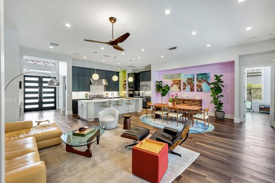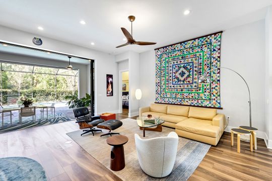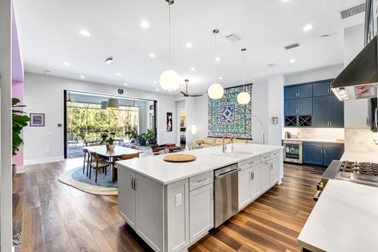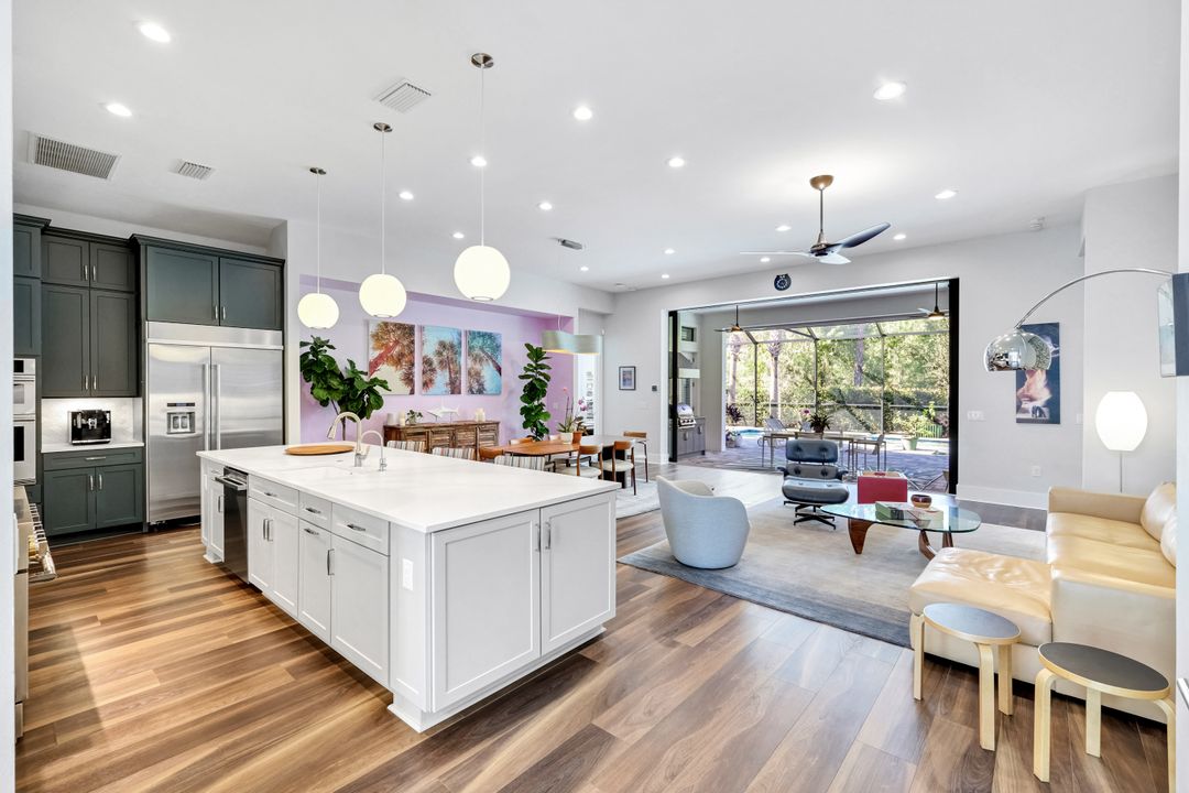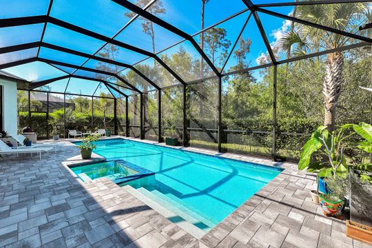 For buyers seeking luxury, location, and top-tier educational access, this luxury home, built in 2022, delivers on all counts. Its flexible floor plan, ideal for growing families, multi-generational living, or those seeking a dedicated work-from-home space, offers 5 bedrooms, 4 full baths and 1 half bath within over 3,800 square feet of living. Here in North Naples, within the private, gated community of Ardena, an intimate enclave of just 77 residences off Livingston Road, you have quick access to Interstate 75, A-rated schools, including Aubrey Rogers High School, North Naples Middle, and Veterans Memorial Elementary, and the popular Seed to Table grocery destination. The home’s thoughtfully designed layout features main living and dining areas, a primary suite, and three guest bedrooms all on the main level. Upstairs, a spacious bonus room, private den, additional bedroom, and full bath create a separate retreat perfect for guests or extended family. Interior finishes include wide-plank vinyl flooring throughout the first floor, soaring ceilings, plantation shutters, and custom closet built-ins. The chef’s kitchen is a joy to cook in with top-of-the-line JennAir appliances, natural gas cooking, a walk-in pantry, a separate bar with wine cooler, and a massive quartz-topped island. Impact-resistant windows and doors provide peace of mind, complemented by an electric storm shutter protecting the lanai. Significant owner upgrades include a whole-house natural gas generator, whole-house water filtration system, tankless water heater, and a new washer and gas dryer—making this home truly move-in ready. Designed for elevated Florida living, the outdoor space features a saltwater lap pool and spa, a fully equipped outdoor kitchen with built-in grill and refrigerator, and a quiet wooded view offering rare tranquility in North Naples. The three-car garage includes elevated storage and attic space for added functionality. Ardena offers low HOA fees and a quiet residential setting without bundled amenities, while optional private club memberships for golf, tennis, fitness, and an active social calendar are available just minutes away at The Strand and Quail Creek. A rare opportunity to own a nearly new pool home with impact-rated construction, whole-house generator, and optional golf club access in one of North Naples’ most desirable locations.