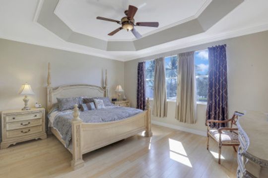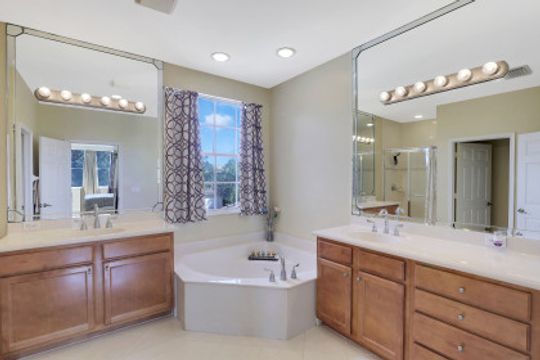 This immaculate "Monaco" is the perfect family home with 3 Bedrooms (2 being master suites), 2.5 baths, extra wide two car garage, and 2452 sq ft under air. When you step inside, you will find a light and bright floorplan with Formal Living & Dining Rooms and Family Room open to the updated Kitchen including newer SS Appliances, 42" Solid Wood Cabinets, Extended Cabinet Pantry, and Quartz countertops. Upstairs, you will find rich wood floors that run throughout all 3 bedrooms. Outside, the extended covered area is ideal for Al Fresco dining and ample room for a pool. The large second master suite could be split to make an additional bedroom making the home a total of 4 bedrooms. NEW ROOF IN PROCESS! Just walking distance to "Club at Saturnia Grande" which offers resort pool, hot tub, lap pool, kiddie pool, saunas, fitness center, billiards room, ball room, 4 tennis courts, basketball court, and more! HOA fees include Landscaping, Irrigation, Clubhouse Amenities, Alarm Monitoring, Cable TV, Internet, and Phone! A RATED SCHOOLS!