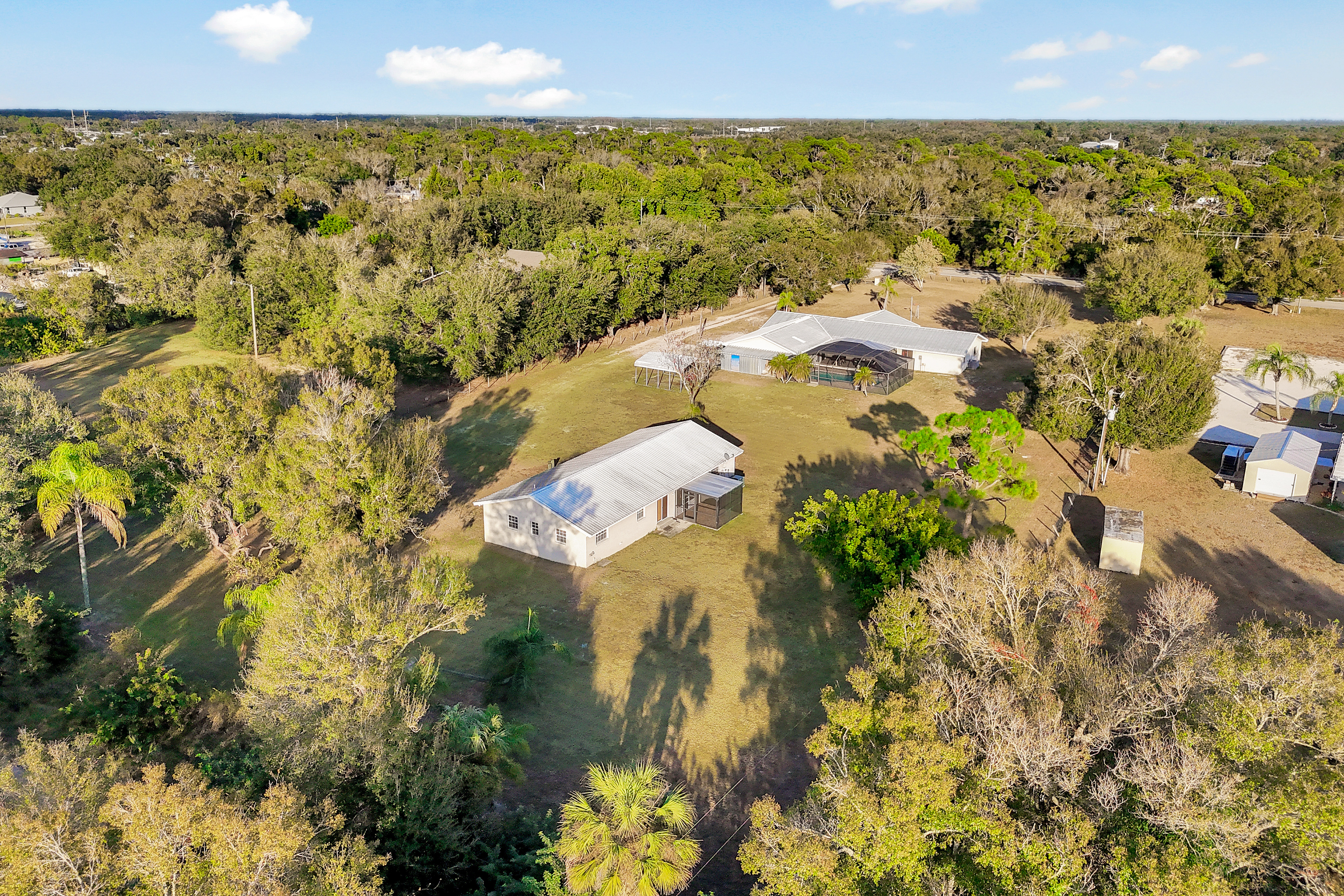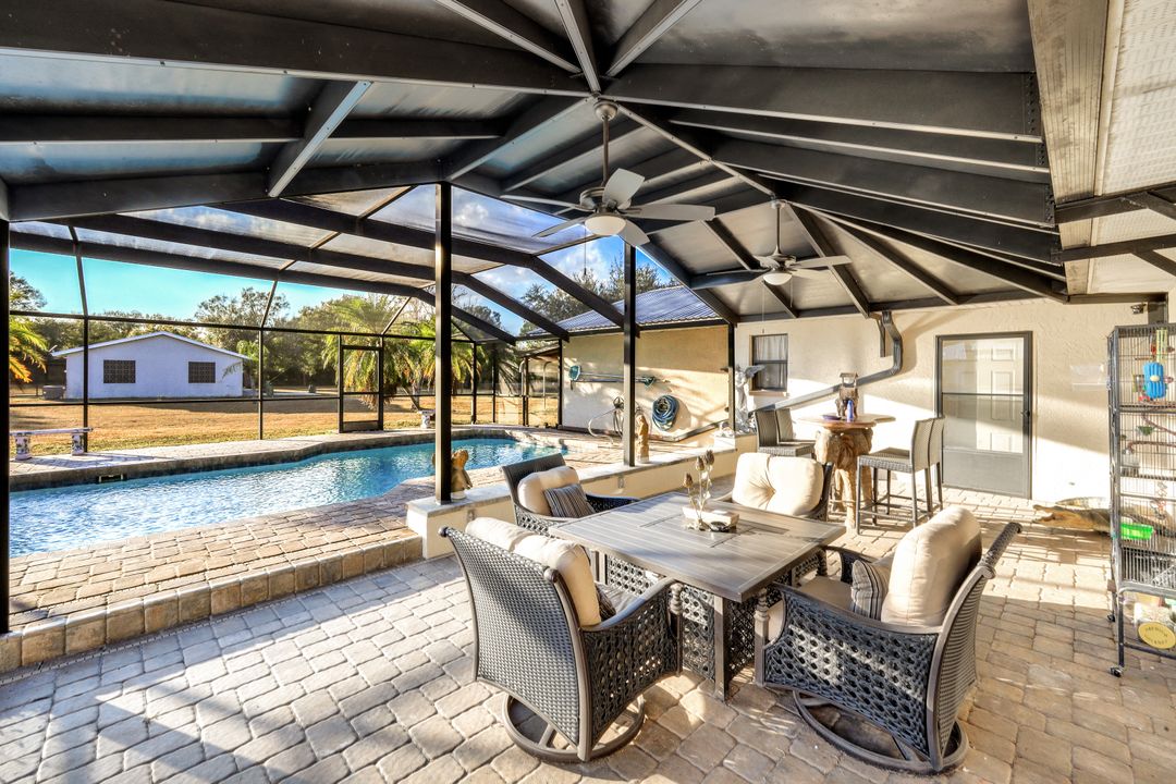 Looking for generational living? This is it! Endless possibilities await on this rare 2.5-acre AG-2 zoned property in North Fort Myers! Fully fenced with a gated entrance, this unique estate offers two separate homes—ideal for multi-generational living, rental income, a home-based business, or equestrian use. The main residence features 4 bedrooms, 3 bathrooms, a screened-in pool with a party-worthy deck and lanai, new appliances, and a 3-car garage with workshop area. The thoughtfully designed layout includes a private 4th bedroom and 3rdbath suite with its own separation—perfect as an in-law suite, teen retreat, guest quarters, or potential income opportunity. Located toward the rear of the property is a second home offering 2 bedrooms, 1 bathroom, a screened porch, and a 1½-car garage, providing excellent flexibility for extended family, visitors, or rental use. With AG-2 zoning, there is ample room for horses, gardens, workshops, or business equipment, all while enjoying the privacy and space of acreage living—yet still conveniently located near shopping, dining, and major roadways. Whether you’re looking for generational living, income potential, or space to live and work, this versatile property delivers a truly rare opportunity in North Fort Myers.