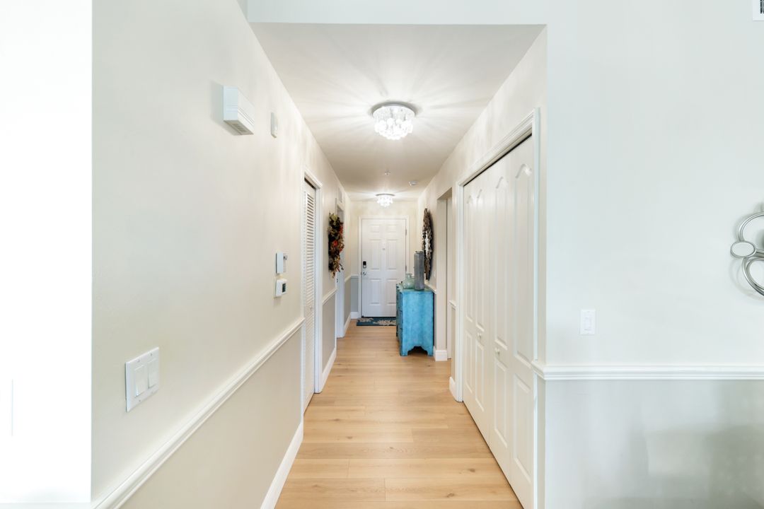 BEAUTIFULLY UPDATED and METICULOUSLY MAINTAINED Brookside unit in the tropically landscaped Heritage Pointe community in South Fort Myers. This 2nd FLOOR, 2 BEDROOM / 2 BATH condo features an OPEN FLOOR PLAN with FANTASTIC VIEWS of Heritage Pointe’s large lake with lighted water features. Offered TURNKEY with high-quality furnishings, décor, and assessories, this unit has been significantly updated with quality materials and lots of attention to detail. Updates include a kitchen redesign making it more open to the living & dining rooms, cabinetry to include drawers on the lowers, a large single level island-like quartz topped serving & eating area, an eye-catching backsplash, numerous stylish light fixtures, newer appliances, under cabinet lighting, and more. No carpet in this unit. It has gorgeous luxury vinyl plank flooring throughout the living areas, kitchen, breakfast nook, and bedrooms and tile flooring in the bathrooms. Taller baseboards, chair rail, and plantation shutters on all windows complement the classy, neutral color scheme. Both bathrooms feature elegant ceramic tiled showers with glass enclosures, new vanities with soft close drawers, double sinks in the primary ensuite, plus unique plumbing hardware & light fixtures. The guest bedroom offers great utility with a queen-size Murphy bed, extra storage, and a built-in desk. No need to worry about storm protection. All windows have recently been replaced with PGT impact glass windows and the west-facing lanai is equipped with electric StormSmart Kevlar storm screens that also serve as a sunscreen. Also included is a deeded extra storage unit located just steps from the front door & covered parking on the building side of the parking lot. High-definition fiber-optic based TV & Internet, water/sewer, and much more are included in the comparably low maintenance fee. Heritage Pointe is a financially sound, pet-friendly community located close to the beaches, near Wakahatchee Park & Recreation center with tennis & pickleball courts, Health Park Medical complex, several pharmacies & grocery stores, shopping, restaurants, and a variety of entertainment venues. Community amenities include a recently renovated clubhouse, resort-style heated pool & spa, fitness room, library, walking path, plus a new community gathering area featuring gas grills, bocce ball, cornhole, putting green. The community offers an extensive social calendar of activities & events. DON’T HESITATE – BOOK YOUR PRIVATE SHOWING TODAY.