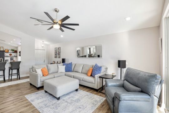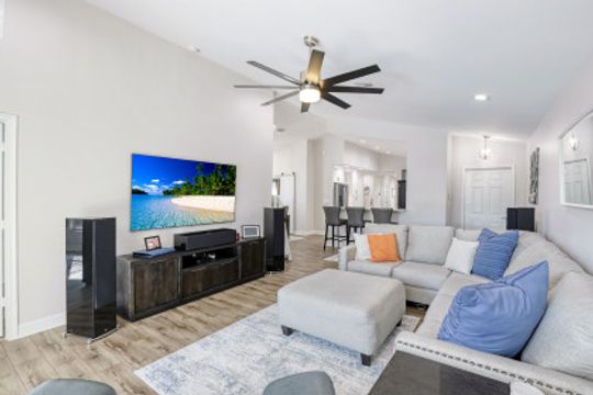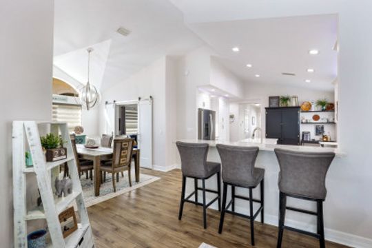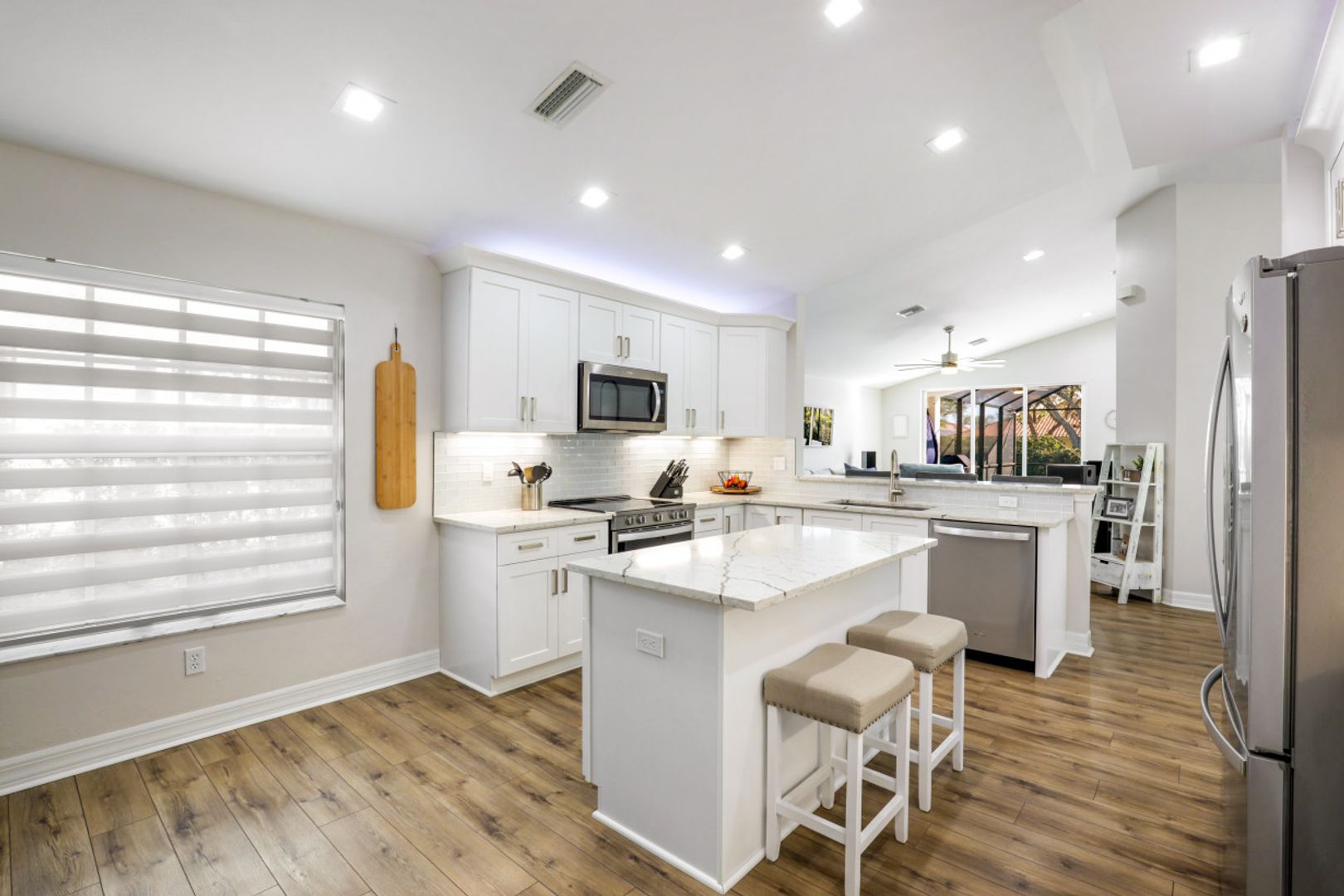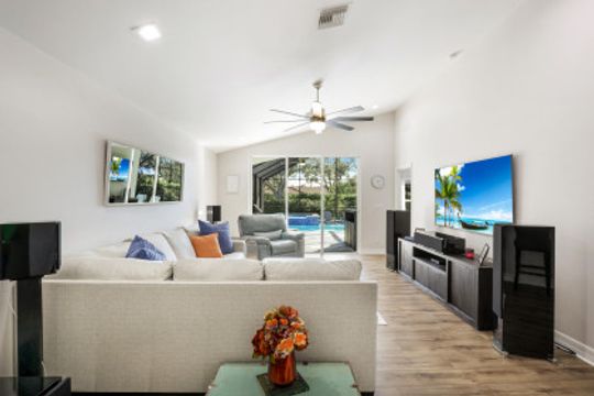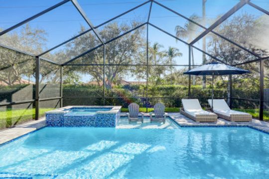This beautiful updated and upgraded "Cortina" offers an open and airy Great Room style floorplan with vaulted ceilings. Luxury laminate and upgraded tile floors will be found throughout this 2 Bedroom plus Den/2 full bath single family home. Enjoy the warm Naples weather around the newly built salt water, heated pool complete with raised spa and sunshelf. Other fine appointments completed within the last 3 years include: new expanded kitchen with center island, upgraded quartz counteracts, and SS appliances including french door refrigerator; new bathroom tile, cabinets, quartz countertops, and upgraded Moen fixtures; barn doors to the den; upgraded window treatments & light fixtures; LED recessed lights; new HVAC; fresh paint; and more! "Club at Saturnia Grande" offers resort pool, hot tub, lap pool, kiddie pool, saunas, fitness center, billiards room, ball room, 4 tennis courts, basketball court, and more! HOA fees include home landscaping, irrigation water & irrigation system maintenance, clubhouse amenities, two security gates, alarm monitoring, cable TV, high speed internet (fiber optics), and home phone line! A RATED SCHOOLS - Laurel Oak Elem, Oakridge Middle, Gulf Coast HS.