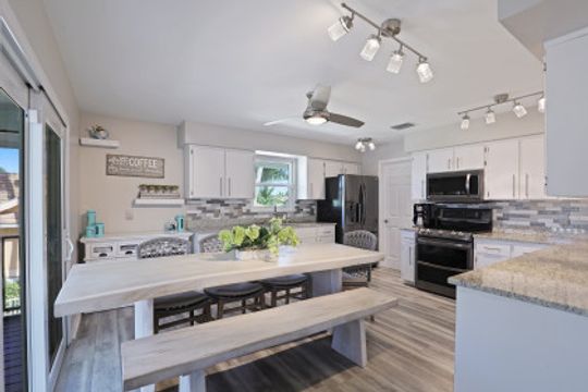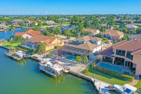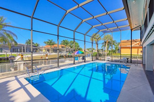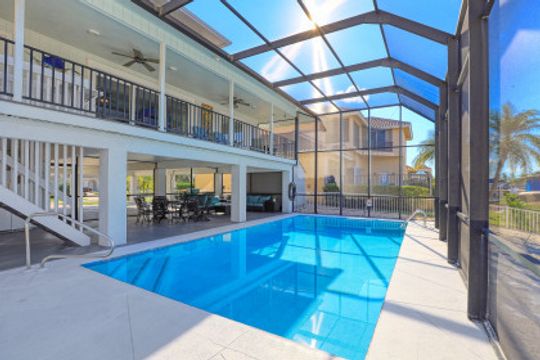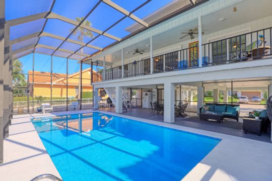 Paradise found at this enchanting 3 bedroom - 3-bathroom plus loft, Old Florida style house on the water, concrete stilts, with dock, 16,000lb lift, fish cleaning station, inviting seating area and quick access to open water. A boater’s/ fisherman’s dream. This spacious residence features new floors, updated bathrooms, kitchen with granite and backsplash, tons of storage, completely fenced in, and high impact windows for extra peace of mind. Enjoy the beautiful breeze, serene scenery, or simply relax and or/entertain in the many lovely outdoor areas and be captivated by the mesmerizing water views, swaying of the palm trees and the singing of the birds. The large, heated pool is complemented by a lovely manmade sandbar making it your own private tropical oasis. This residence is close to the YMCA and Mackle Park and minutes to shops, restaurants and to the world-famous Marco Island beach. A truly gem in Paradise.