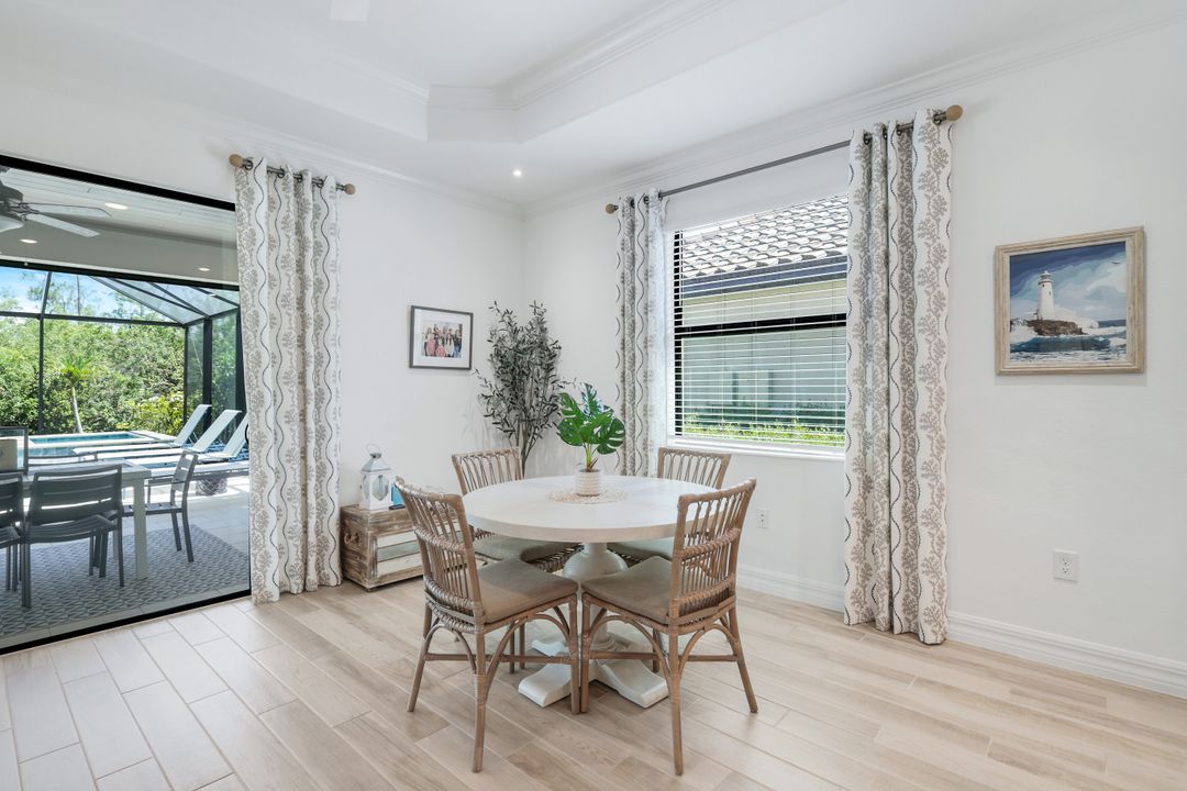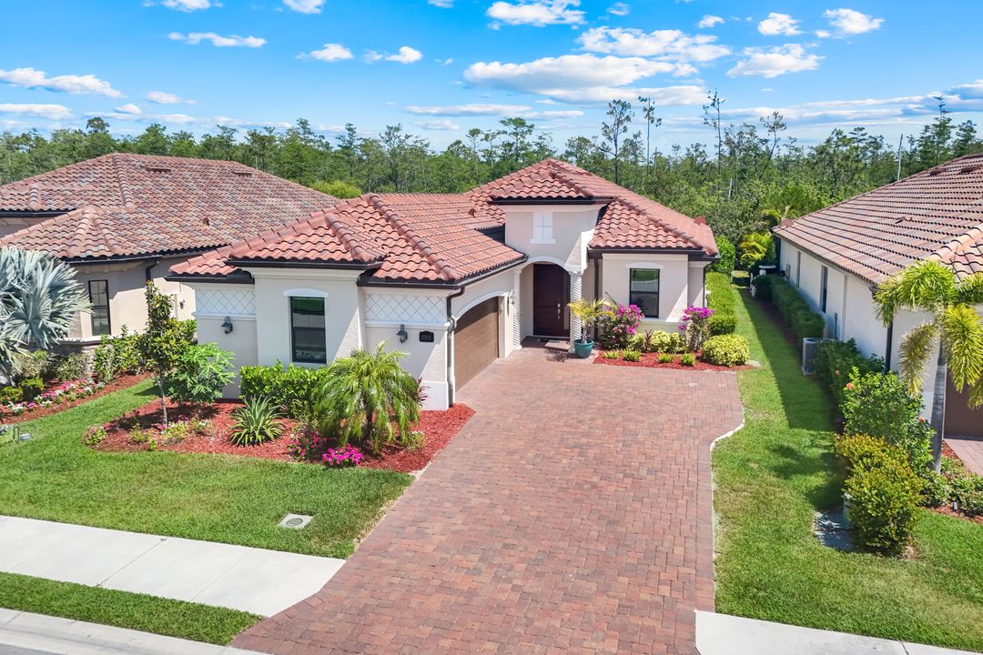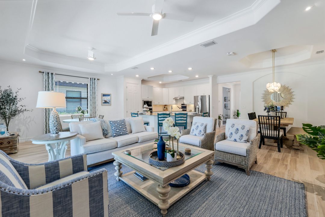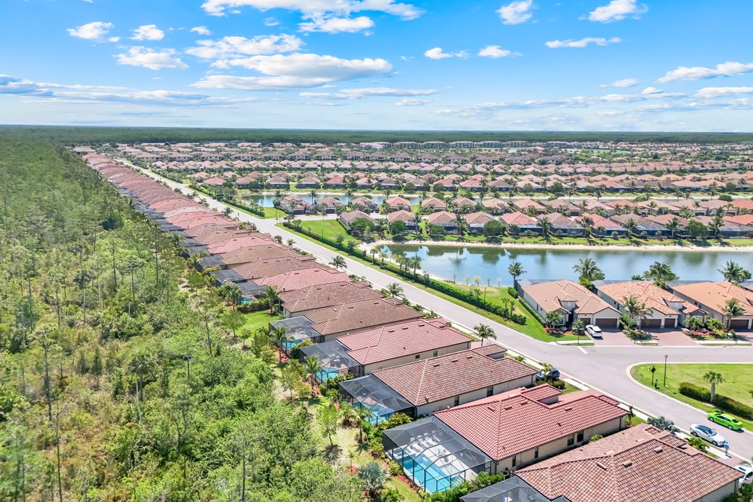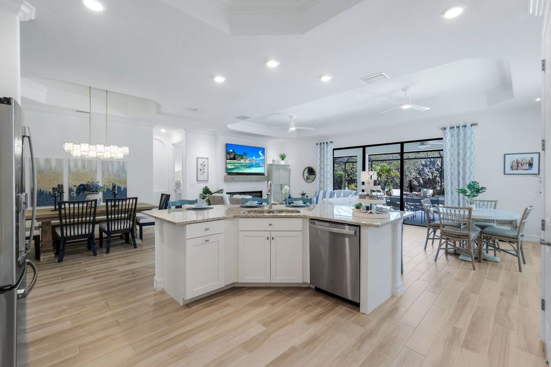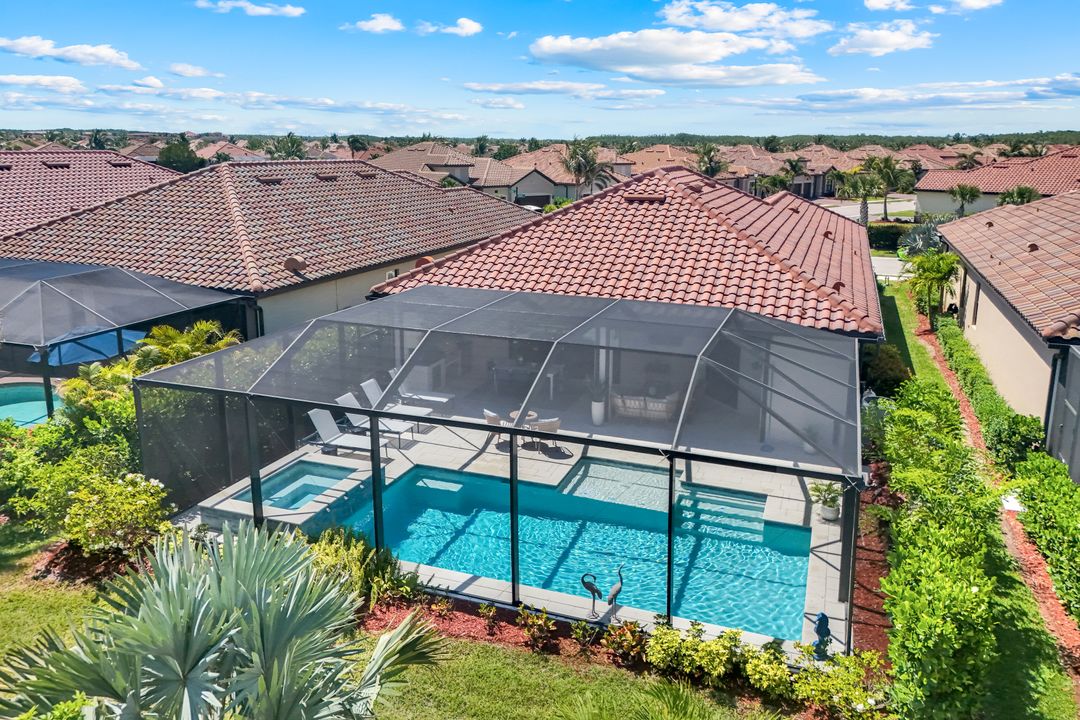 Discover the captivating, professionally decorated, and TURNKEY Victoria floor model. A stunning residence that combines elegance and functionality, situated on the serene northern edge of Bonita National. This prime location affords maximum privacy and breathtaking views of lush, wooded landscapes, creating an idyllic retreat. Inside, the home features a versatile flex space that can serve as a den, office, or guest room, providing flexibility to suit your lifestyle. The luxurious primary suite offers a tranquil haven with a spacious en-suite bathroom, while a second bedroom and an additional full bath ensure comfort for family and guests. A thoughtfully placed outdoor pool bath adds convenience to those long, sun-filled days spent by the pool. It also boasts a Storm Smart Hurricane screen for peace of mind all year round. At the heart of the home, the grand great room showcases sophisticated design elements, including a coffered ceiling that adds depth and dimension and a beautifully crafted fireplace wall that invites warmth and relaxation. The expansive island and breakfast bar create a perfect gathering spot for entertaining, whether you’re hosting a casual brunch with friends or a more formal dinner party. The seamless flow between indoor and outdoor living is effortless, thanks to sliding glass doors that lead to the extended lanai. This al fresco oasis features a stunning wood-ceilinged gathering area with an outdoor kitchen. Here, you can savor the beauty of nature while overlooking a breathtaking custom saltwater pool, complete with an integrated spa designed for ultimate relaxation and a beautiful travertine pool deck, all enclosed in a screened cage for protection against the elements. Strategically located just east of I-75, this home offers unparalleled convenience, with easy access to RSW Airport, the vibrant downtown Naples, idyllic sandy Gulf beaches, and the bustling River District in Fort Myers. Bonita National is a community rich in amenities, designed to enhance your lifestyle and provide memorable experiences for you and your guests. The impressive clubhouse beckons with various dining options, spacious game rooms, and versatile meeting spaces, along with a luxurious full-service spa that promises relaxation and rejuvenation. Fitness enthusiasts will appreciate the state-of-the-art fitness center with various exercise rooms to accommodate different workout preferences. Bocce and Pickleball will be coming to Bonita National shortly. The main pool invites you to unwind in a picturesque, lagoon-like setting with a captivating waterfall, charming poolside dining, delicious fare, and private cabanas for a touch of luxury. A dedicated lap pool is also available for those dedicated to their fitness goals, ensuring that your health and wellness journey is both enjoyable and fulfilling.