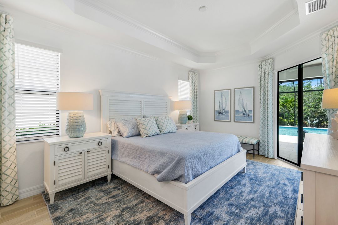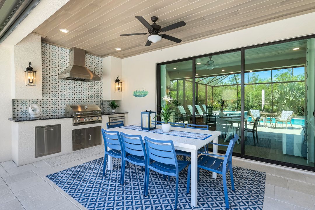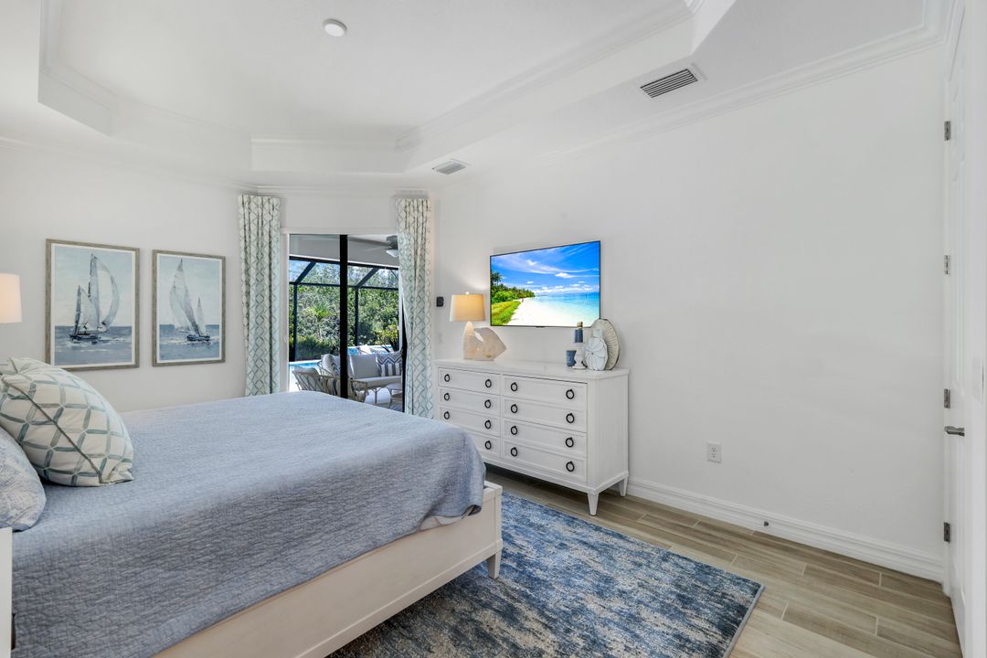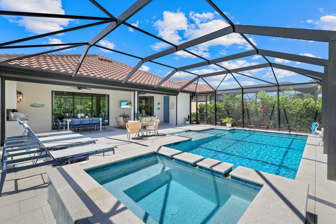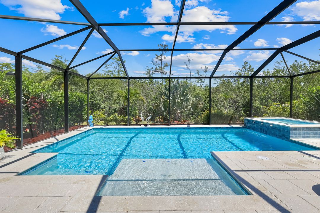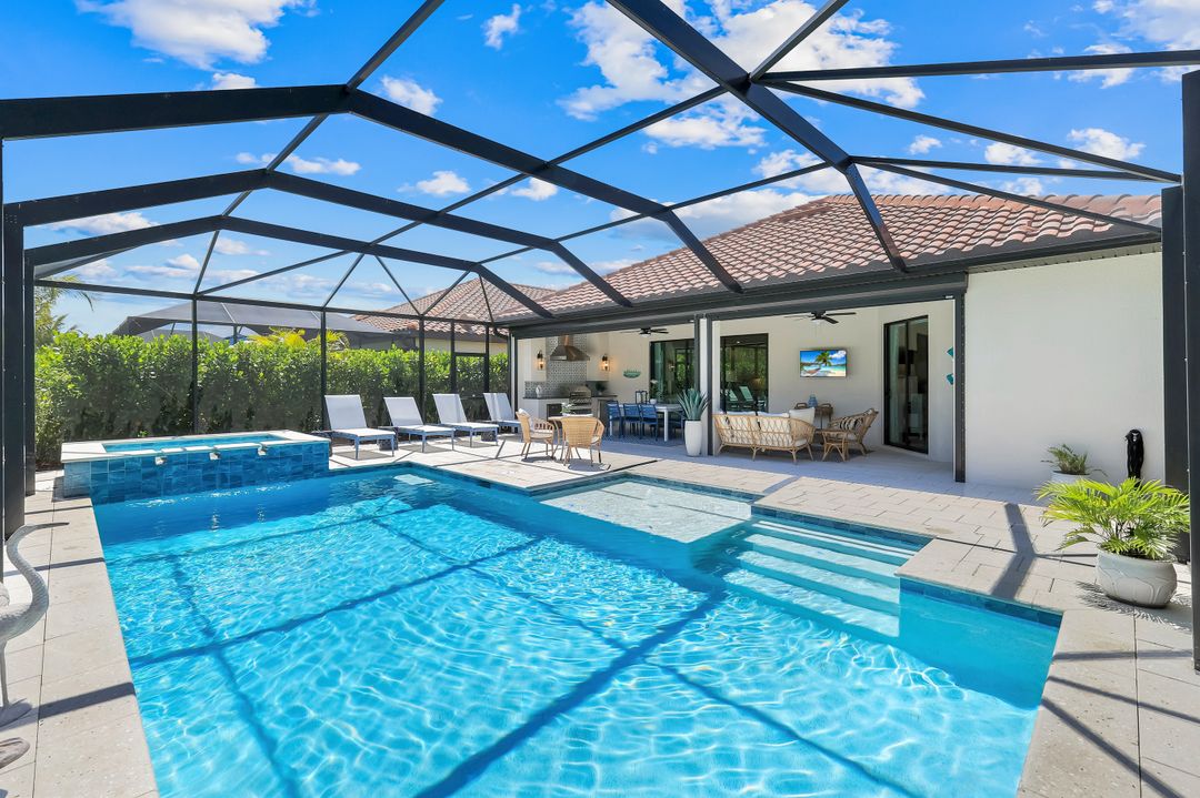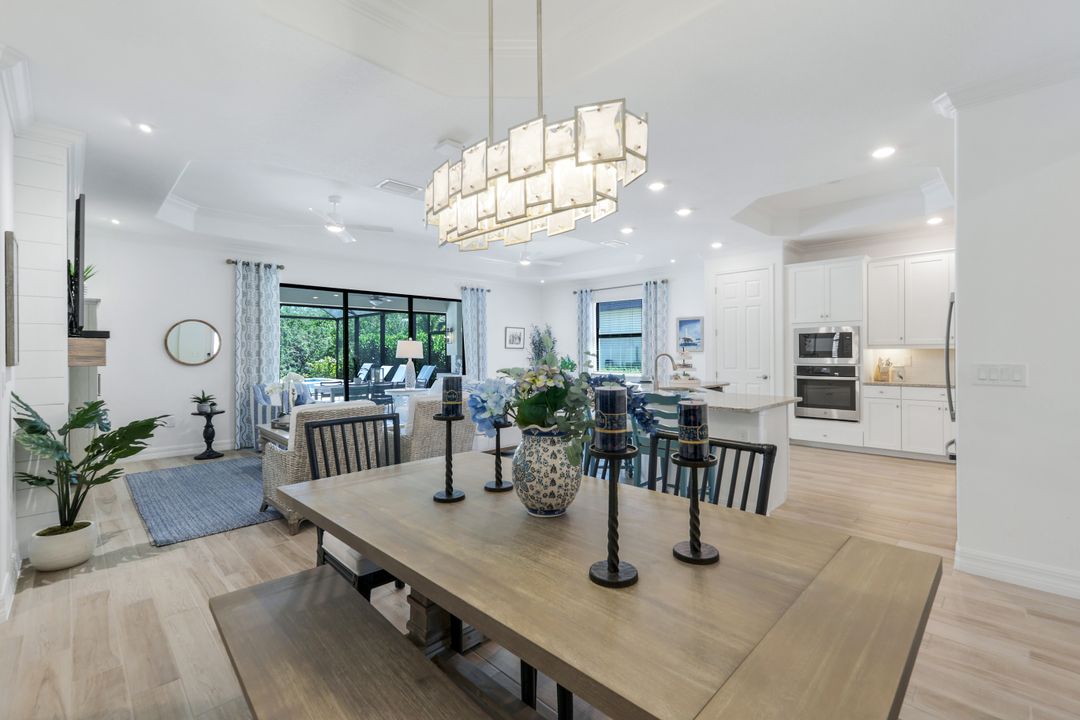 Discover the captivating, professionally decorated, and TURNKEY Victoria floor model. A stunning residence that combines elegance and functionality, situated on the serene northern edge of Bonita National. This prime location affords maximum privacy and breathtaking views of lush, wooded landscapes, creating an idyllic retreat. Inside, the home features a versatile flex space that can serve as a den, office, or guest room, providing flexibility to suit your lifestyle. The luxurious primary suite offers a tranquil haven with a spacious en-suite bathroom, while a second bedroom and an additional full bath ensure comfort for family and guests. A thoughtfully placed outdoor pool bath adds convenience to those long, sun-filled days spent by the pool. It also boasts a Storm Smart Hurricane screen for peace of mind all year round. At the heart of the home, the grand great room showcases sophisticated design elements, including a coffered ceiling that adds depth and dimension and a beautifully crafted fireplace wall that invites warmth and relaxation. The expansive island and breakfast bar create a perfect gathering spot for entertaining, whether you’re hosting a casual brunch with friends or a more formal dinner party. The seamless flow between indoor and outdoor living is effortless, thanks to sliding glass doors that lead to the extended lanai. This al fresco oasis features a stunning wood-ceilinged gathering area with an outdoor kitchen. Here, you can savor the beauty of nature while overlooking a breathtaking custom saltwater pool, complete with an integrated spa designed for ultimate relaxation and a beautiful travertine pool deck, all enclosed in a screened cage for protection against the elements. Strategically located just east of I-75, this home offers unparalleled convenience, with easy access to RSW Airport, the vibrant downtown Naples, idyllic sandy Gulf beaches, and the bustling River District in Fort Myers. Bonita National is a community rich in amenities, designed to enhance your lifestyle and provide memorable experiences for you and your guests. The impressive clubhouse beckons with various dining options, spacious game rooms, and versatile meeting spaces, along with a luxurious full-service spa that promises relaxation and rejuvenation. Fitness enthusiasts will appreciate the state-of-the-art fitness center with various exercise rooms to accommodate different workout preferences. Bocce and Pickleball will be coming to Bonita National shortly. The main pool invites you to unwind in a picturesque, lagoon-like setting with a captivating waterfall, charming poolside dining, delicious fare, and private cabanas for a touch of luxury. A dedicated lap pool is also available for those dedicated to their fitness goals, ensuring that your health and wellness journey is both enjoyable and fulfilling.