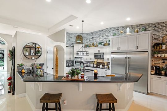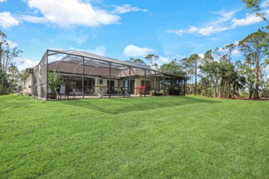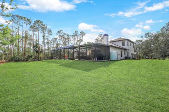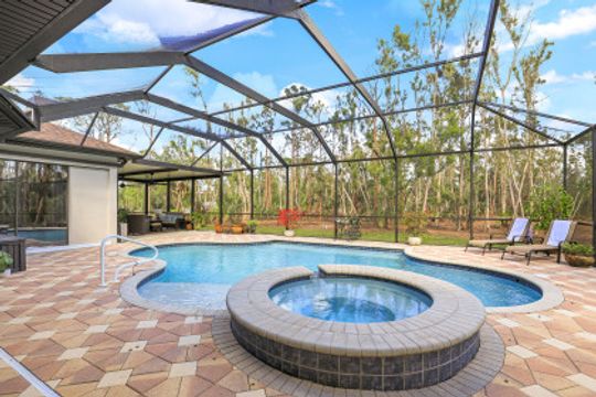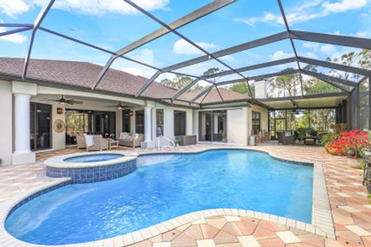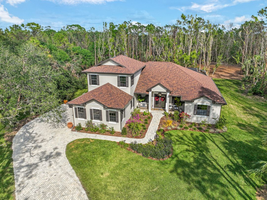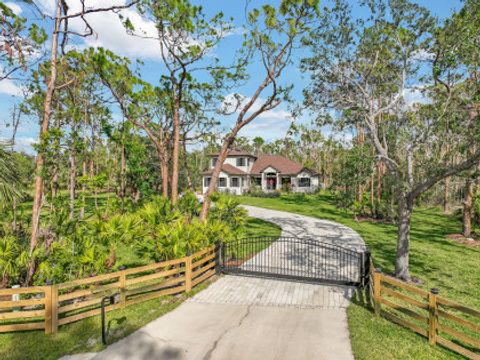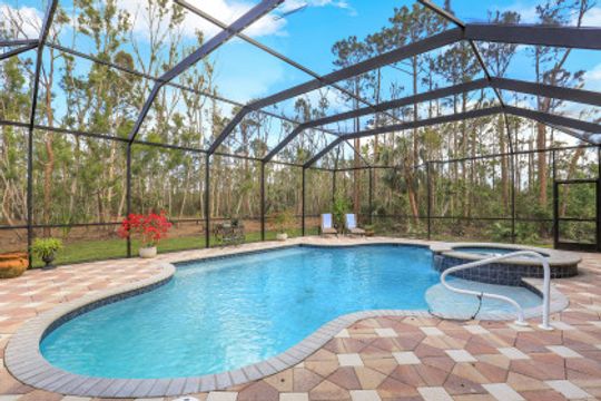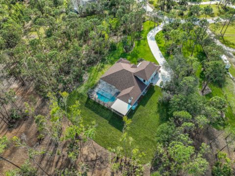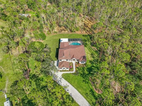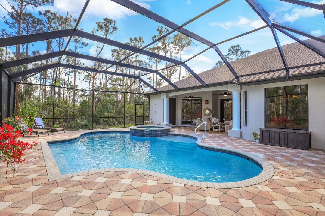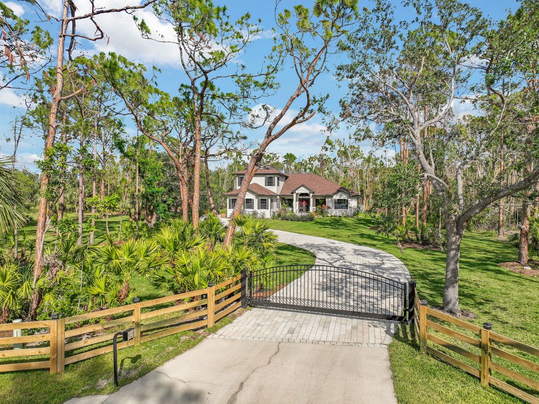 Rare find on acreage! Spacious four bedroom home with pool set among the peaceful pines of northern Cape Coral. Situated on a 2.75 acres site in Las Lomas, this home has been recently updated in a traditional motif with country accents in 2022. The large wooded lot is prudently thinned, creating a park-like feel and is large enough to accommodate future out-buildings should an owner choose.