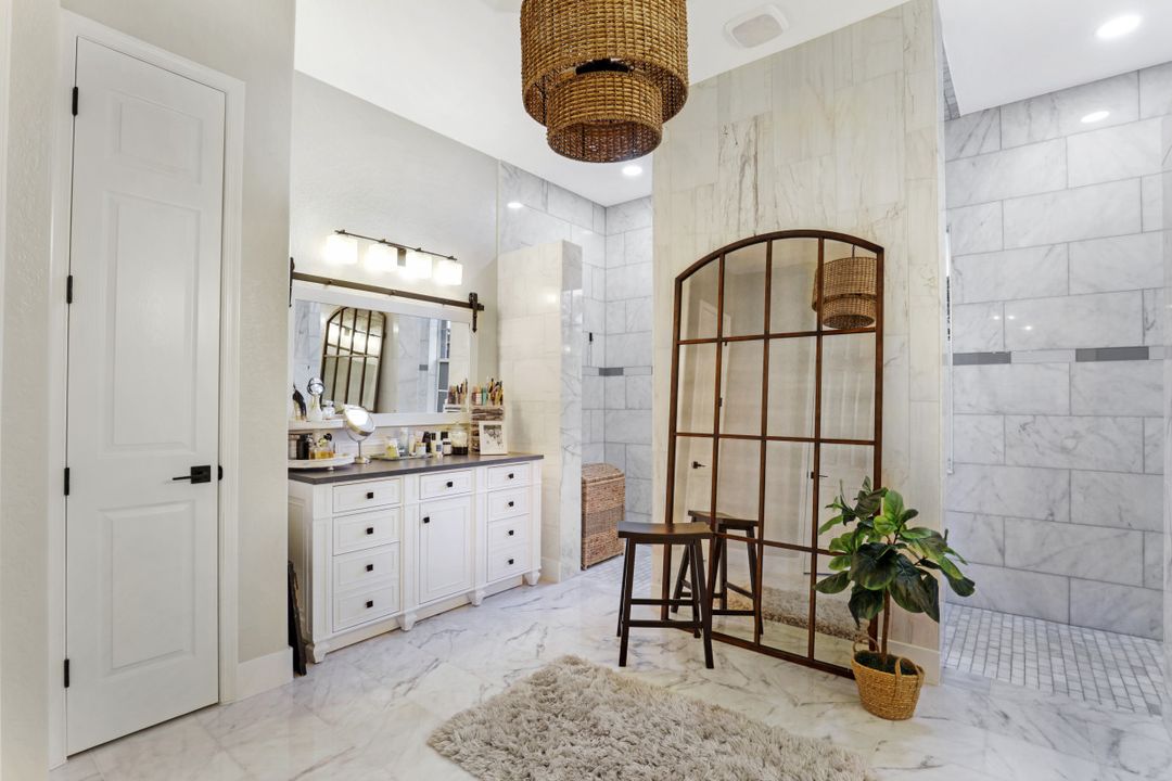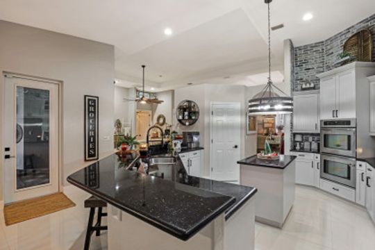 The living space is 3717 sq ft with four bedrooms and den. Three bedrooms are on the first floor - including the master suite, which has separate vanities, walk-thru shower and new cabinetry. The ample kitchen is new and acts as a wonderful hub in a floor plan designed to create a lively atmosphere.