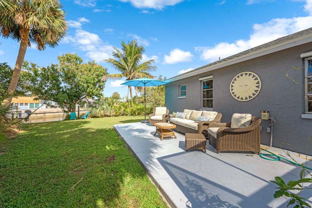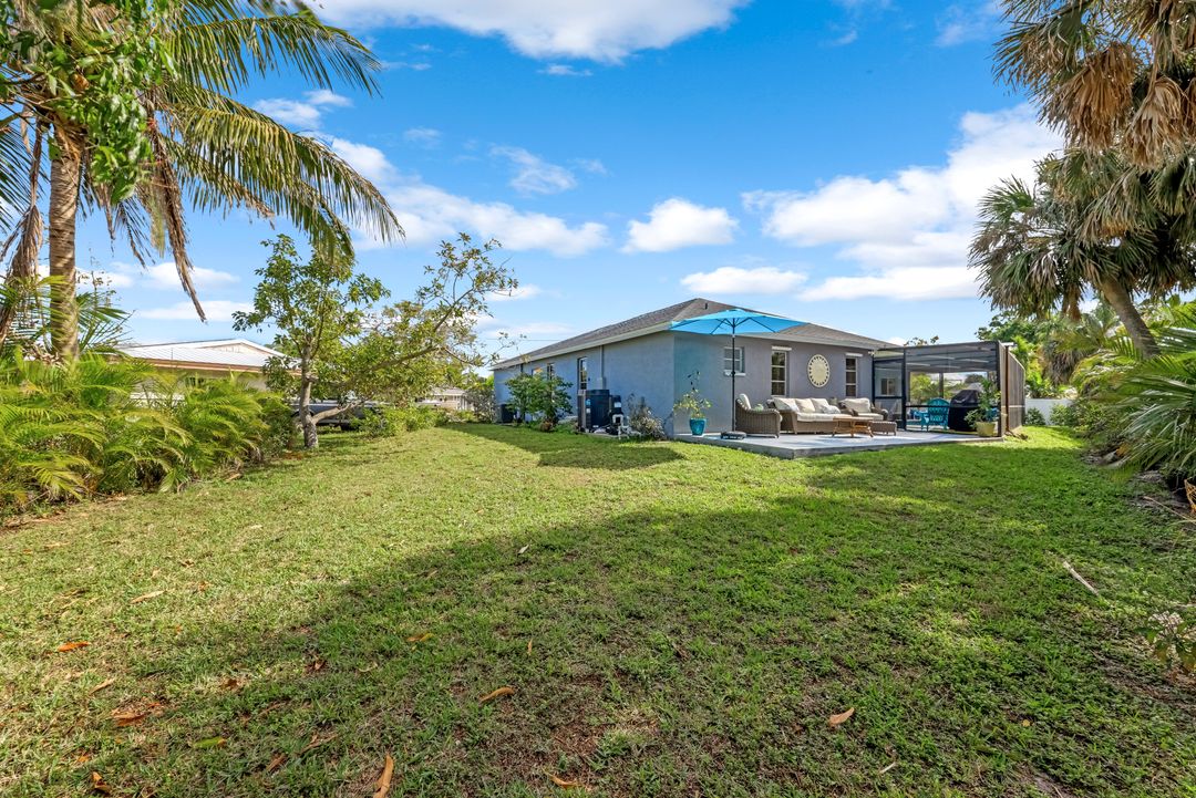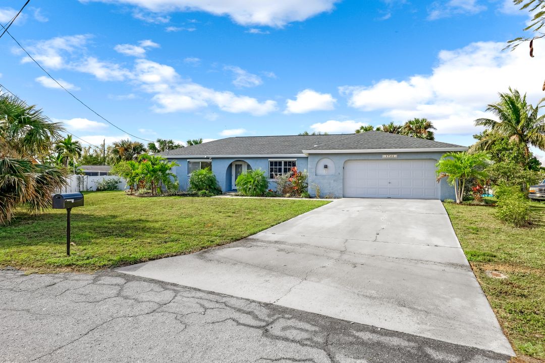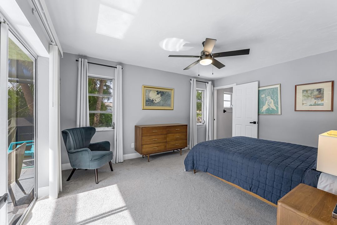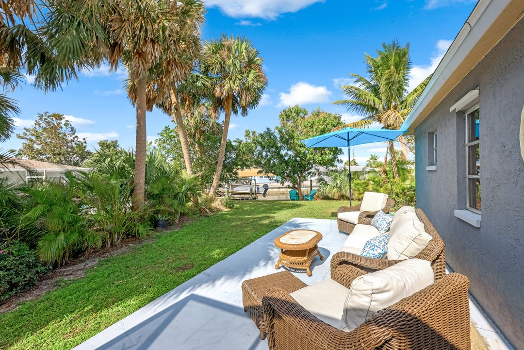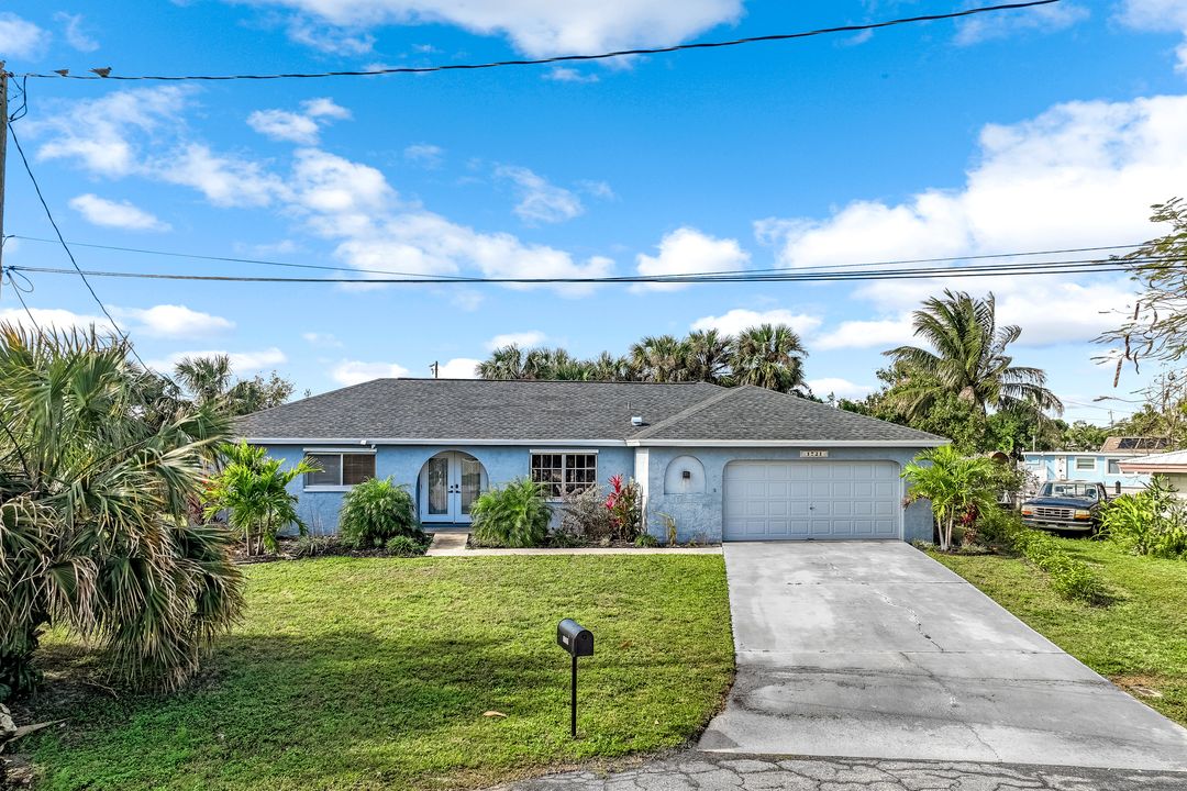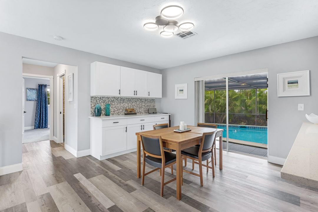 Sailboat Access Pool Home just minutes from open water! High and dry! No flooding here! This stunning 4-bedroom, 2-bathroom pool home in Waterway Estates is located on a quiet and private cul-de-sac with direct sailboat access to the Gulf in just minutes. Inside, the home features newer flooring, modern tilework, tall baseboards and casings, fresh paint, updated doors and hardware, and upgraded lighting and ceiling fans throughout. The beautifully reimagined kitchen is a chef’s dream, featuring brand-new stainless steel appliances, a sleek hood vent, quartz countertops, custom cabinetry, and a striking tiled backsplash. A dry bar in the dining area adds both charm and function, while the spacious primary suite includes a walk-in closet. The bathrooms showcase elegant tiled feature walls for a spa-like feel. The home’s wood beam ceiling adds warmth and character, and large sliding glass doors open to the screened-in pool and patio, maximizing indoor-outdoor living. With southern exposure, enjoy all-day sun on the pool deck and stunning sunsets in the evenings. The oversized pie-shaped lot provides ample space for RV or boat parking and storage, plus a lush backyard with mature fruit trees including lemon tree, avocado tree and mango tree. This home has been recently renovated with a new roof (2022), new energy efficient pool heather, PEX re-pipe, water heater, plumbing fixtures, AC system, pool equipment, epoxied garage floor, resurfaced pool deck and patio, and a fully re-screened pool cage. Conveniently located near shopping, dining, entertainment, schools, medical offices, and downtown Fort Myers, this home is a rare find with easy access by boat or car. This better-than-new home is move-in ready and waiting for you—schedule your private showing today.