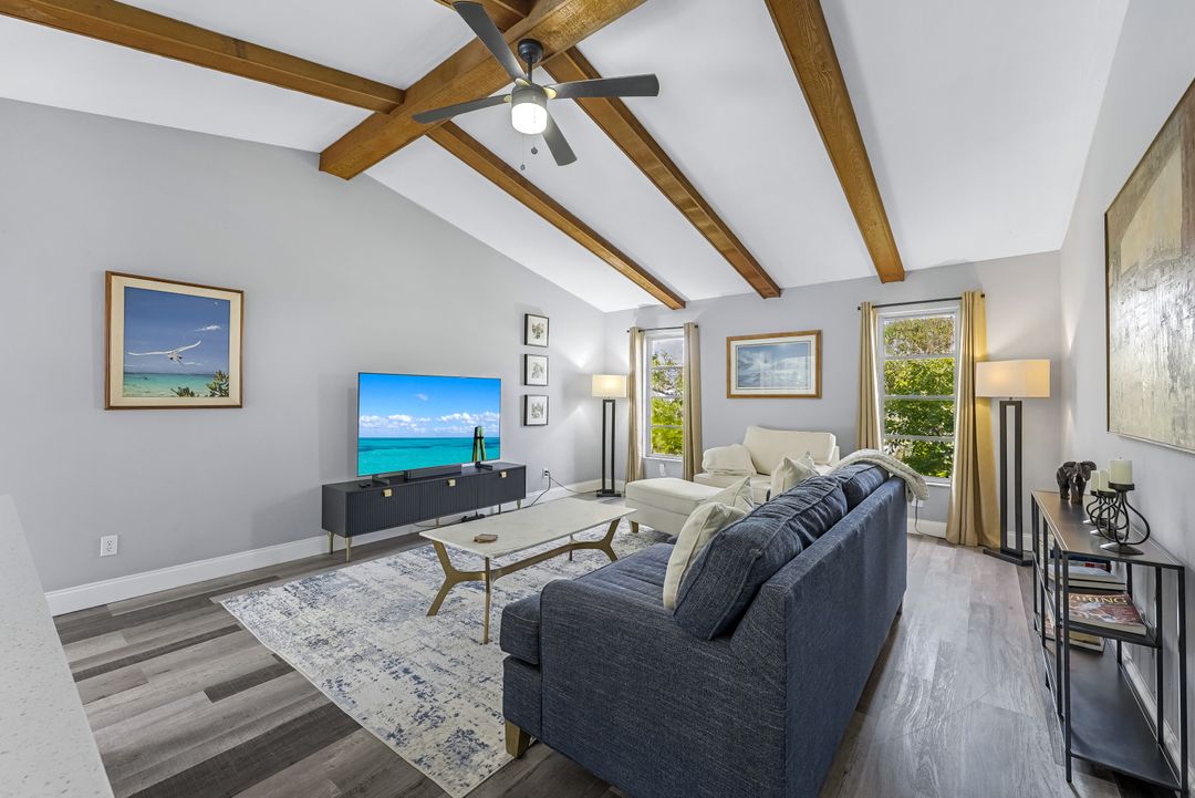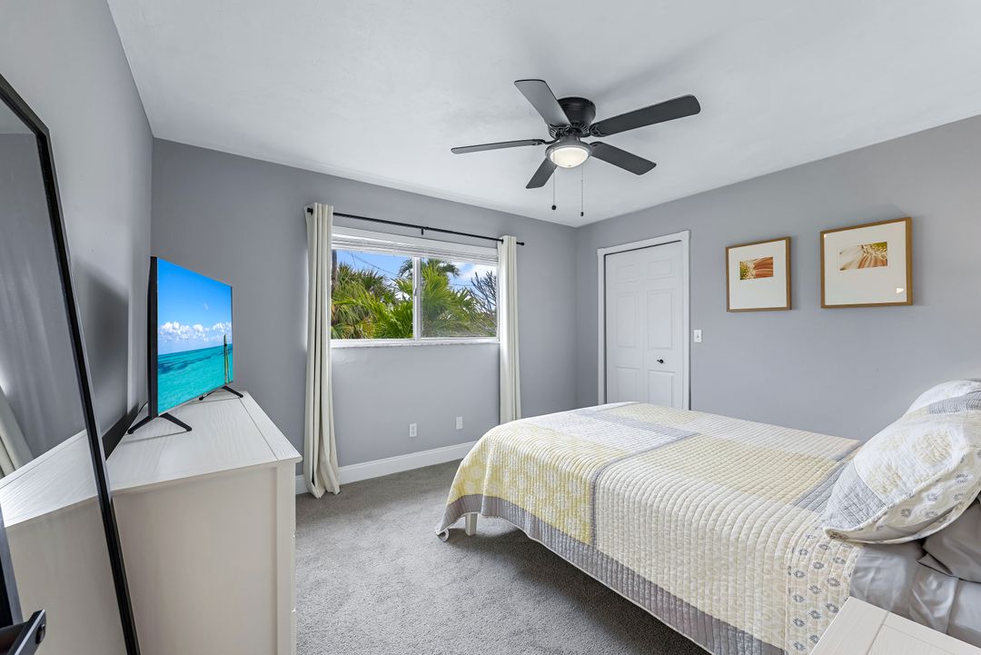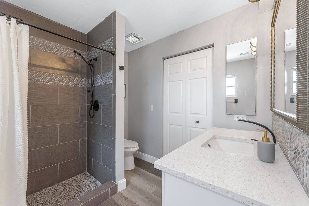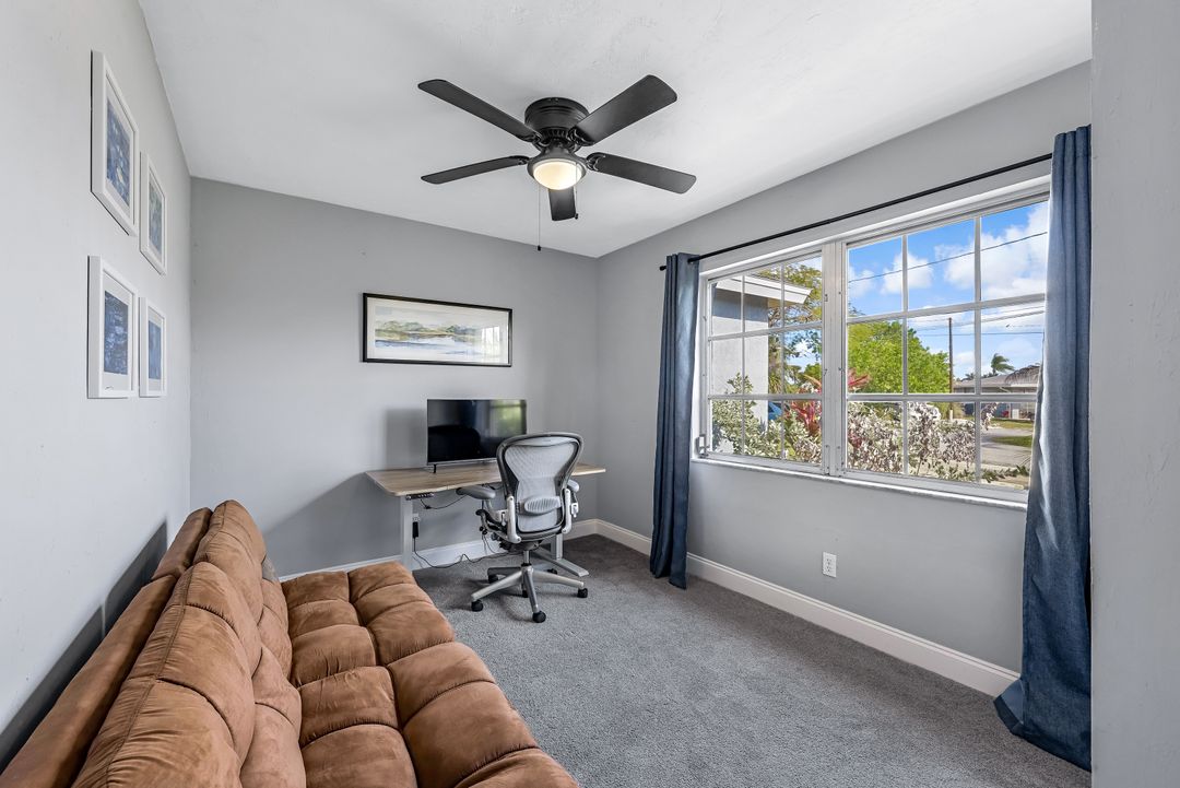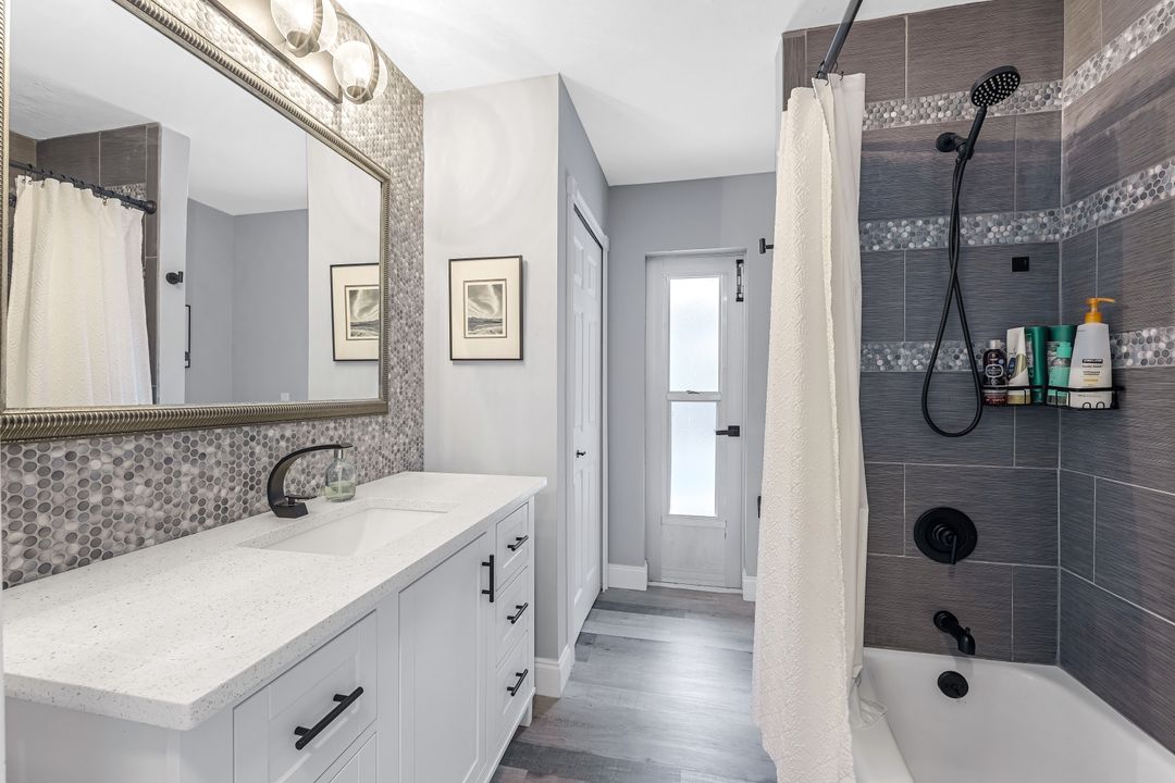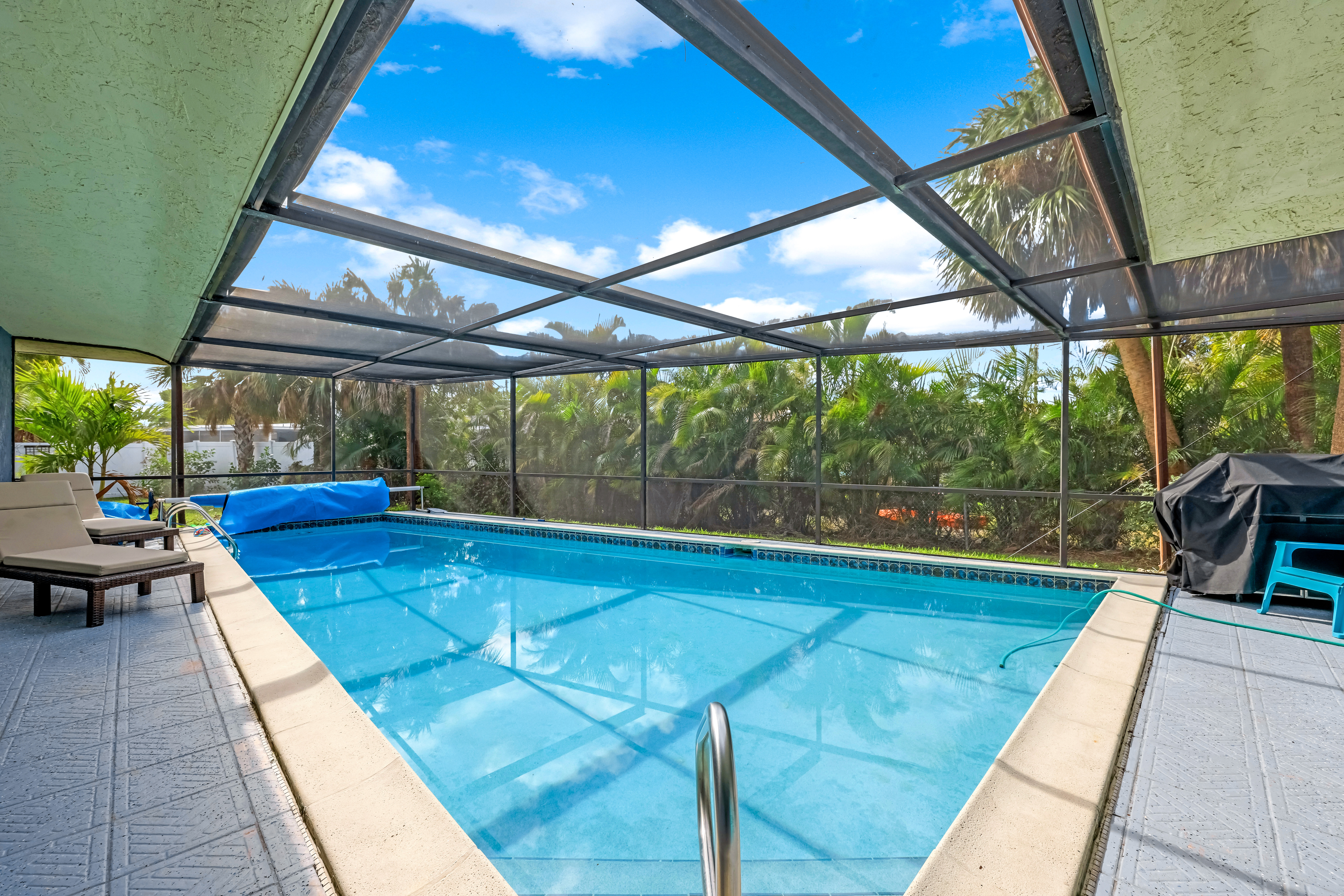 Sailboat Access Pool Home just minutes from open water! High and dry! No flooding here! This stunning 4-bedroom, 2-bathroom pool home in Waterway Estates is located on a quiet and private cul-de-sac with direct sailboat access to the Gulf in just minutes. Inside, the home features newer flooring, modern tilework, tall baseboards and casings, fresh paint, updated doors and hardware, and upgraded lighting and ceiling fans throughout. The beautifully reimagined kitchen is a chef’s dream, featuring brand-new stainless steel appliances, a sleek hood vent, quartz countertops, custom cabinetry, and a striking tiled backsplash. A dry bar in the dining area adds both charm and function, while the spacious primary suite includes a walk-in closet. The bathrooms showcase elegant tiled feature walls for a spa-like feel. The home’s wood beam ceiling adds warmth and character, and large sliding glass doors open to the screened-in pool and patio, maximizing indoor-outdoor living. With southern exposure, enjoy all-day sun on the pool deck and stunning sunsets in the evenings. The oversized pie-shaped lot provides ample space for RV or boat parking and storage, plus a lush backyard with mature fruit trees including lemon tree, avocado tree and mango tree. This home has been recently renovated with a new roof (2022), new energy efficient pool heather, PEX re-pipe, water heater, plumbing fixtures, AC system, pool equipment, epoxied garage floor, resurfaced pool deck and patio, and a fully re-screened pool cage. Conveniently located near shopping, dining, entertainment, schools, medical offices, and downtown Fort Myers, this home is a rare find with easy access by boat or car. This better-than-new home is move-in ready and waiting for you—schedule your private showing today.