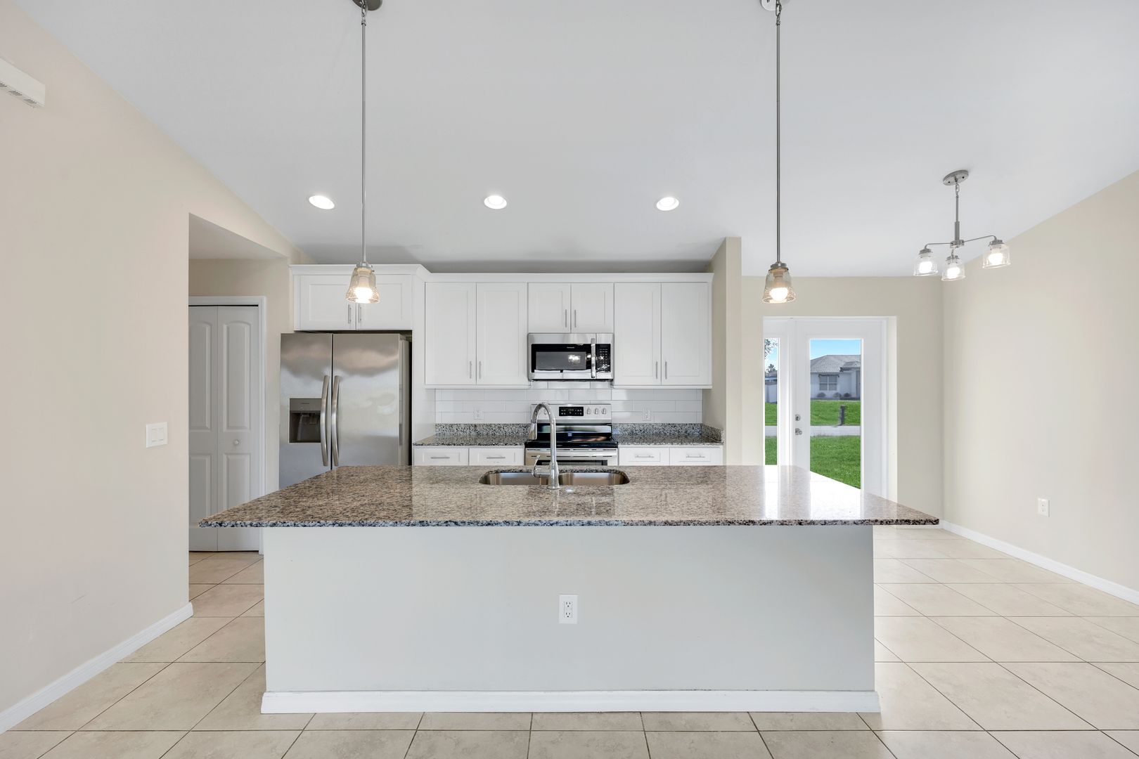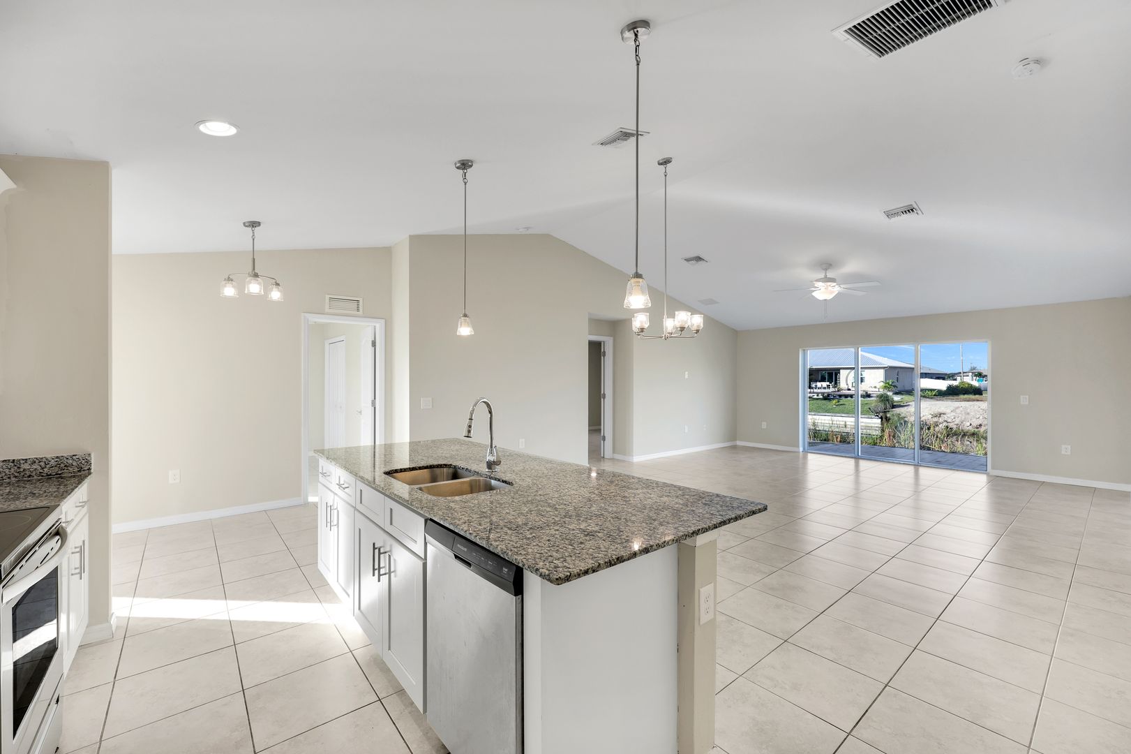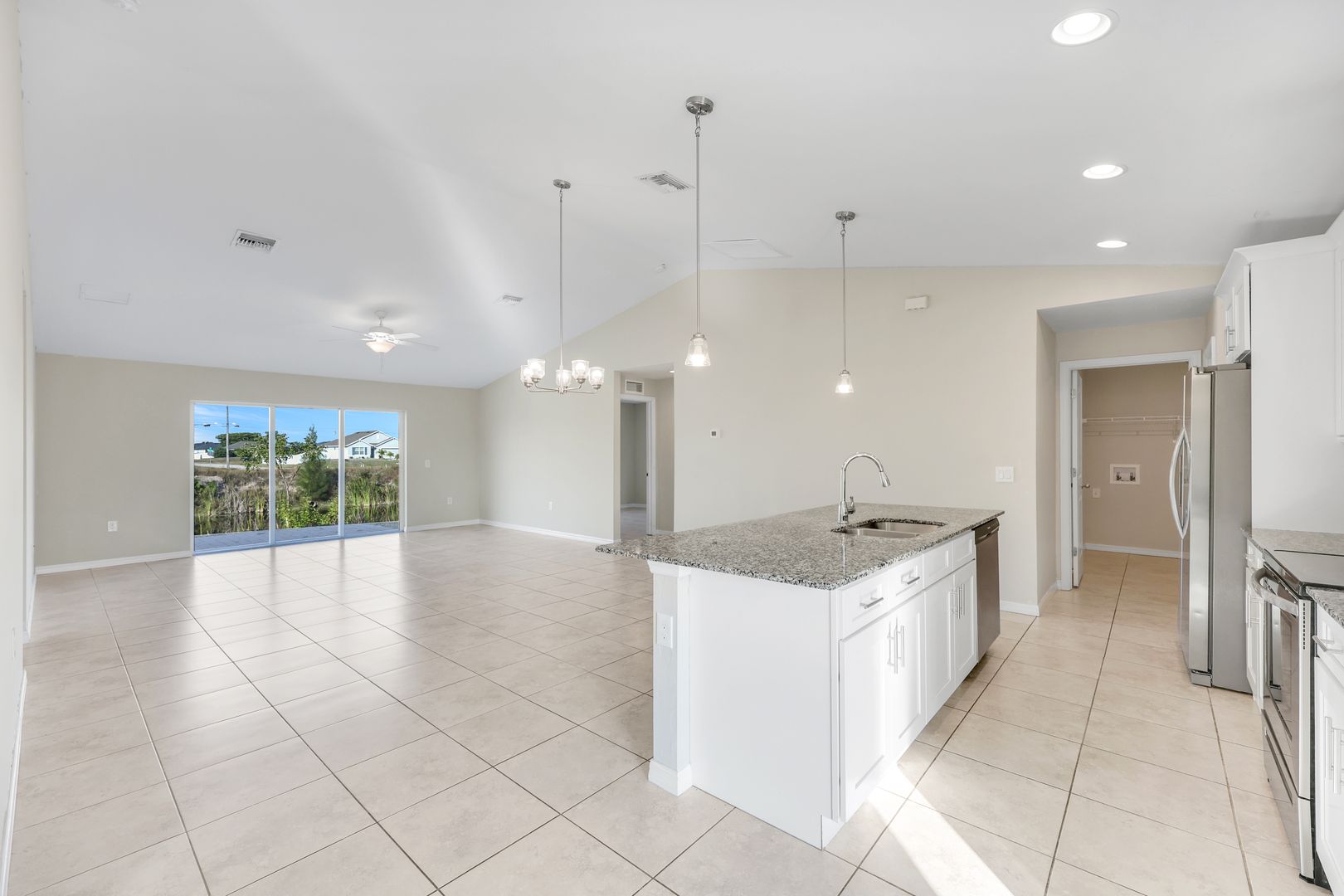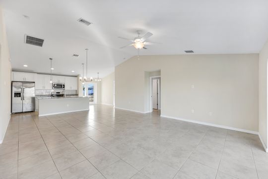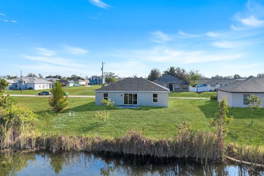 Discover modern Florida living in this 4-bedroom, 2-bathroom home located on a tranquil freshwater canal. Built in 2022, this residence offers contemporary style, durability, and comfort—located out of a flood zone for added peace of mind. Step inside to an inviting open floor plan with 1,565 square feet of living space, highlighted by tile flooring throughout and clean, modern finishes. The spacious kitchen seamlessly connects to the living and dining areas, creating the perfect setting for everyday living or entertaining. Enjoy year-round sunshine with a west-facing rear exposure, ideal for taking in glowing sunsets over the canal. The home also features a convenient laundry room inside the residence, a two-car garage, and attractive paver driveway and walkway for added curb appeal. This property offers modern comfort in one of Cape Coral’s fastest-growing areas—perfect for full-time living, a vacation home, or an investment opportunity. Don’t miss your chance to own this move-in ready waterfront home for a great value—schedule your private showing today!