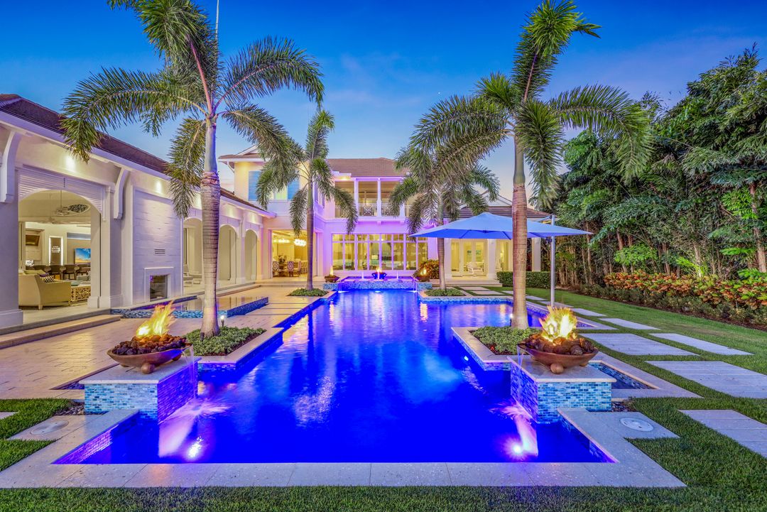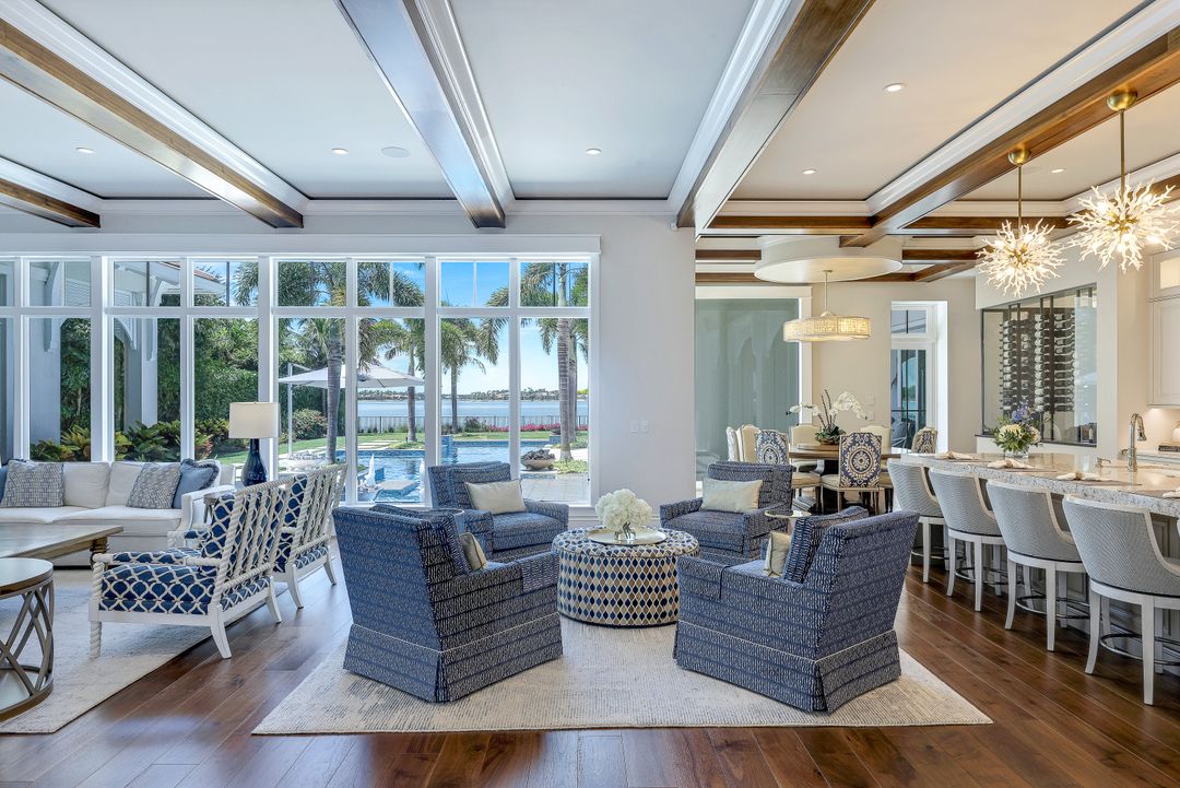 Located on a prime beachfront lot in Miromar Lakes, this exquisite estate home was designed for those who enjoy food, wine, entertaining, and spending time with family. Designed with sophistication and comfort in a blend of Key West and Coastal styles, the home features an open-concept floor plan with great room, gourmet kitchen, butler’s pantry, den/office and an additional second floor living area. The 800 bottle walk-in wine cellar leads to a remarkable 1,100 sq ft multi-function game room. Perfect for enjoying sports and movies, this ultimate entertaining space with multiple TVs, distributed video system, a stunning bar, a billiard table, a game table and home theater. The game room opens seamlessly onto an oversized lanai and large resort-style pool, and spa. The lanai features a complete outdoor kitchen including an Evo grill and imported Italian wood-burning pizza oven. The luxurious master suite is a private sanctuary featuring a spa-like bathroom, an outdoor shower with a marble waterfall, 2 spacious walk-in closets and an outdoor seating area. The home also boasts 3 additional oversized bedrooms each meticulously designed with their own en-suite bathrooms.