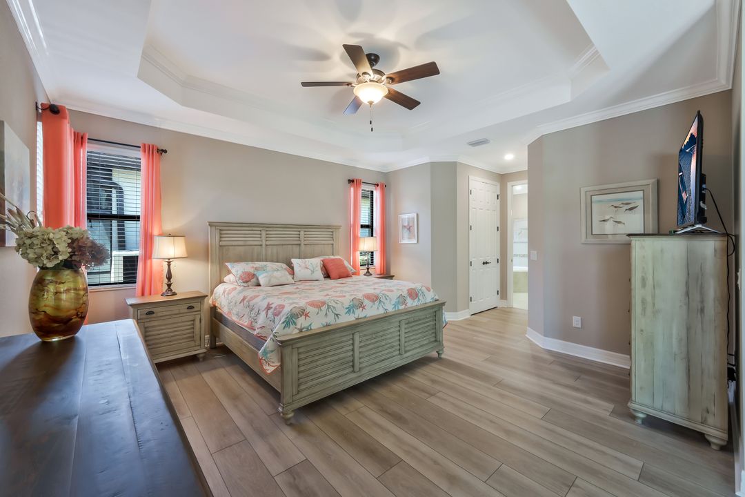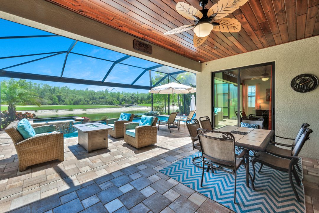 Gorgeous Southern exposure from the amazing lanai featuring gracious seating area under wood ceiling and overlooking the beautiful custom pool and spa to the lake and golf course. You will enjoy the summer kitchen for entertaining and with storm screens perfect to keep out the inclement weather when needed. This beautiful Isabella floor plan home offers solid surface flooring throughout, and the great room design is fabulous for gathering with friends and family. The 4-bedroom design is simply ideal. Attached 2 car garage and lovely landscaping help complete this lovely home. All the amenities offered at Bonita National are yours to enjoy, from the gorgeous clubhouse with dining, meeting and game rooms to the lagoon style pool complete with waterfall and lap lanes, cabanas, poolside bar/grill and the Utopia spa to relax and unwind after a vigorous work out in the state of the art fitness center, 18 robust holes of golf on the championship course, tennis and coming soon Pickleball and Bocce! Perfectly located, a straight shot on Bonita Beach Rd to the sandy Gulf beaches or hop on I-75 for easy access to RSW, downtown Naples or Fort Myers fun River District. There are so many restaurants, shopping destinations, art options, trails and nature to round out your SWFL lifestyle!