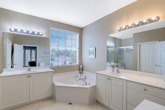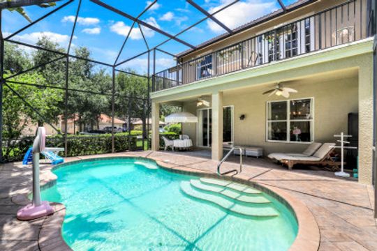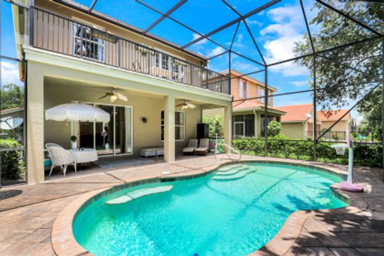 PRIME NORTH NAPLES LOCATION! This spacious and well maintained "Monaco" is situated on a spacious corner lot with room for the kids to play behind and on the side of the home (lot can be fenced!) within the amenity rich community of Saturnia Lakes. Featuring 4 Bedrooms, 2.5 Baths, and 2,452 sq ft under air - there is room for the whole family! Enjoy the warm Florida weather around the heated pool (SOUTHERN EXPOSURE) or under the extended covered lanai area. A long list of special features include: NEW ROOF (ask for details/buyer to pick tile & colors); KitchenAid appliances; new single basin kitchen sink; brand new hot water heater/tank; private veranda/deck off the master suite; diagonal tile throughout the first floor and wood floors throughout the second floor; and more! "Club at Saturnia Grande" offers resort pool, hot tub, lap pool, kiddie pool, saunas, fitness center, billiards room, ball room, 4 tennis courts, basketball court, and more! HOA fees include landscaping, irrigation water & system maintenance, clubhouse amenities, alarm monitoring, cable TV, internet (fiber optics), and phone for just $520/month! A RATED SCHOOLS - Laurel Oak Elem, Oakridge Middle, Gulf Coast HS.