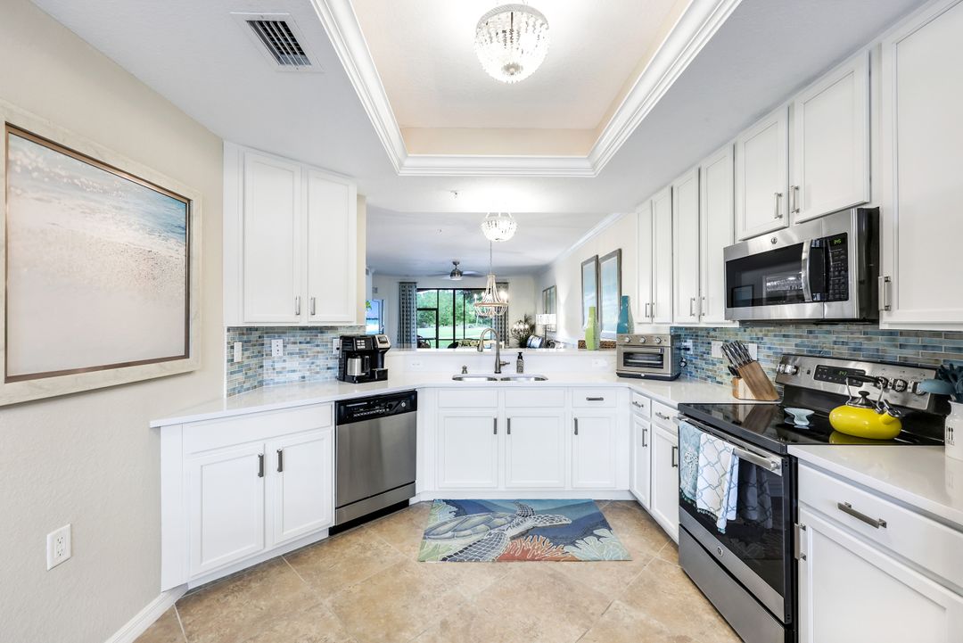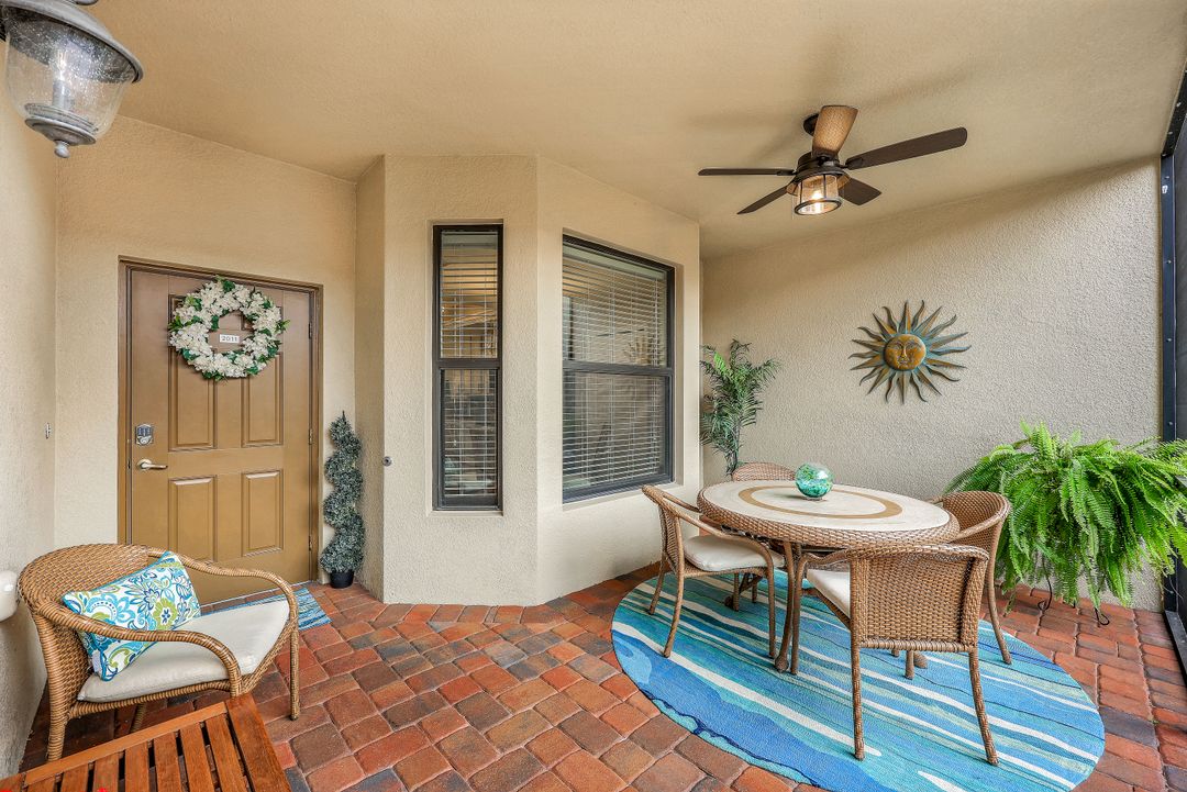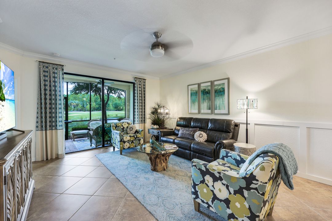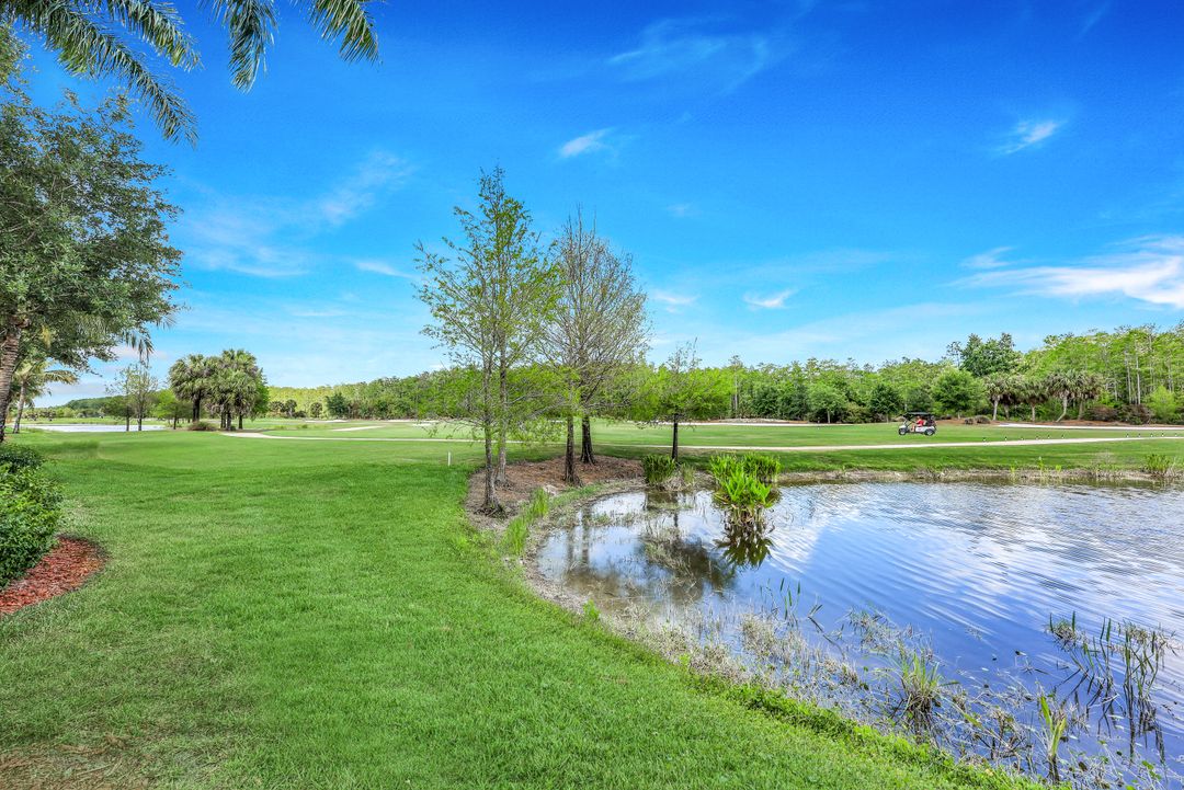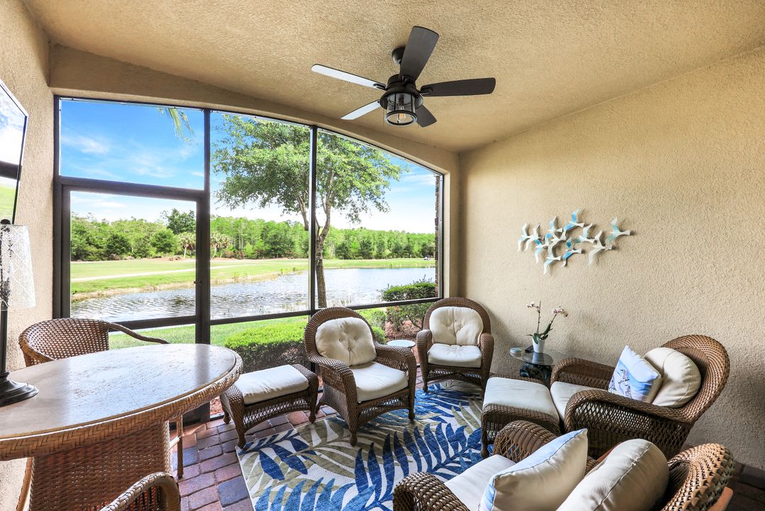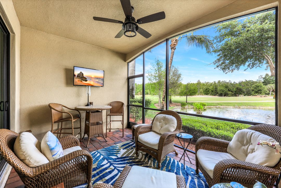 INCLUDED - GOLF MEMBERSHIP and FURNISHED! Lovely Good Morning views over the lake and Golf Course from your private screened lanai and lovely gatherings on the front screened lanai! The Arabella is a beautiful Veranda style condominium and includes your private garage. With the generous Great room design, this is the ideal home for year-round or seasonal living and with generous leasing options, a super investment! The split bedroom design offers maximum privacy for you and your guests, and the den is the perfect flex space for office, media room, yoga and more! With a cozy breakfast nook, the kitchen offers lots of countertop and storage space and that nook is simply a wonderful impromptu gathering area for game night or a lovely desk nook. Tile on the diagonal, granite countertops, crown moldings, the attention to detail is noticeable throughout. Close to the community satellite pool for quiet respite or enjoy all of amenity rich Bonita National and meet your new friends and neighbors! 18 Gordon Lewis designed holes of Golf, lighted har tru tennis courts, pro shop and pros, full fitness center w state of the art equipment, exercise rooms, sauna, full-service beauty salon and then for maximum enjoyment, the lagoon style pool complete with waterfall, lap lanes, poolside cabanas, bar/grill and the LOVELY clubhouse, where you will find a more formal atmosphere, for dining, games and meeting and there are spacious member locker rooms!