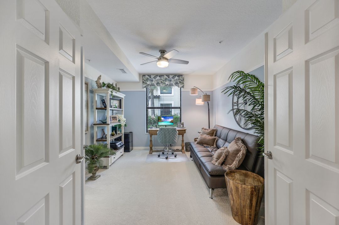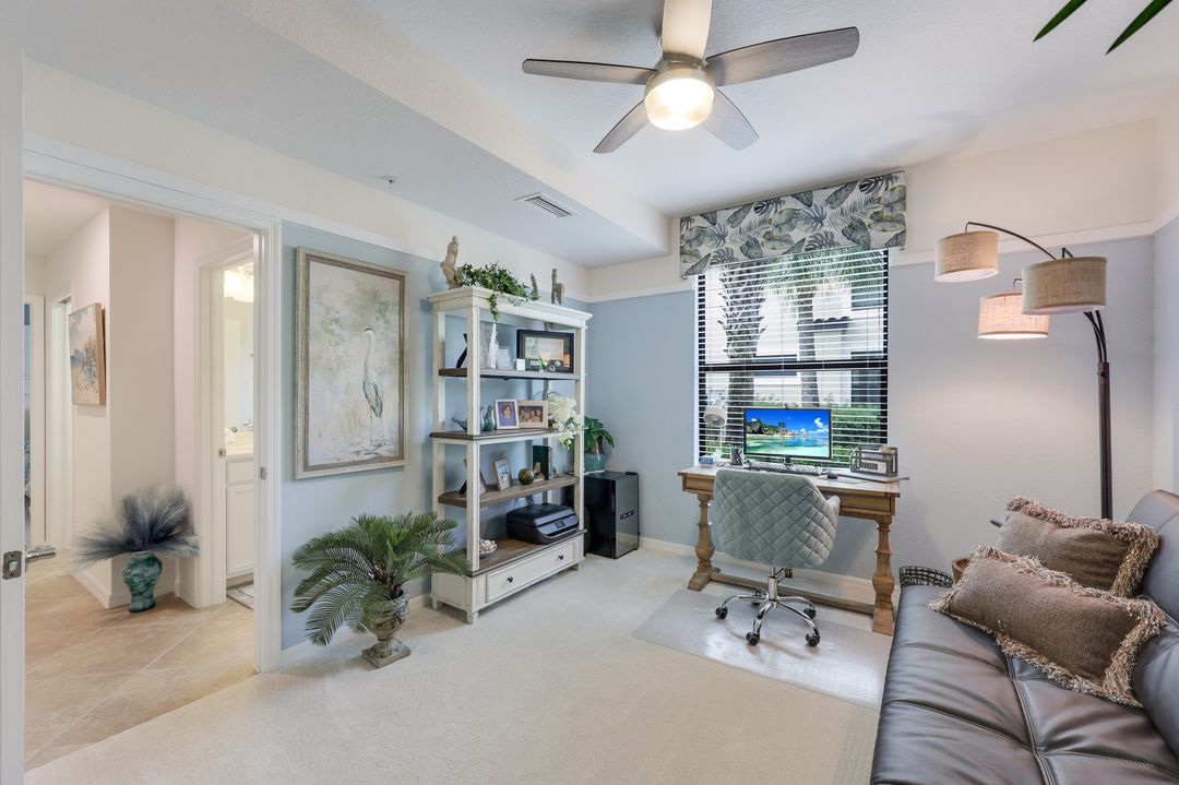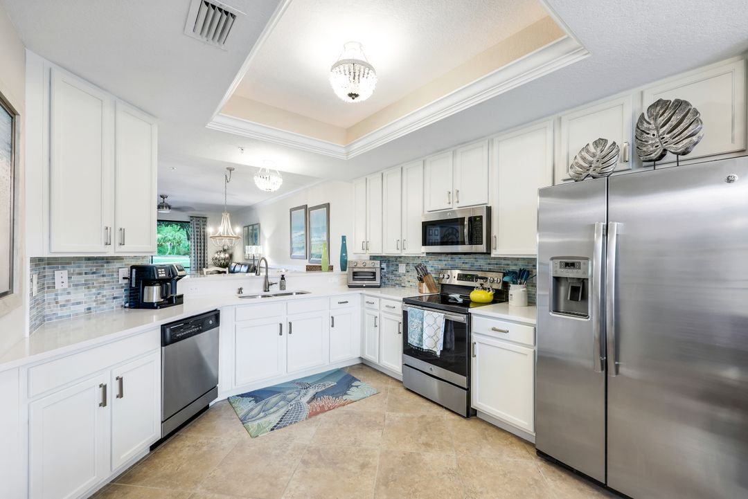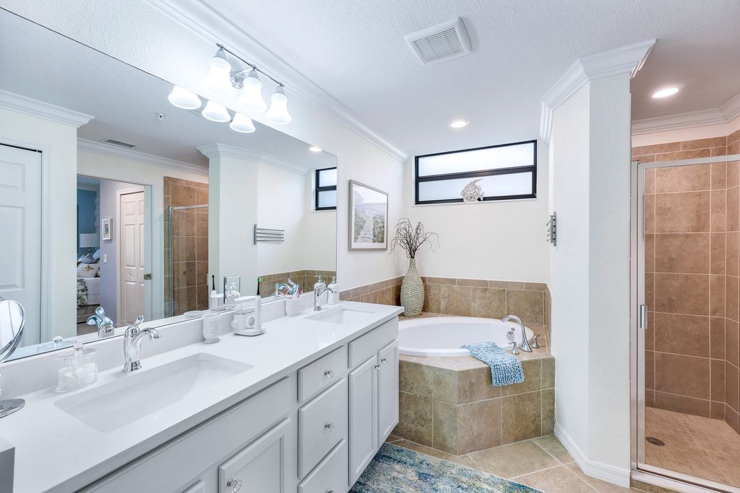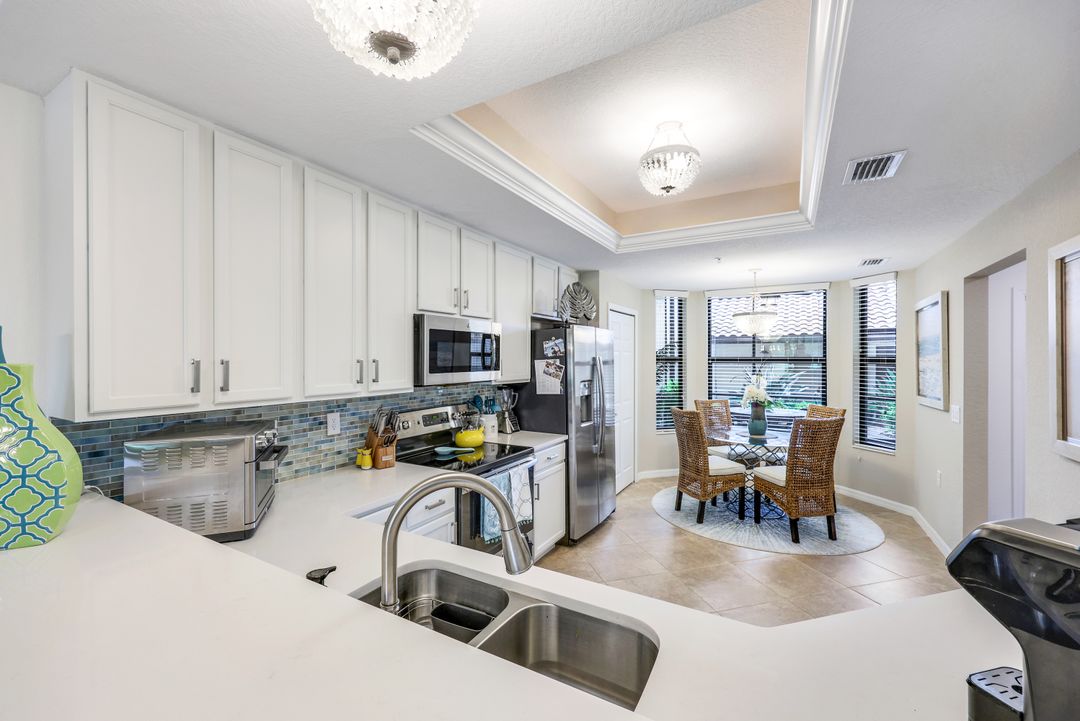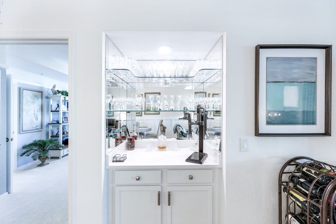 INCLUDED - GOLF MEMBERSHIP and FURNISHED! Lovely Good Morning views over the lake and Golf Course from your private screened lanai and lovely gatherings on the front screened lanai! The Arabella is a beautiful Veranda style condominium and includes your private garage. With the generous Great room design, this is the ideal home for year-round or seasonal living and with generous leasing options, a super investment! The split bedroom design offers maximum privacy for you and your guests, and the den is the perfect flex space for office, media room, yoga and more! With a cozy breakfast nook, the kitchen offers lots of countertop and storage space and that nook is simply a wonderful impromptu gathering area for game night or a lovely desk nook. Tile on the diagonal, granite countertops, crown moldings, the attention to detail is noticeable throughout. Close to the community satellite pool for quiet respite or enjoy all of amenity rich Bonita National and meet your new friends and neighbors! 18 Gordon Lewis designed holes of Golf, lighted har tru tennis courts, pro shop and pros, full fitness center w state of the art equipment, exercise rooms, sauna, full-service beauty salon and then for maximum enjoyment, the lagoon style pool complete with waterfall, lap lanes, poolside cabanas, bar/grill and the LOVELY clubhouse, where you will find a more formal atmosphere, for dining, games and meeting and there are spacious member locker rooms!