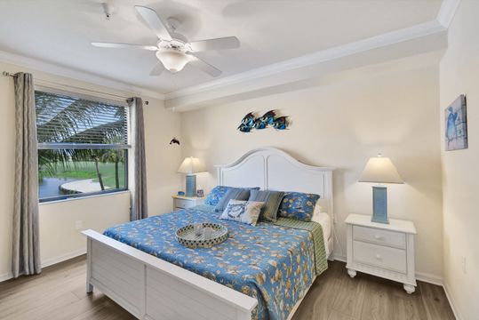 GOLF MEMBERSHIP INCLUDED with this fantastic new property just listed in Bonita National! This one will not last as it is the least expensive property currently listed in Bonita National Golf and Country Club. This fully furnished unit offers a wonderful opportunity to experience resort-style living. Imagine relaxing on your lanai, soaking in the peaceful sunset views of the golf course, lake, and Clubhouse, or socializing at the nearby satellite pool with your new neighbors. This property boasts access to top-notch amenities, including an 18-hole championship golf course, eight lighted HAR-TRU tennis courts, golf, and tennis pro shops, a resort-style pool with a rock waterfall, and three private restaurants. As you step inside, you will be impressed by the meticulous attention to detail, from the diagonal tile flooring to the elegant crown molding. The split bedroom layout ensures privacy for you and your guests. Take advantage of this incredible chance to own a piece of paradise in Bonita National!