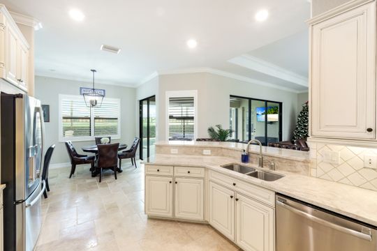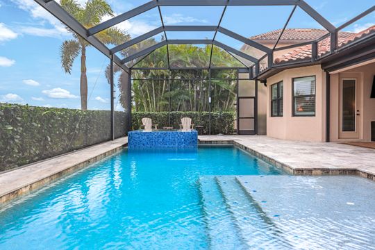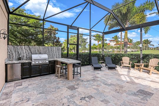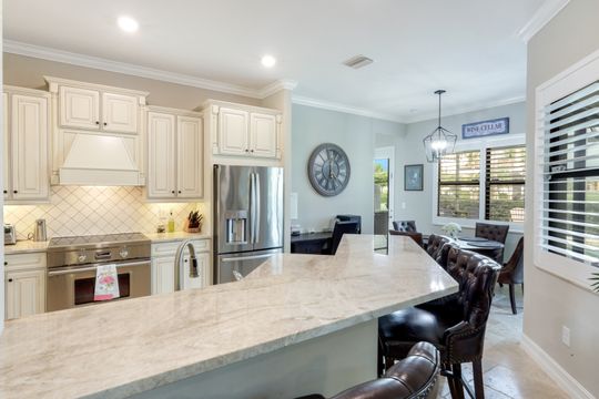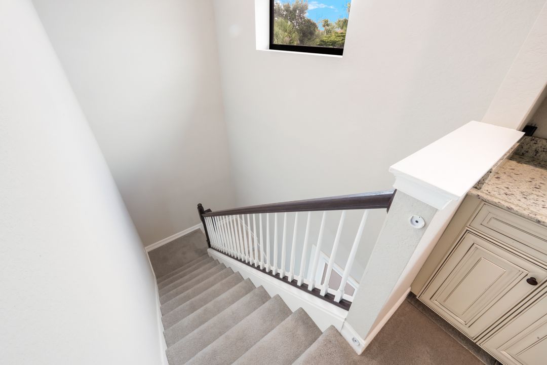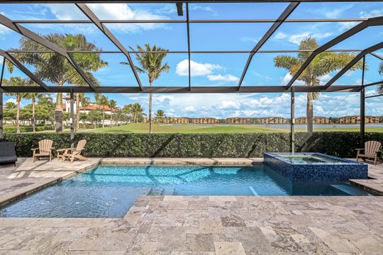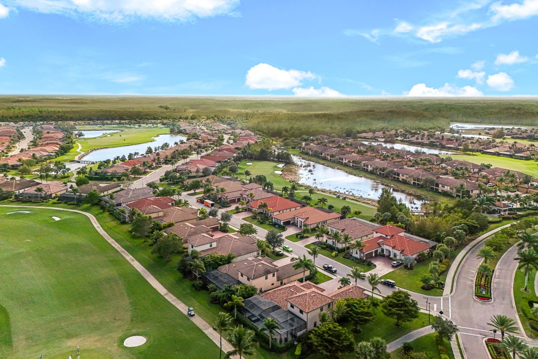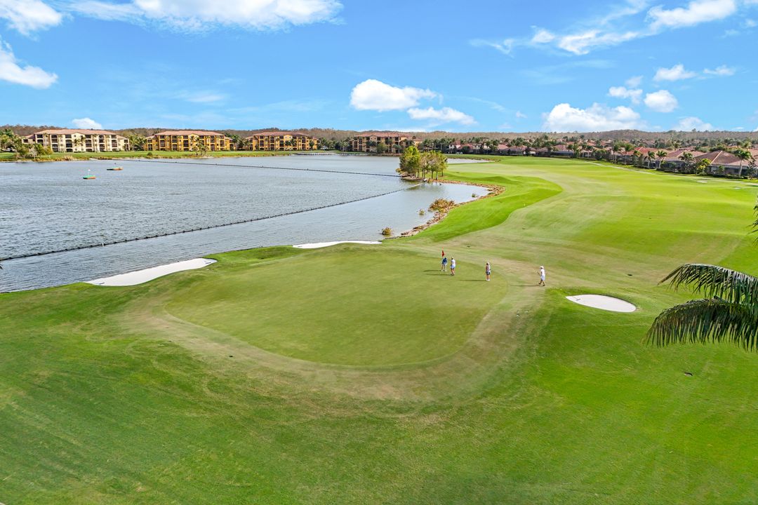 GOLF INCLUDED! This masterfully designed Napoli Grande is perfectly situated on a premium corner lot, just steps from the clubhouse and world-class amenities. Upon entering, you’ll be greeted by refined details, including travertine flooring throughout the first level, elegant crown moldings, and spacious living areas that are ideal for entertaining. The inviting foyer flows seamlessly into a generous Great Room, offering captivating views of the expansive lanai, a custom-built outdoor kitchen with a bar, a sparkling saltwater custom pool and spa, and a tranquil lake and golf course beyond. The gourmet kitchen boasts a wall oven, range, upgraded quartz breakfast bar, and a cozy breakfast nook—perfect for casual meals or game nights. A formal dining room with stunning vistas seamlessly connects to the Great Room, while French doors open onto a versatile den that can easily serve as an additional bedroom. Upstairs, plush carpeting adds warmth and comfort, and the expansive bonus area features a mini kitchen, full bath, and ample space for relaxation, sleep, or recreation—ideal for guests or multi-generational living. Bonita National is an amenity-rich, gated community offering a challenging, Gordon Lewis–designed 18-hole championship golf course, lighted tennis courts, an aqua driving range, a putting green, a pro shop, and a spectacular resort-style pool with a waterfall and lap lanes. Residents enjoy a full-service spa and fitness center, a poolside bar and grill, and, coming in 2026, bocce and pickleball courts. The elegant clubhouse offers formal dining, meeting rooms, and additional amenities. All of this is situated in a prime location, offering easy access to I-75, award-winning Gulf beaches, downtown Naples, and RSW. With extensive shopping, dining, cultural events, and scenic trails nearby, you’ll love your SWFL lifestyle!