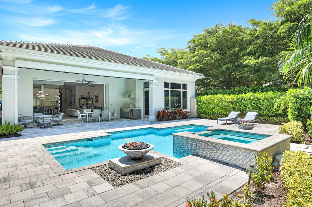 In the private enclave of Caprini at Miromar Lakes, this 3,191-square-foot residence offers refined living in one of Southwest Florida’s most prestigious resort communities. The three-bedroom plus den, 3.5-bath estate blends architectural craftsmanship with effortless luxury. Set on a lush, private lot, the home features a custom pool and spa with fire features—an intimate outdoor retreat ideal for entertaining. Inside, wide-plank wood floors, volume ceilings, and solid wood 8-foot doors create an elegant backdrop. The primary suite impresses with dual walk-in closets and a spa-quality bath, while two guest suites with private baths ensure comfort for visitors. A natural gas island cooktop, Viking appliances, and designer lighting anchor the open kitchen and living areas. Smart home features include a Lutron lighting system, electric window treatments, integrated security, impact windows and doors, storm screens, and a whole-house generator. With exterior painting and roof maintenance included, ownership is truly low-maintenance. Residents enjoy access to private boat docks and the award-winning Miromar Lakes Beach & Golf Club—offering 700 acres of freshwater lake, three miles of white-sand beach, waterfront dining, a European-style spa, fitness center, infinity pool, and 400+ annual events. Sports amenities include championship golf, tennis, pickleball, bocce, and more—all within a 24-hour gated community designed for a resort lifestyle.