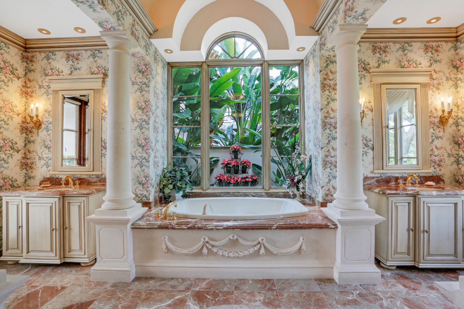 THE MOST STATELY HOME on the market, W of 41 in the exclusive community of Audubon! Impeccably maintained, custom built, NEW ROOF, NEW ACs, stunning finishes - designed by Richard Morris, custom built according to the highest standards. This home & it's finishes are truly one of a kind; must be seen to be fully appreciated. Real BRICK pavers line the driveway, the courtyard & back patio. Marble flooring throughout, custom built in cabinetry & shelving, Lutron lighting system, solid Italian limestone columns, solid wood custom designed doors, custom marble finishes in baths, sensors in each room for temperature control & so much more. If you appreciate craftsmanship & QUALITY, look no further. This home was built, maintained & loved by it's current owners. Every detail was considered! 3 BRs, several sitting areas, formal & informal dining, open air foyer/entryway w/custom built fountain, separate cabana for guests w/kitchen, dining & living areas. Gorgeous golf course views-from the moment you enter the custom designed wrought iron gates, you will feel nothing less than impressed and comfortable-the PERFECT gathering place for friends & family. Homes of this caliber are rare!