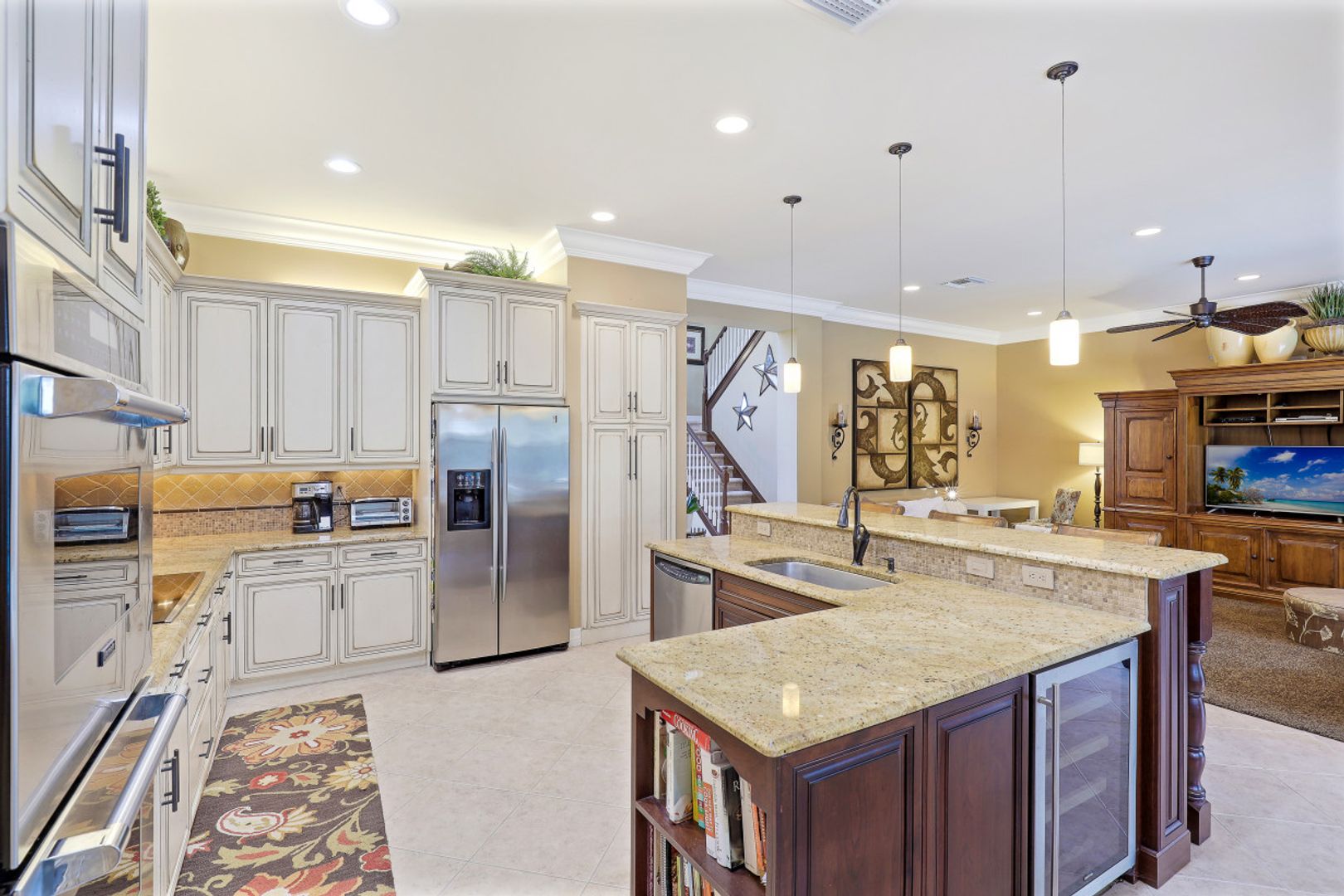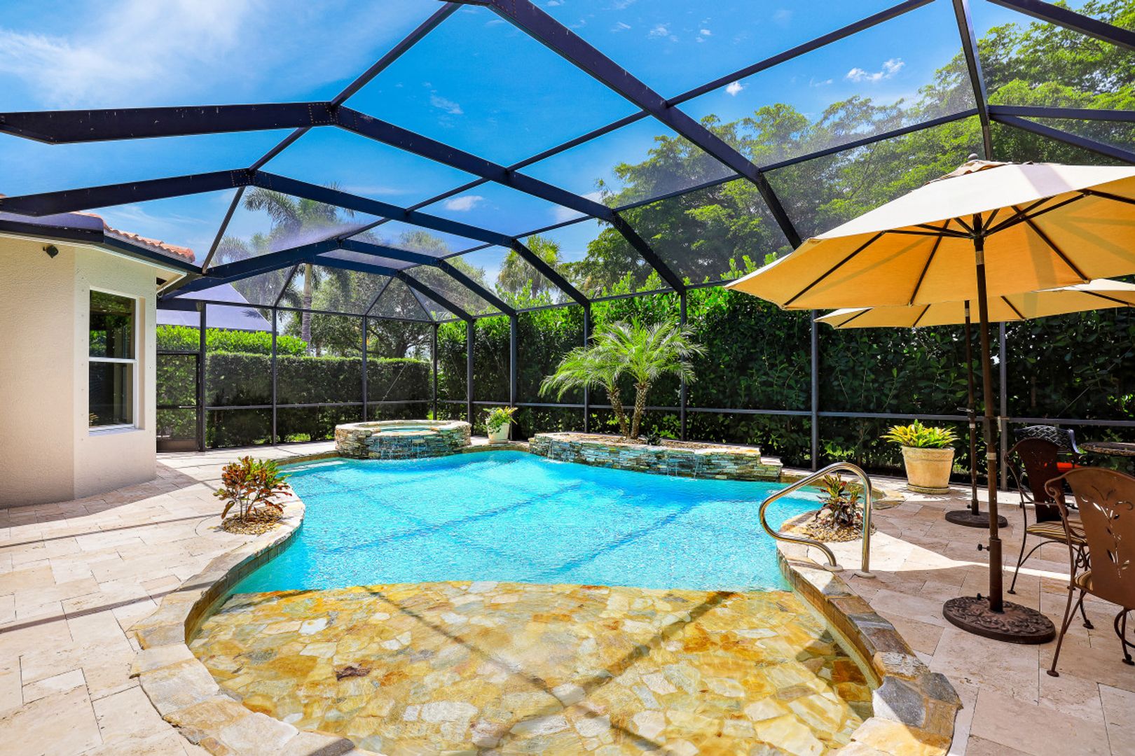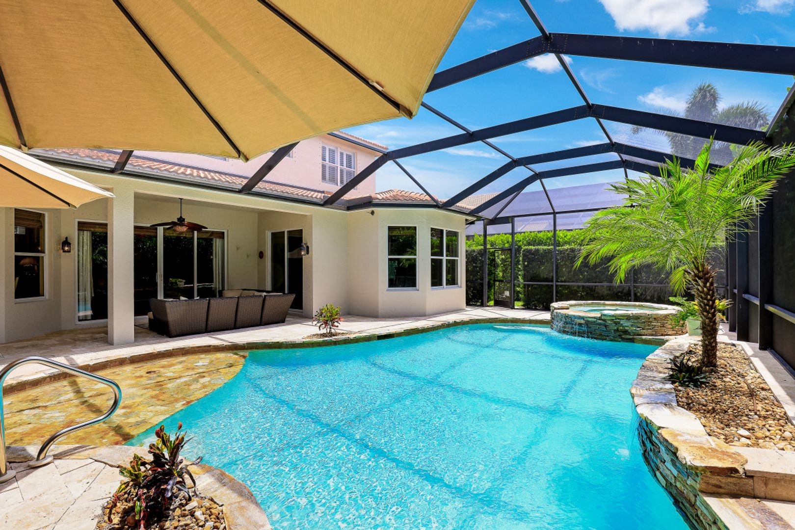 This spacious "Sapphire" offers 4 Bedrooms, 3.5 Baths, Loft, 3 Car Garage, and almost 3800 Sq Ft under air. Through the custom front doors, you are greeted with 20' ceilings in the formal Living & Dining Rooms and a grande staircase to the second floor. In the rear of the home, you will find a Cook's Kitchen including Thermodor double wall ovens, beverage cooler, and double pantries, which is open to the family room with sliders to the lanai. The Lanai offers a custom heated pool with raised spa and sunshelf. An outdoor kitchen and oversized lanai with travertine marble decking complete this entertainers dream lanai. NEW ROOF 2019. FRESH EXTERIOR PAINT 2020. NEW HVAC 2019. "Club at Saturnia Grande" offers resort pool, hot tub, lap pool, kiddie pool, saunas, fitness center, billiards room, ball room, 4 tennis courts, basketball court, and more! HOA fees include Landscaping, Irrigation, Clubhouse Amenities, Alarm Monitoring, Cable TV, Internet, and Phone! A RATED SCHOOLS! 5 min to I75. 10 min to Mercato. 15 min to the Beach. 30 min to Downtown/5th Ave. 25 min to RSW Airport.