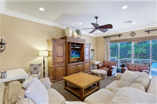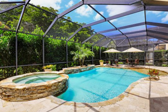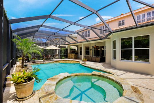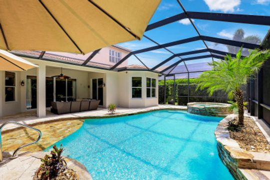 This spacious "Sapphire" offers 4 Bedrooms, 3.5 Baths, Loft, 3 Car Garage, and almost 3800 Sq Ft under air. Through the custom front doors, you are greeted with 20' ceilings in the formal Living & Dining Rooms and a grande staircase to the second floor. In the rear of the home, you will find a Cook's Kitchen including Thermodor double wall ovens, beverage cooler, and double pantries, which is open to the family room with sliders to the lanai. The Lanai offers a custom heated pool with raised spa and sunshelf. An outdoor kitchen and oversized lanai with travertine marble decking complete this entertainers dream lanai. NEW ROOF 2019. FRESH EXTERIOR PAINT 2020. NEW HVAC 2019. "Club at Saturnia Grande" offers resort pool, hot tub, lap pool, kiddie pool, saunas, fitness center, billiards room, ball room, 4 tennis courts, basketball court, and more! HOA fees include Landscaping, Irrigation, Clubhouse Amenities, Alarm Monitoring, Cable TV, Internet, and Phone! A RATED SCHOOLS! 5 min to I75. 10 min to Mercato. 15 min to the Beach. 30 min to Downtown/5th Ave. 25 min to RSW Airport.