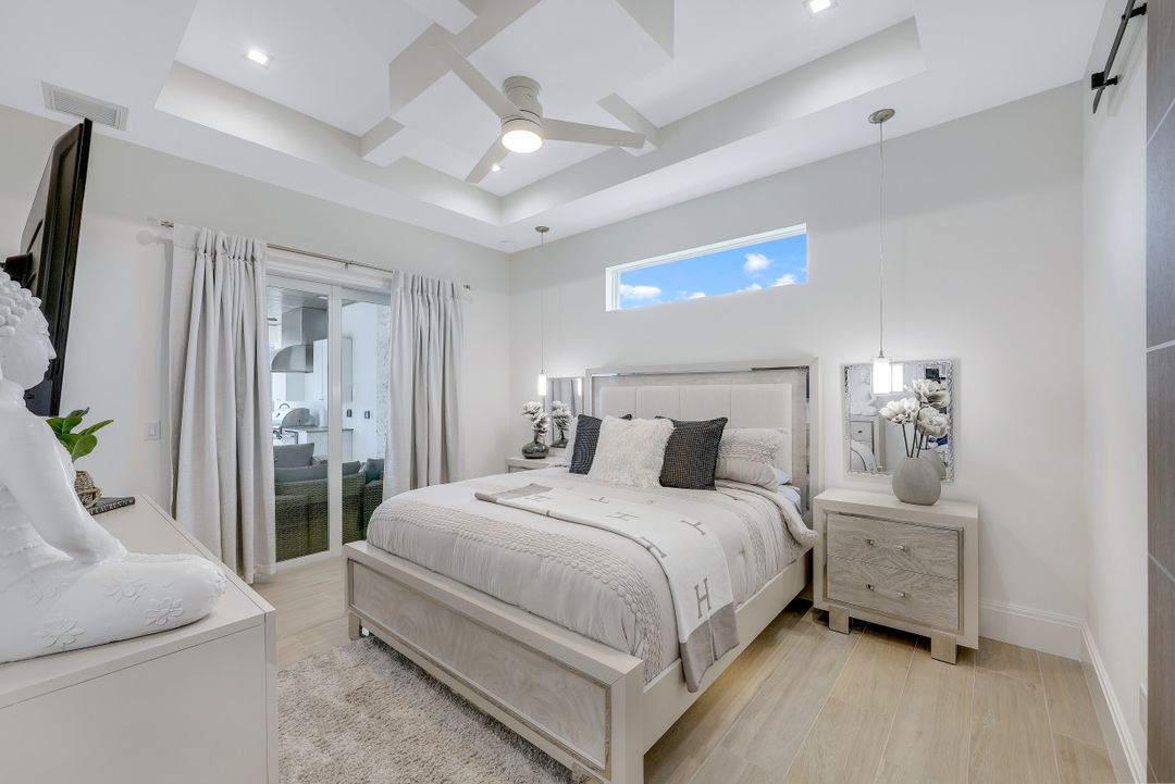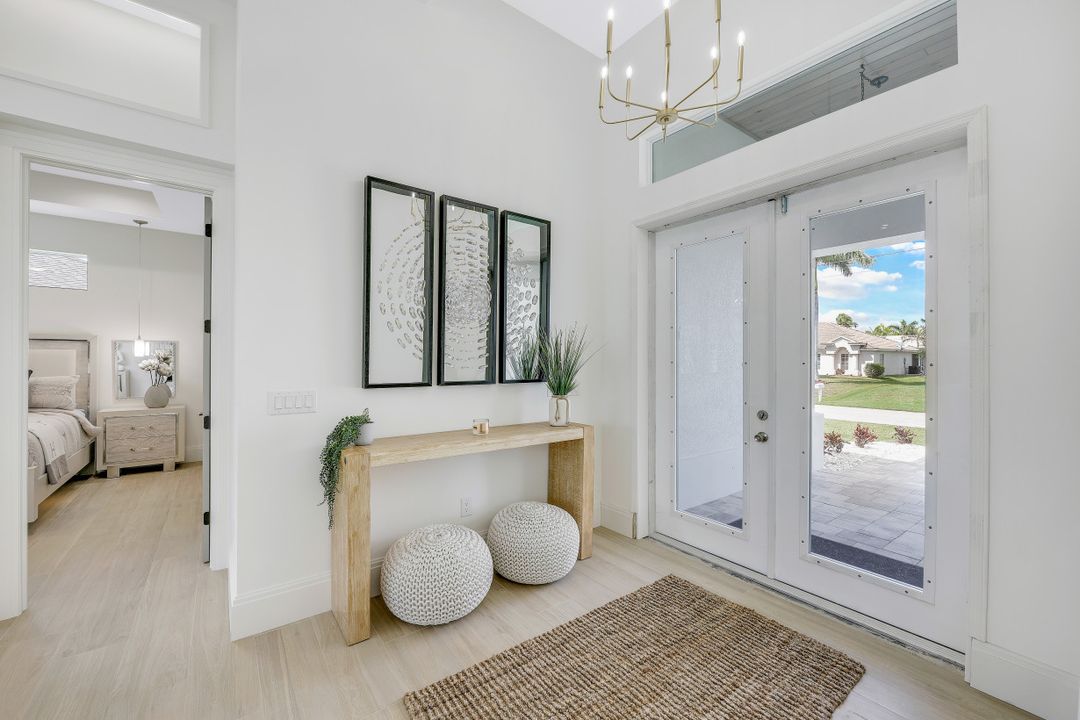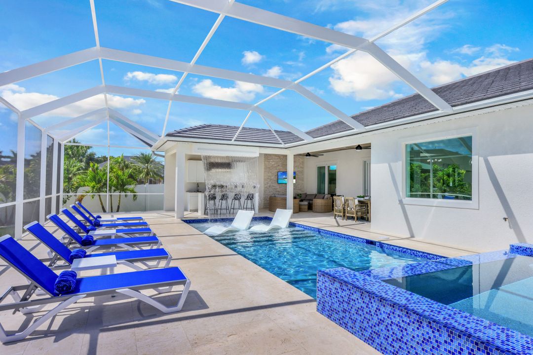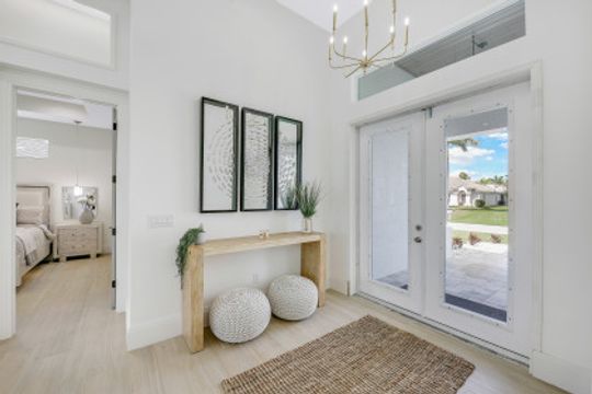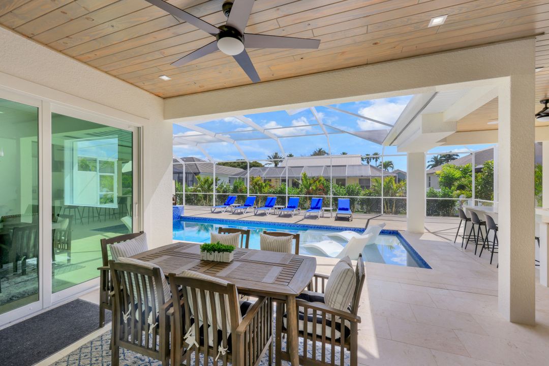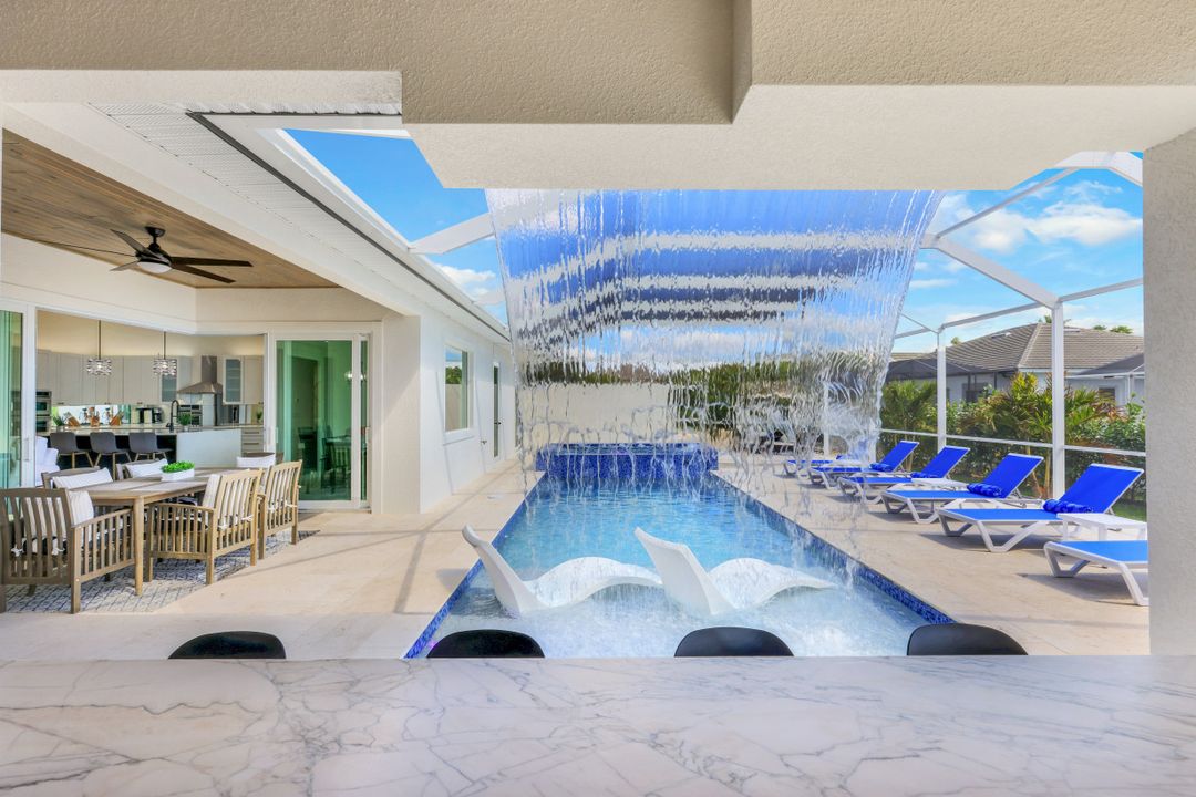 Luxurious Coastal Modern Home located in the Cape Harbour area. New Construction and loaded with every imaginable upgrade. Featuring 4 Bedrooms 3 Full Baths and a 3 Car Garage with an open floorplan, designer coffered ceilings, plank tile floors throughout, and level 5 drywall & paint. Stylish modern kitchen features a 9' waterfall center island, custom contemporary cabinetry, and high-end appliances. Spacious family room with feature wall & fireplace complimented by detailed vaulted ceilings. Designer chandeliers, fans, squared LED lighting. The owners suite feels like a private retreat with spa style with walk-in shower, tub, and vanities. Spacious bedrooms each with unique tray ceilings. Western Exposure for sunsets & afternoon sunlight on the Resort Pool. Pool w/ 8 person integrated hot tub! Massive sun shelf for sunbathing, waterfall from the roofline, and tons of LED lights in the pool & waterfall. Full outdoor kitchen w/ bar top, grill, and fridge alongside the almost 500 SF Cabana Outdoor Living Room! Huge mud set marble deck, cypress ceilings, & extensive landscaping. BOATERS very close to Cape Harbour for wet & dry boat storage, boat rentals, restaurants, dining, events.
