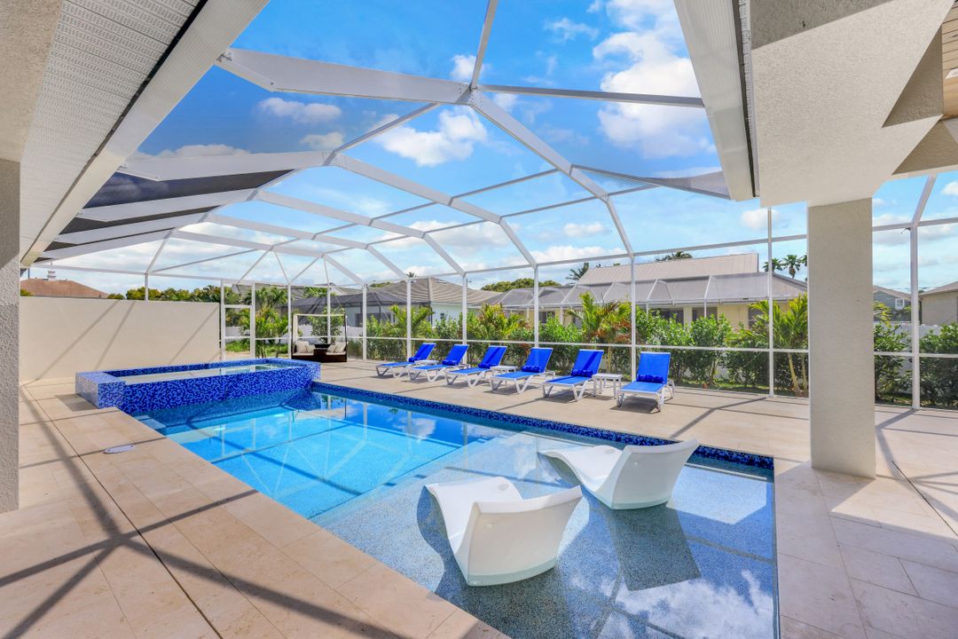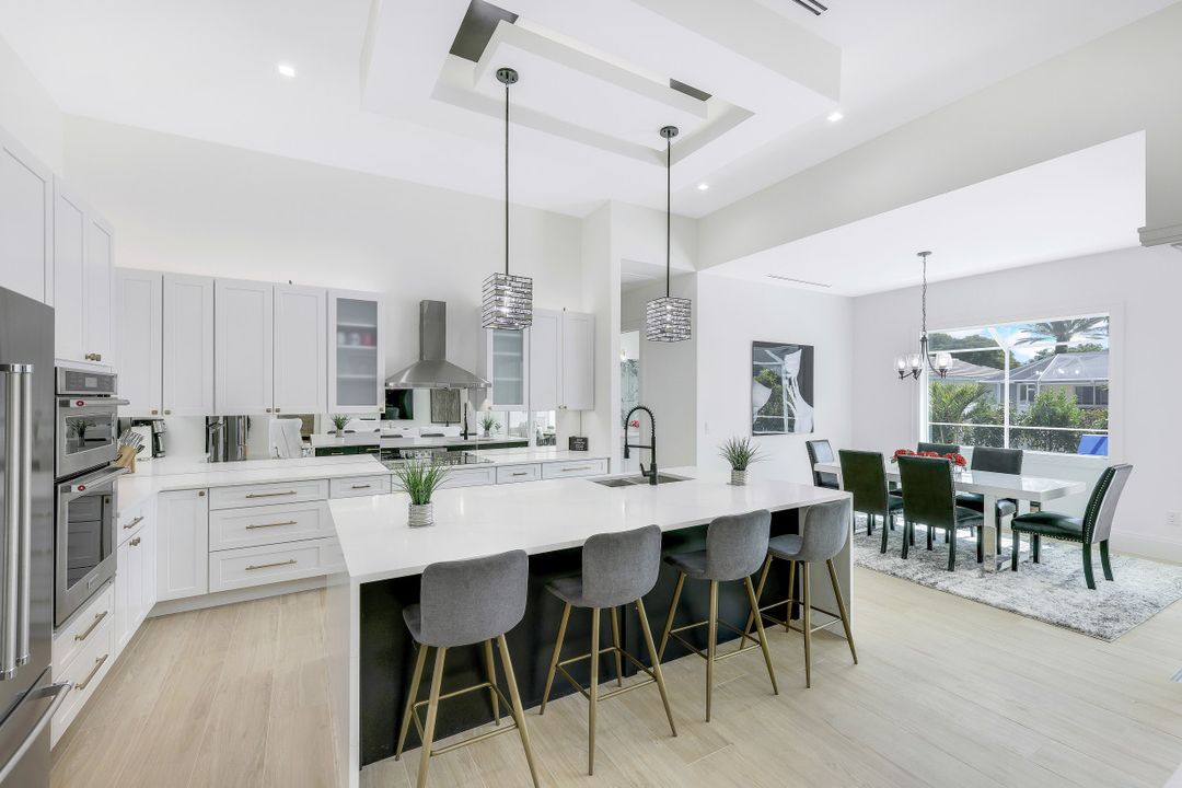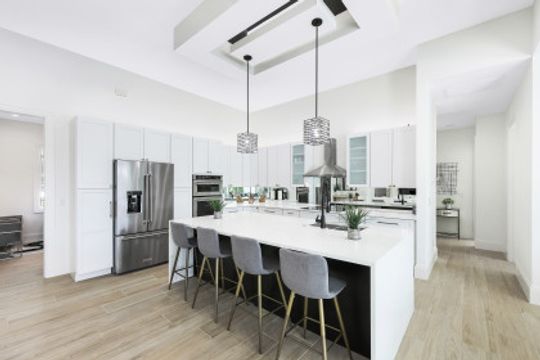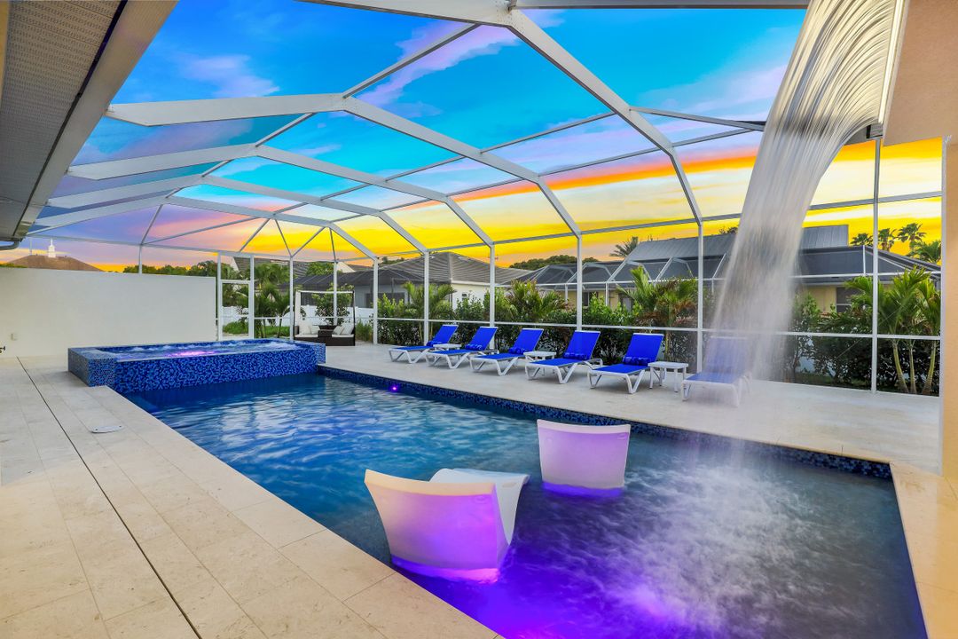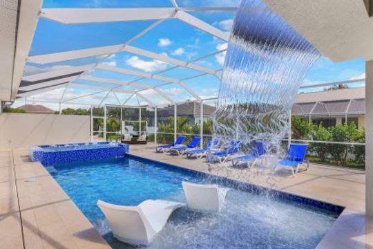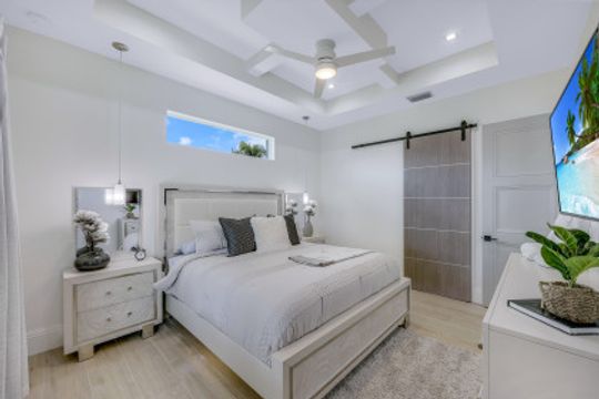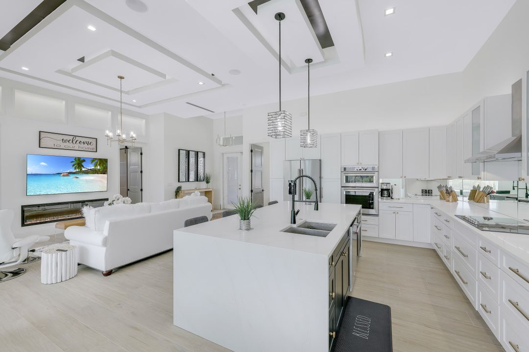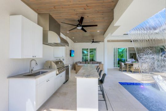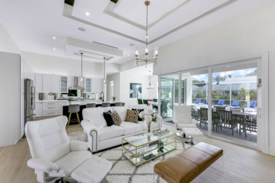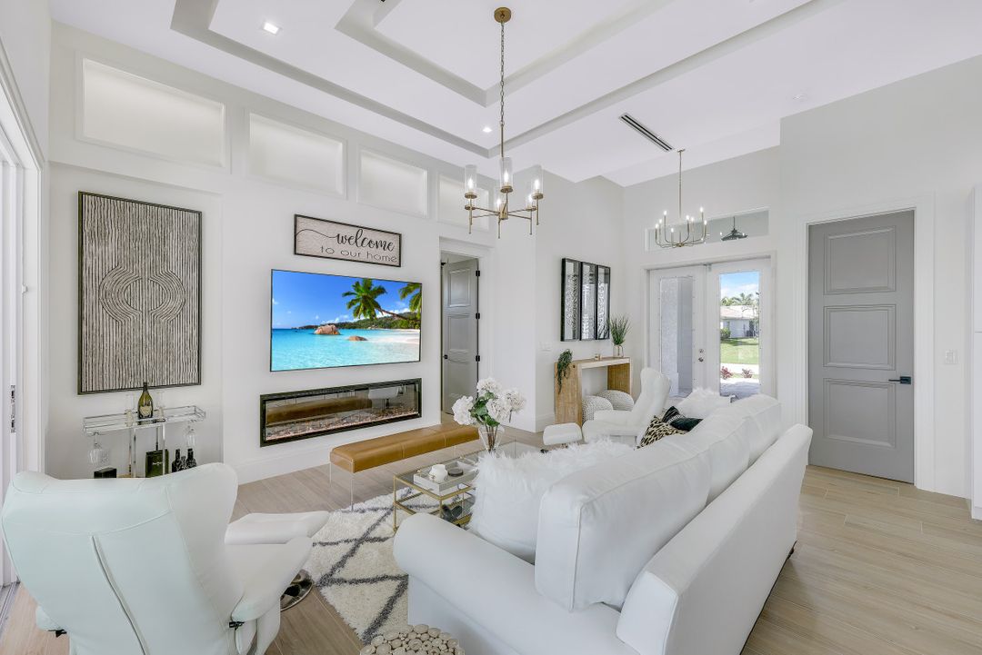 Luxurious Coastal Modern Home located in the Cape Harbour area. New Construction and loaded with every imaginable upgrade. Featuring 4 Bedrooms 3 Full Baths and a 3 Car Garage with an open floorplan, designer coffered ceilings, plank tile floors throughout, and level 5 drywall & paint. Stylish modern kitchen features a 9' waterfall center island, custom contemporary cabinetry, and high-end appliances. Spacious family room with feature wall & fireplace complimented by detailed vaulted ceilings. Designer chandeliers, fans, squared LED lighting. The owners suite feels like a private retreat with spa style with walk-in shower, tub, and vanities. Spacious bedrooms each with unique tray ceilings. Western Exposure for sunsets & afternoon sunlight on the Resort Pool. Pool w/ 8 person integrated hot tub! Massive sun shelf for sunbathing, waterfall from the roofline, and tons of LED lights in the pool & waterfall. Full outdoor kitchen w/ bar top, grill, and fridge alongside the almost 500 SF Cabana Outdoor Living Room! Huge mud set marble deck, cypress ceilings, & extensive landscaping. BOATERS very close to Cape Harbour for wet & dry boat storage, boat rentals, restaurants, dining, events.