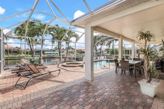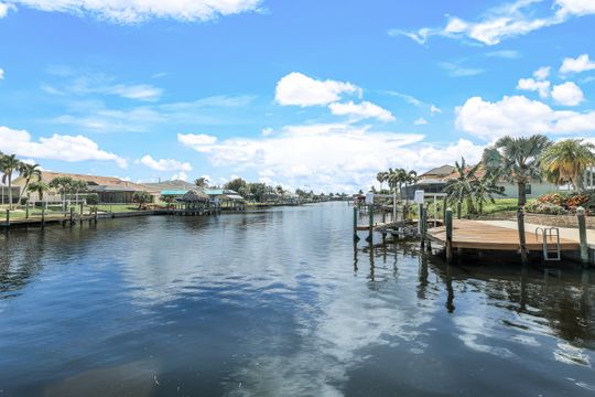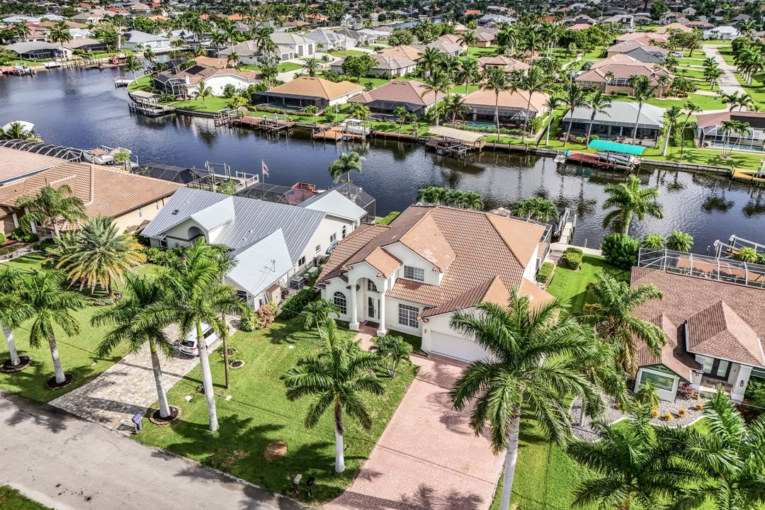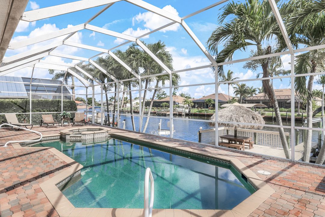 This Elegant Luxury gulf access waterfront property offers magnificent breathtaking views, and tranquility. This Villa home has been fully renovated into a modern style in 2020. The open and spacious concept is great for entertaining your family and friends and offers high ceiling to let in all the natural light. The kitchen has a waterfall granite countertop island, frameless European-style cabinets all stainless appliances, and tile floors throughout the home. The home offers a Master suite on the first floor with a retreat area and has his and hers walk -in closets. Master bath offers floating vanity dual sinks with custom lighted mirrors and oversize walk-in shower. Sliding doors that lead to pool and outdoor screened living area. The upstairs have 3 bedrooms with 2 full bathrooms with floating vanities and custom mirrors and a loft/game area. The laundry room has a front loader washer and dryer and sink. 3 car garage with epoxy floor and oversize water heater. The Best Fishing & Boating right from your Back Yard! Captains walk, tiki, jet ski lift and 12K boat lift. Just minutes to vibrant Cape Harbour Promenade and Tarpon Point Marinas for dining and shopping and live entertainment. Cape Harbour is a hub of social and night life activities to enjoy the exquisite waterfront lifestyle in Southwest Florida. Welcome to Paradise!