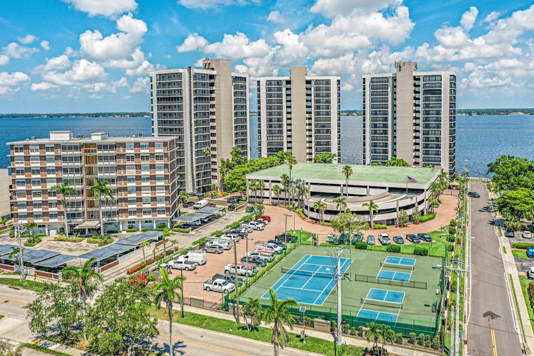 Earnest seller says bring your offer. Enjoy breathtaking sunsets over the Caloosahatchee River in your newly renovated downtown historic river district retreat! Beautiful updates boast European Oak flooring throughout, timeless cabinets, elegant quartz countertops and backsplash, new modern fixtures, all new kitchen appliances, lighting and paint. This exceptional condo offers extraordinary private unobstructed views from the screened-in lanai, expanded great room and spacious master bedroom. Entertain in your enlarged great room with amazing views and ambiance of your captivating fireplace with rare Pecky Cypress wood accents. Guest bath includes a spa walk in tub. This remarkable condo includes California Closets and a convenient in-unit laundry room. Storm Smart shutters, new roof, new hot water heater and new elevator provide protection and peace of mind. Plumbing updates 2018 & 2021. Indulge in resort style community amenities: Brand new heated pool, pickleball and tennis courts, brand new state of the art fitness center and community gathering room. This is the only downtown gated community with manned 24 hour security. Located in walking distance to the growing and vibrant Downtown Historic River District, you have access to a plethora of dining options, unique shopping experiences, engaging arts and entertainment, as well as exciting festivals and events. Your place in paradise awaits you now!