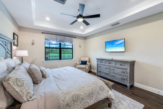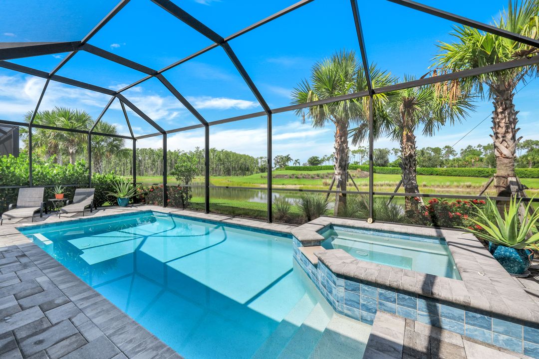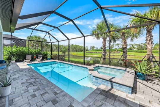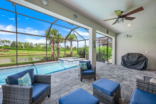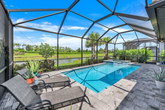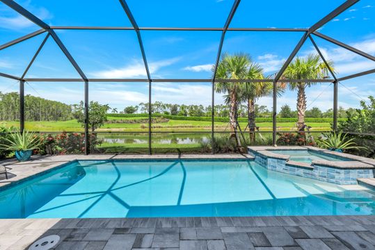 Enjoy LUXURY LIVING in SW Florida's newest Lake and Boating community-WildBlue! This one is the BEST VALUE per sq ft in WILDBLUE & includes a Whole house generator, oversized great room, extended garage, saltwater pool/spa, & more! This GORGEOUS Pool/Spa home perfectly integrates indoor/outdoor living and features STUNNING sunsets every evening & over 3200 sq ft of living space.
