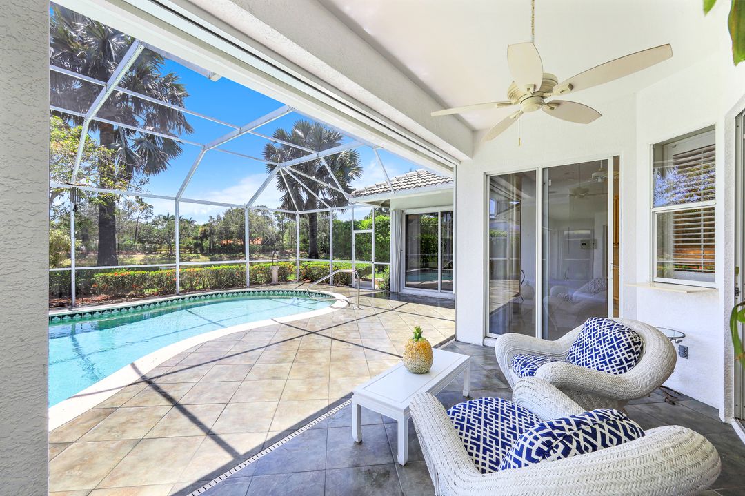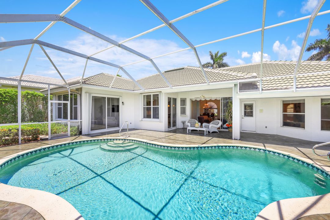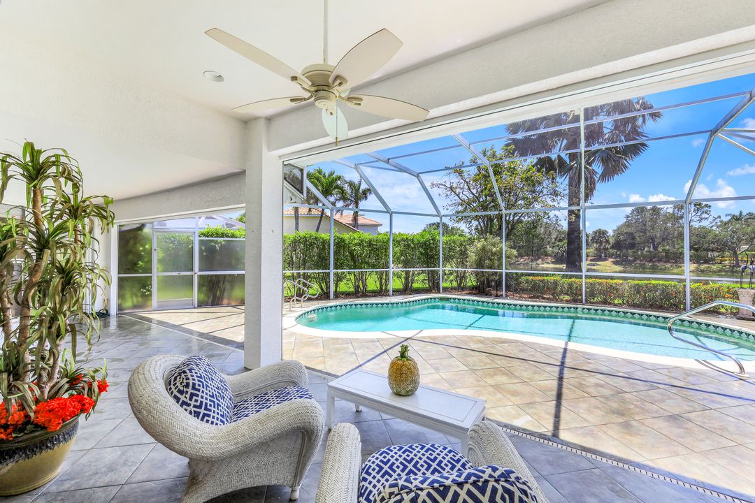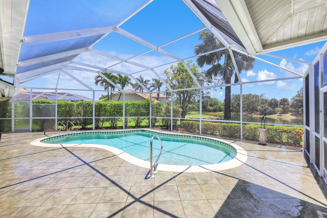 What a fantastic location! Off Orange Blossom Drive convenient to many popular shopping and dining destinations. What a wonderful view! Its south-facing pool and lanai overlook a peaceful lake view. What a great house! This home features three bedrooms, three full baths plus formal and casual living spaces, lots of storage, and an oversized two-car garage. The roof was replaced in 2019, new water heater in 2022, and new AC in 2017. Electric storm shutters protect the lanai, while manual shutters secure the rest of the home. Heron Pointe is a gated community with only 47 single-family homes treating its residents to a community pool and low HOA fees.