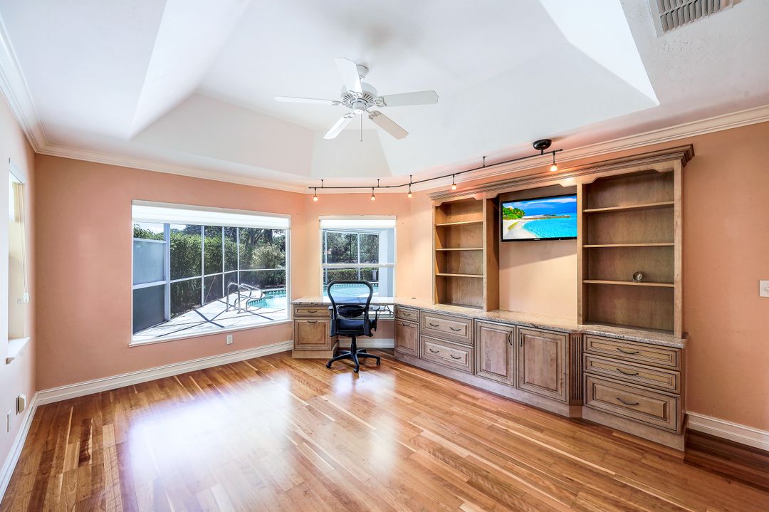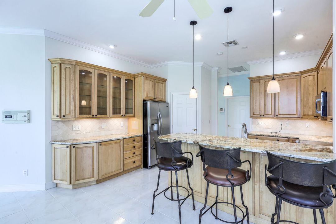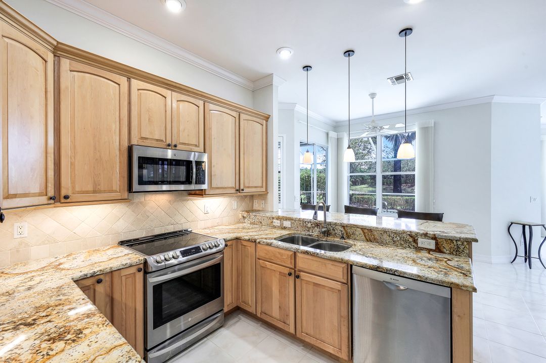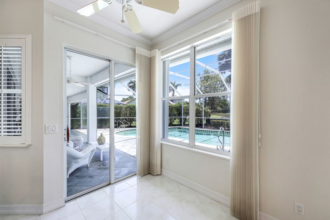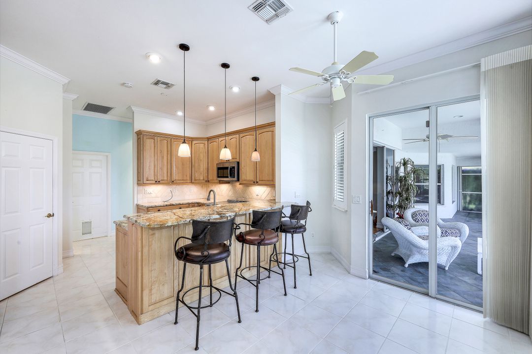 What a fantastic location! Off Orange Blossom Drive convenient to many popular shopping and dining destinations. What a wonderful view! Its south-facing pool and lanai overlook a peaceful lake view. What a great house! This home features three bedrooms, three full baths plus formal and casual living spaces, lots of storage, and an oversized two-car garage. The roof was replaced in 2019, new water heater in 2022, and new AC in 2017. Electric storm shutters protect the lanai, while manual shutters secure the rest of the home. Heron Pointe is a gated community with only 47 single-family homes treating its residents to a community pool and low HOA fees.