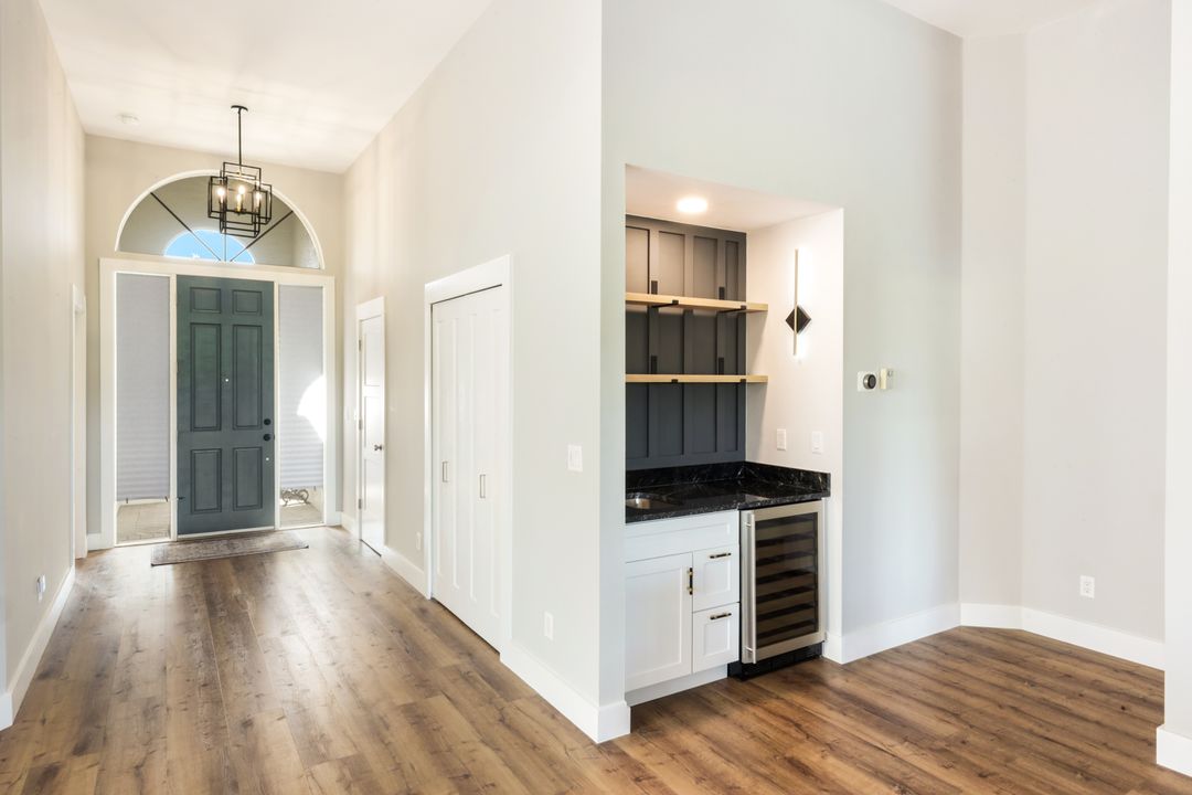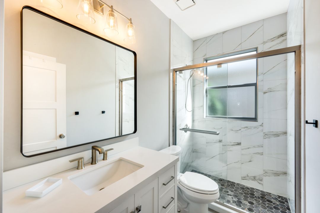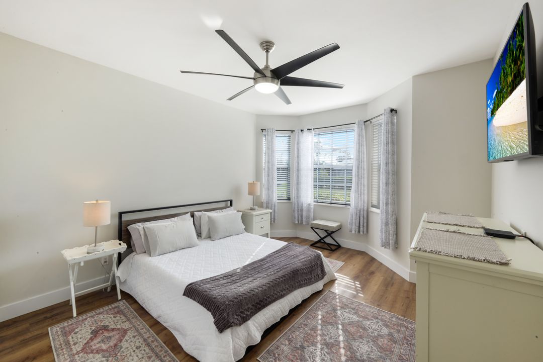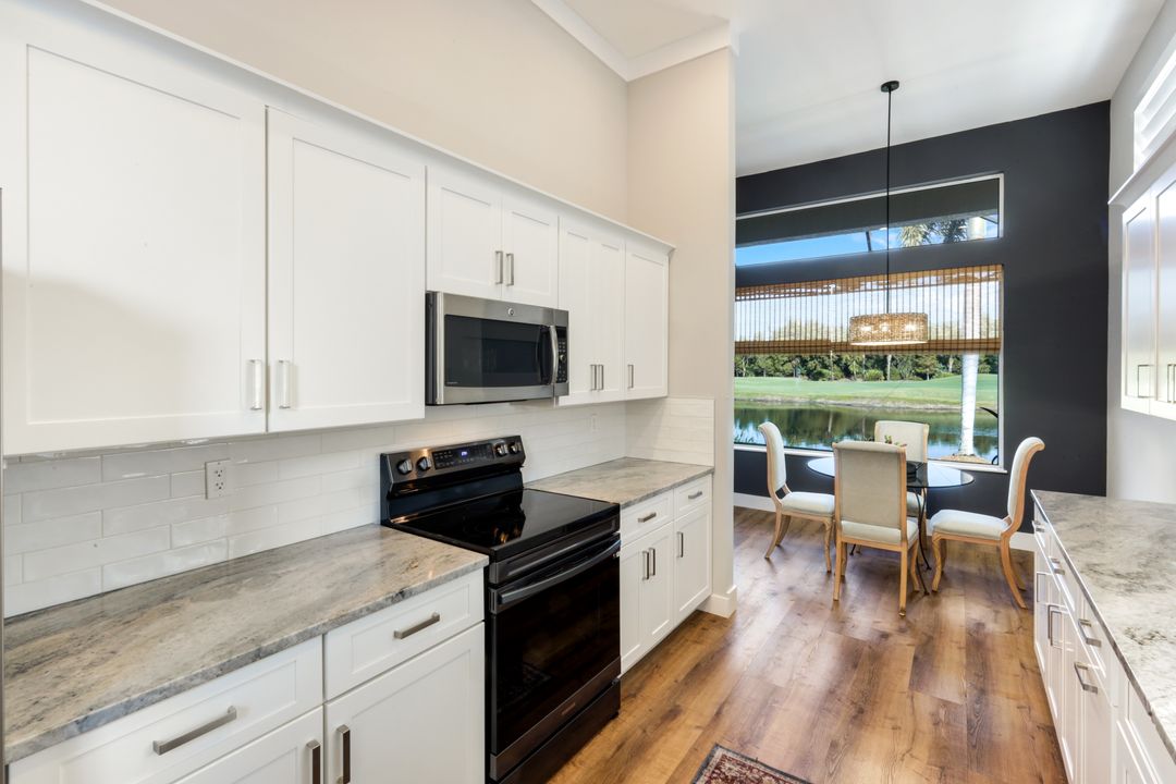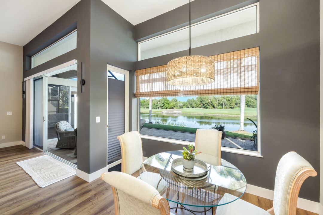 This impeccably renovated 2-bedroom plus den, 2-bath single-family home combines modern elegance with one of the most desirable locations in the community. Updated from top to bottom—including a 2021 roof—this home lives like new and showcases exceptional craftsmanship throughout. Perfectly positioned directly across from the community pool, it also offers the most private and pristine golf course and lakefront views from its expansive, extended lanai. Whether enjoying morning coffee and spectacular sunrises, the tranquil backdrop is unmatched. Inside, the open layout features a beautifully redesigned kitchen, updated baths, stylish flooring, and designer finishes that elevate every space. The versatile den provides ideal flexibility for a home office, media room, or overflow guest space. Situated in the heart of Estero, this home offers quick access to premier shopping, dining, Gulf Coast Town Center, FGCU, and the SWFL International Airport—making it ideal for both seasonal and full-time living. If you haven’t seen the best, come experience this one. Homes like this rarely become available