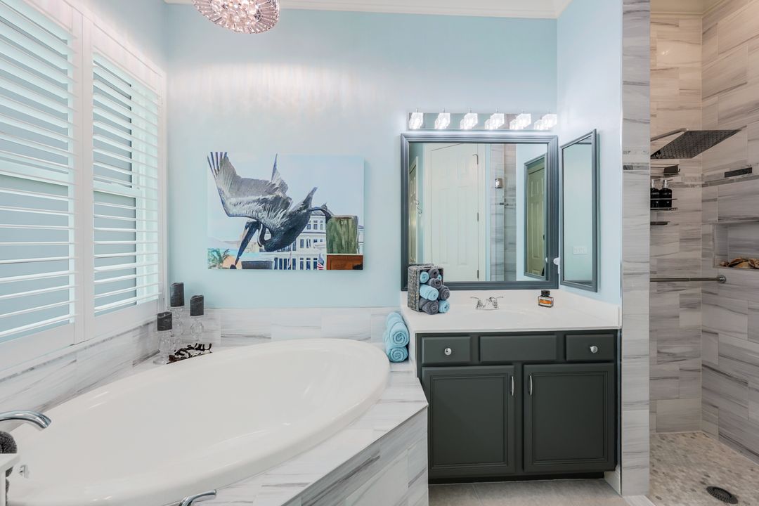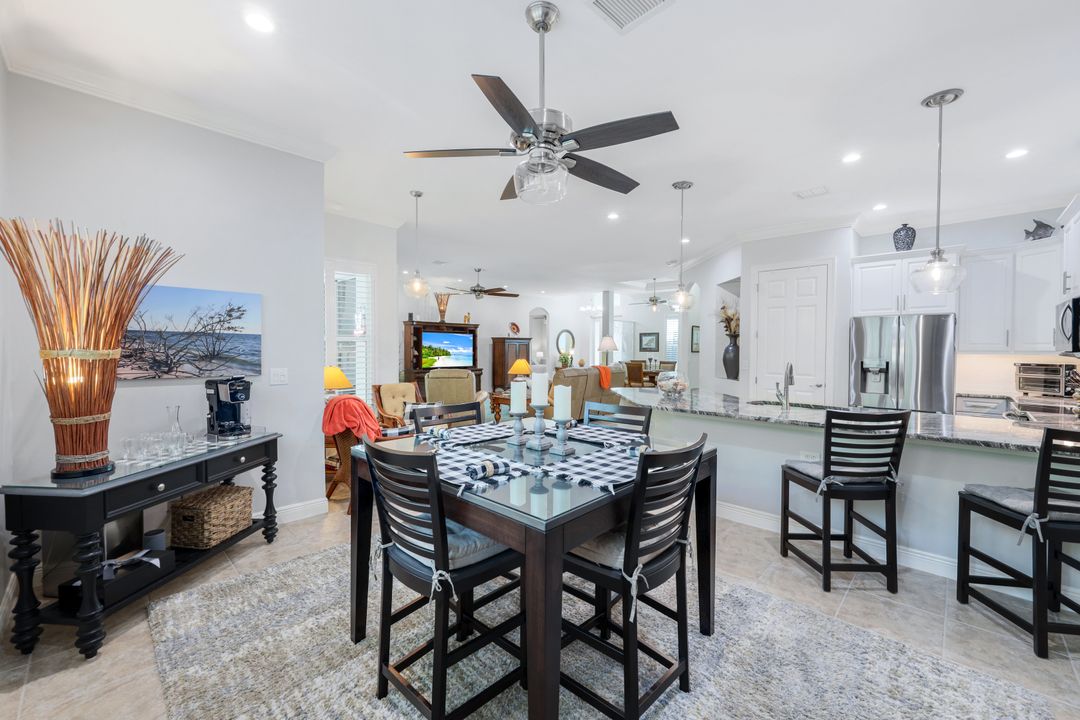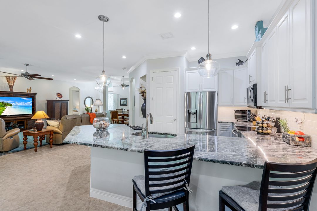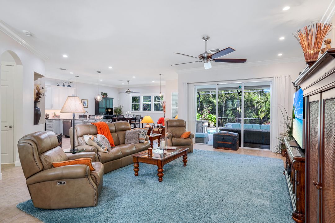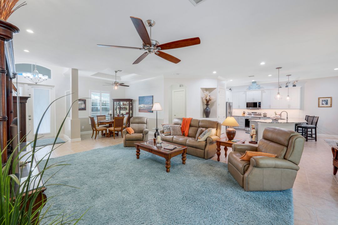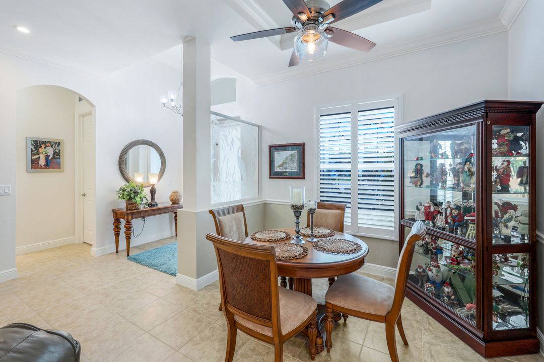Step inside and discover an exquisitely designed interior and tasteful finishes throughout, crown and chair rail molding, higher baseboards, custom etched glass divider panel, updated light fixtures, ceiling fans, LED recessed lighting and so much more. The spacious Great Room layout provides ample room for relaxation and entertaining, while all of the thoughtful updates create a sophisticated and inviting atmosphere.