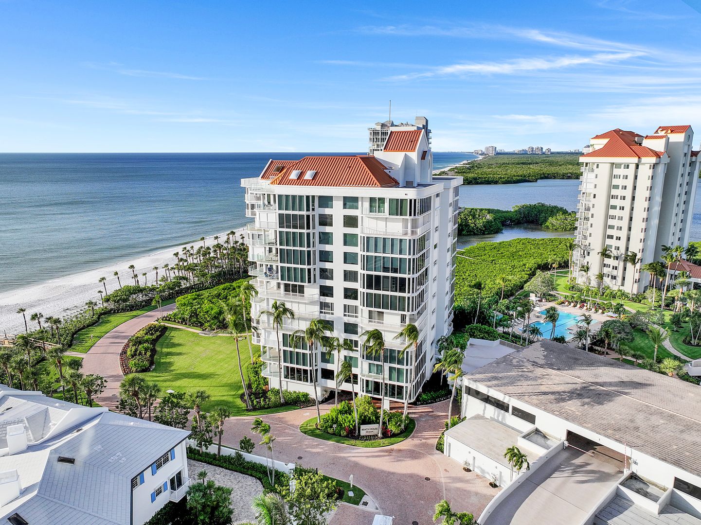 LISTED AND SOLD FOR $3,195,000. We represented the Seller and Buyer. BEACHFRONT CONDO ON THE SAND AT BEACH HOUSE IN NAPLES CAY! Beach House lives like a beach house with all the convenience of a condo. Gulf, beach and Clam Bay views. Year round sunsets! Expansive 500+ SF wrap around lanai. Only 33 units (just 3 per floor). Beach House at Naples Cay lives like an intimate, upscale boutique hotel. PET FRIENDLY building allows two pets. 2,484 under air, 4,027 total SF. Two large master suites, 3 full baths and a large den that is easily converted into a third bedroom. Private garage and upper deck parking space. Large climate controlled ground floor private storage closet. The Beach House lobby was completely remodeled in 2023; NEW ELEVATORS to be installed summer 2024 (assessment paid). Naples Cay is nestled between Park Shore and Pelican Bay, is a 24 hour guard gated beach community offering a unique level of privacy and tranquility, yet is within walking distance to fine dining, shopping and entertainment to Venetian Village, Waterside Shops, and Artis Naples. Centrally located in Naples. Just a short drive to Mercato, 5th Ave and 3rd St. South.