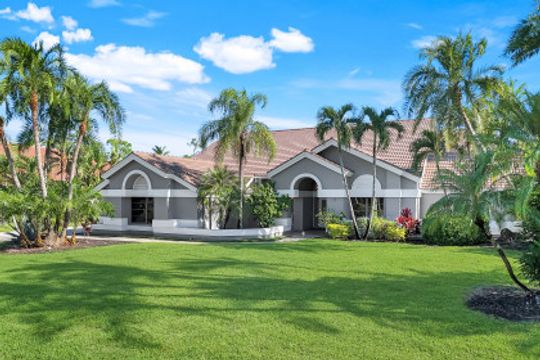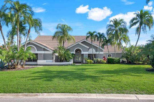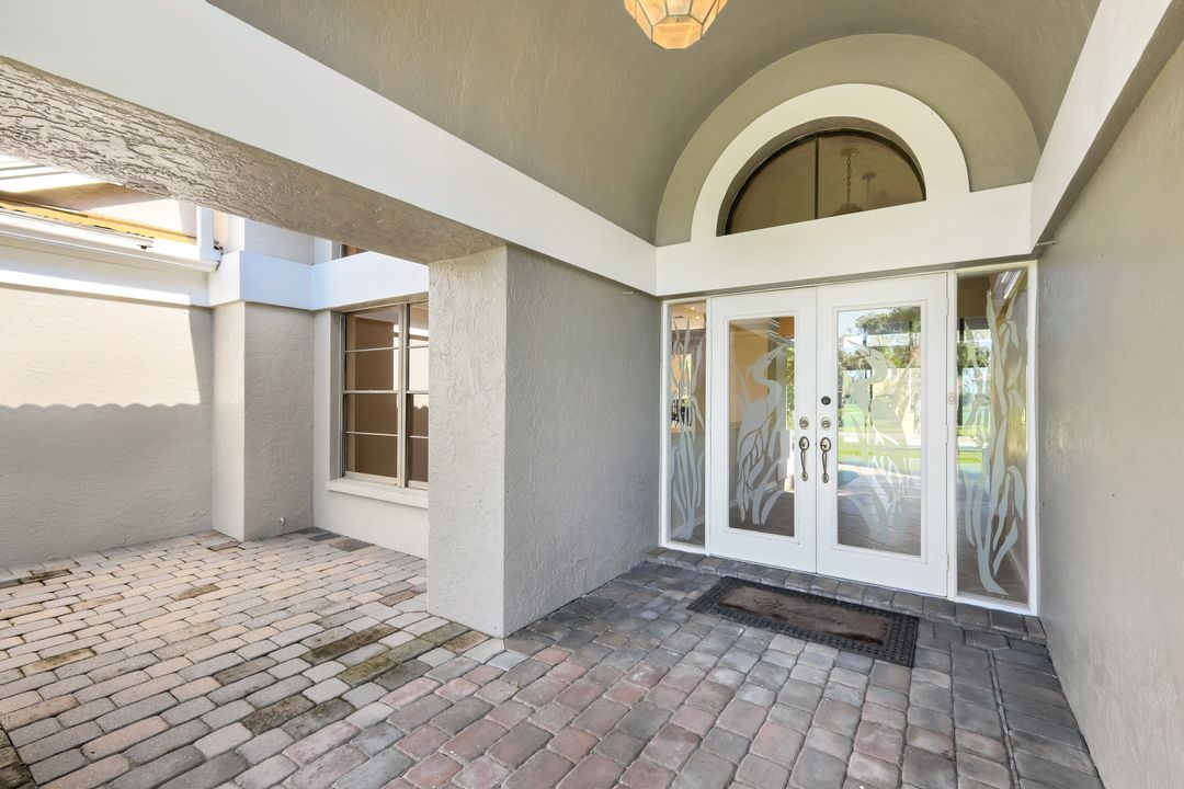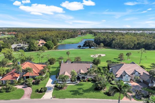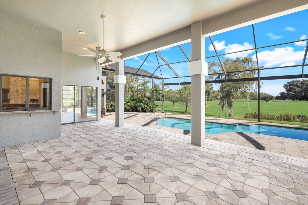 Watch the sunrise from the spectacular oversized lanai, featuring custom panoramic screening that provides an unobstructed golf course and water view. Enjoy true privacy with no other homes in sight from this stunning outdoor entertaining area. Inside, the home offers an open floor plan with 16-foot ceilings, elegant travertine tile flooring, and abundant natural light throughout. The layout is ideal for entertaining, with a large eat-in kitchen counter, pass-through kitchen windows to the lanai, and a flexible dining area that can serve multiple purposes. The expansive primary suite is a private retreat, complete with a glass fireplace, direct lanai access, and even a small kitchenette—perfect for your first cup of coffee in the morning. The luxurious primary bath features a clawfoot tub, marble countertops, custom vanity, and a spacious walk-in shower. Additional highlights include a den/office with custom built-ins, newer stainless steel appliances, dual AC units, a new gutter guard system, and an oversized two-car garage. Set on one of the largest lots in the neighborhood, the home sits right on the 18th fairway and is just a short walk to all that Wildcat Run has to offer — clubhouse dining, grill room, golf, pickleball, tennis, bocce, and the fitness center. See it in person — photos simply don’t do it justice!