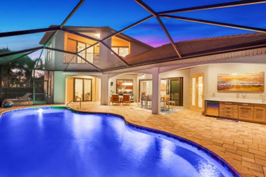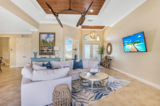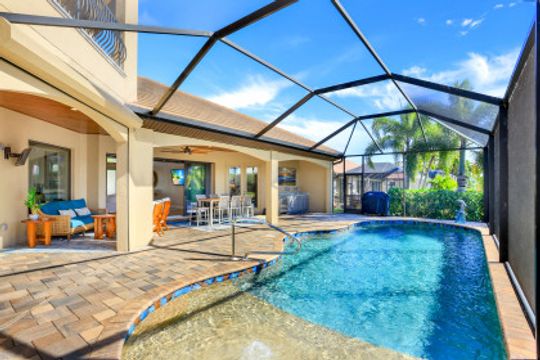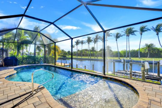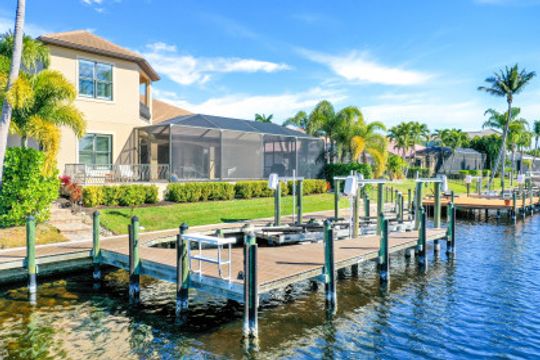 Southern Exposure, Direct Sailboat Access plus water and Private Nature Preserve Views! Don’t let this one pass you by! This home has been extensively updated and is in virtually New Condition! Located in the Prestigious Boating Community of Cape Harbour, 3Bed, 3Baths and Study, salt water heated pool and large private Lanai for entertaining or peaceful retreat. Large private dock with 25,000# lift, AC’d tackle room, a short boat ride to entertainment, restaurants and fishing in the Gulf of Mexico. Recently updated designer finishes throughout, including ceiling fans, custom master bedroom closets & pantry, LED lighting, remodeled Master Bath and Study. First floor features a private Master Suite with sitting area, Study, Greatroom which is open to the Kitchen with large island and a private bedroom with bath and access to the lanai. Upstairs is a large Family room, 3rd bedroom with full bath and private Balcony overlooking the Preserve! Other features include, insulated Oversized 3 Car Garage with AC, Hurricane windows and doors, Standby Generator, upgraded landscaping and lights, surveillance and security system! Home is ready for new owners and available immediately.