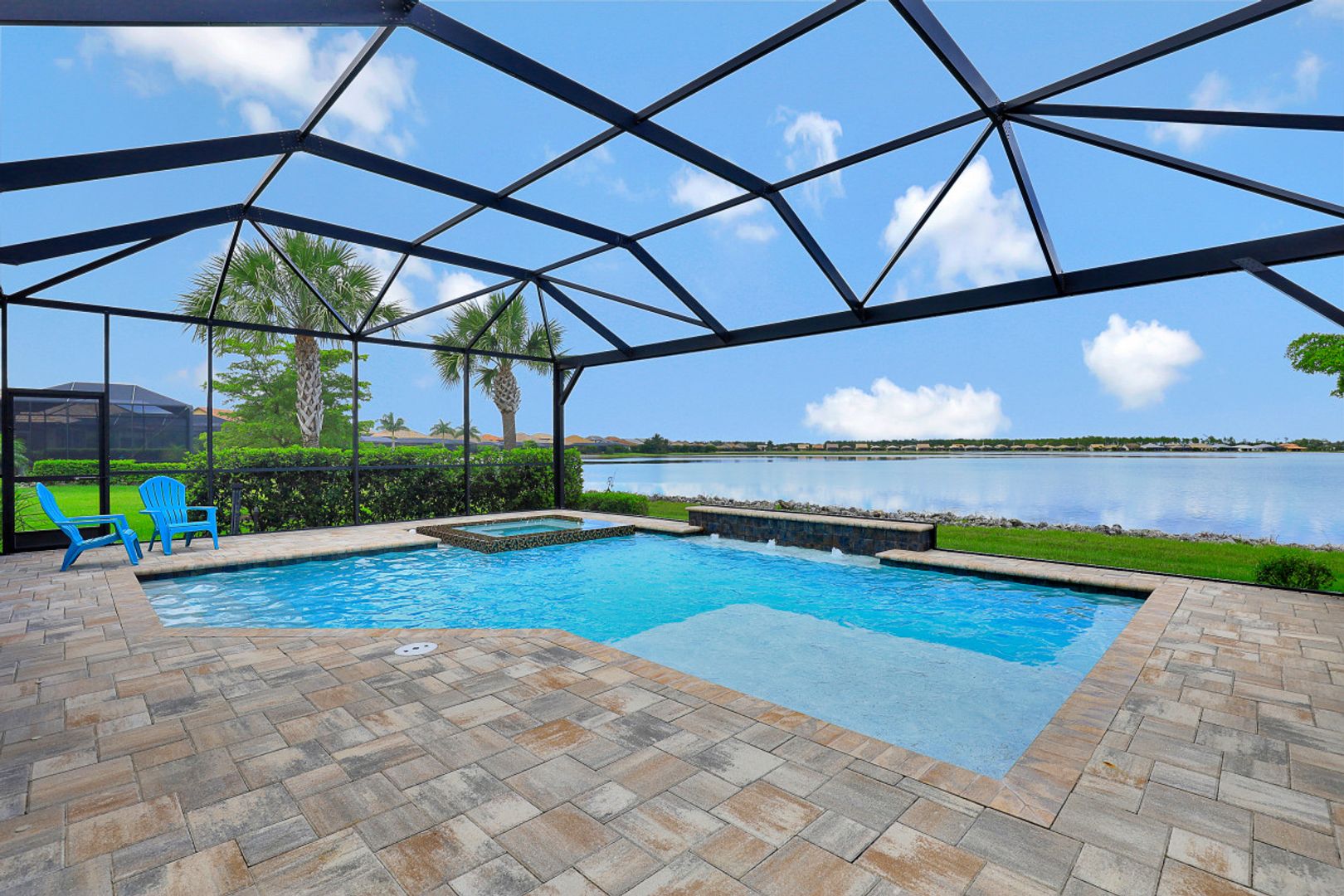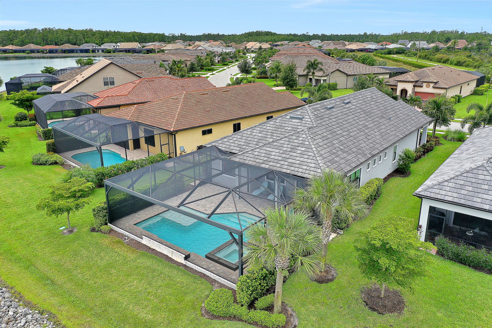 WATERFRONT views galore! Enjoy an active, outdoor lifestyle in paradise- award winning community of CORKSCREW SHORES. Popular Summerwood model features 3 bed, 2ba plus office/den & sunroom. Spectacular outdoor oasis where entertaining from the open floor plan welcomes you through the sliding glass doors to the screened-in outdoor kitchen & pool area. The oversized lanai offers a custom, heated saltwater pool & overflow spa, bubbler wall, colored lights & unobstructed water views. Gourmet kitchen boasts a large island, stainless steel appls, gleaming quartz countertops, undercabinet lighting & pantry. Impact windows & doors, motorized hurricane shutters. Quality upgrades inc:designer lighting/fans, custom blinds, 24X24 tile, crown molding, 4 ft garage extension & app controlled sec system. Amenity island surrounded by 240 acre lake. Zero entry resort style pool & spa w/ fountains, indoor/outdoor restaurant with full bar. Fitness & movement studio. Kayak/canoe launch, fishing pier, 5 Har-Tru tennis courts, bocce & pickleball. Easy to I-75, Airport, FGCU & Naples/Fort Myers Beach/Sanibel beaches! Dog Friendly Community w/sidewalks! No CDD & low HOA fees.