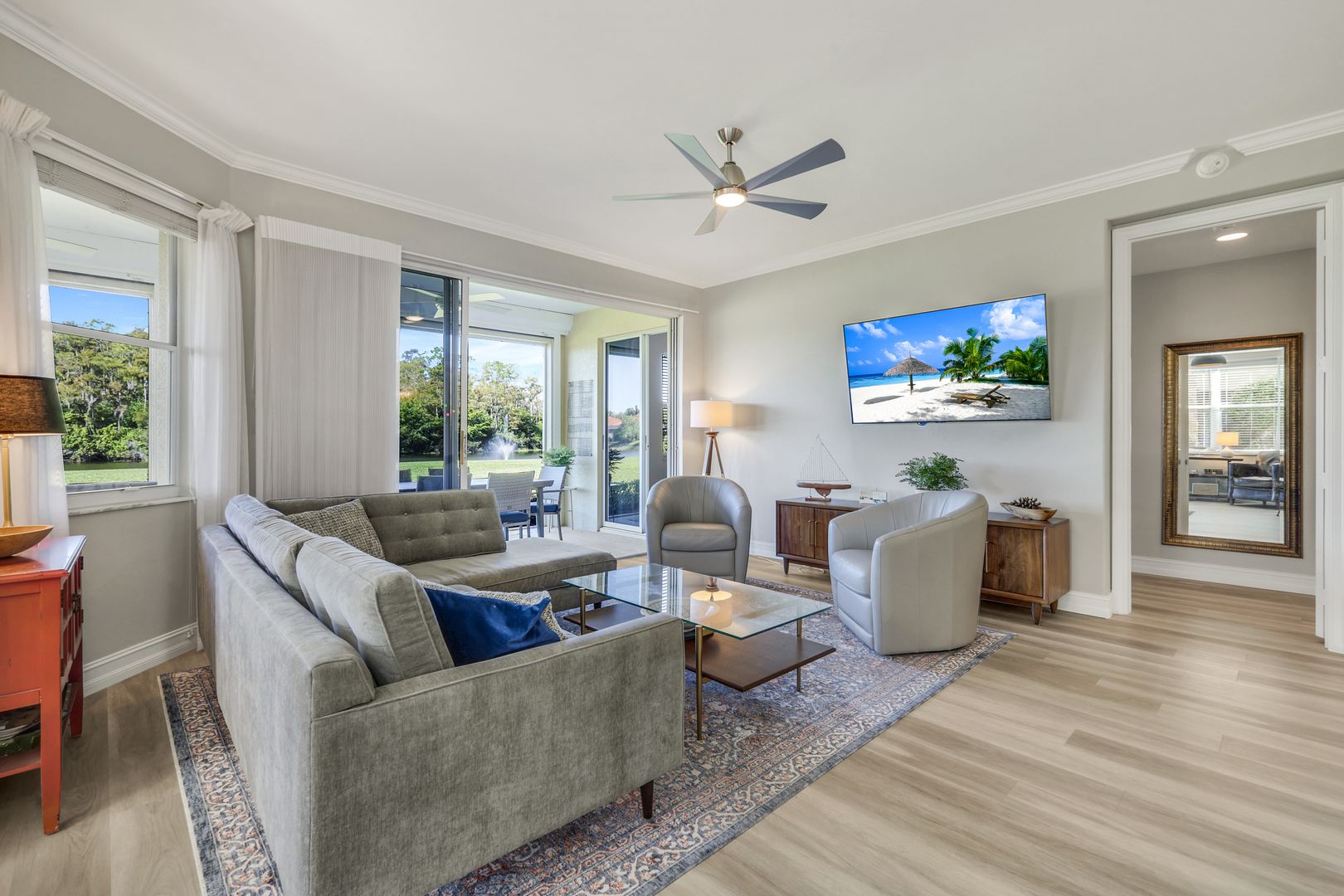 Welcome to luxury living at its finest in this beautifully updated condo in the prestigious Wildcat Run Golf & Country Club. This spacious first-floor residence features 3 bedrooms, 2 bathrooms, a 2-car garage, quartz countertops, stainless steel appliances, and a blend of luxury vinyl and carpet flooring. Enjoy peaceful lake views right from the comfort of your home. Renovated just two years ago, this condo is in pristine, move-in-ready condition and includes Storm Smart electric hurricane shutters for added peace of mind. Wildcat Run offers exceptional amenities, including an Arnold Palmer Signature Golf Course, tennis, pickleball, bocce, a fitness center, and two on-site restaurants. Ideally located just minutes from premier shopping, dining, and the airport, this home is perfect as a full-time residence or a vacation escape. Don’t miss your chance to own this piece of paradise in Wildcat Run!