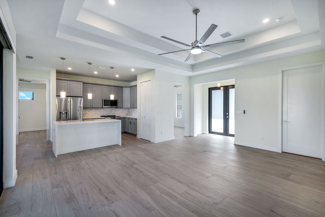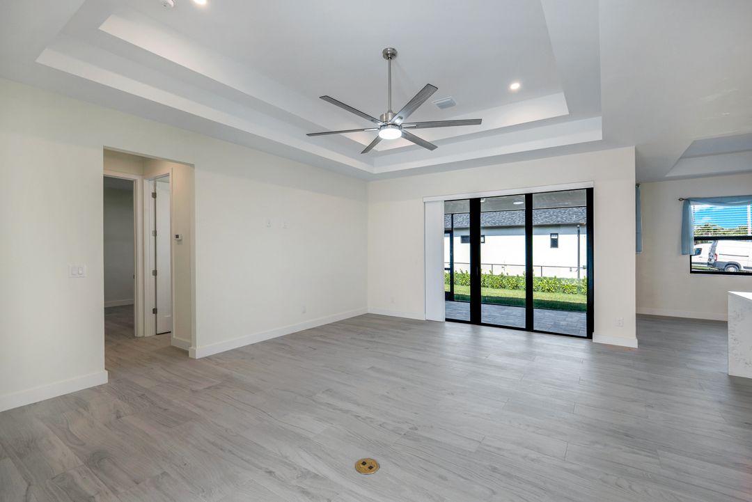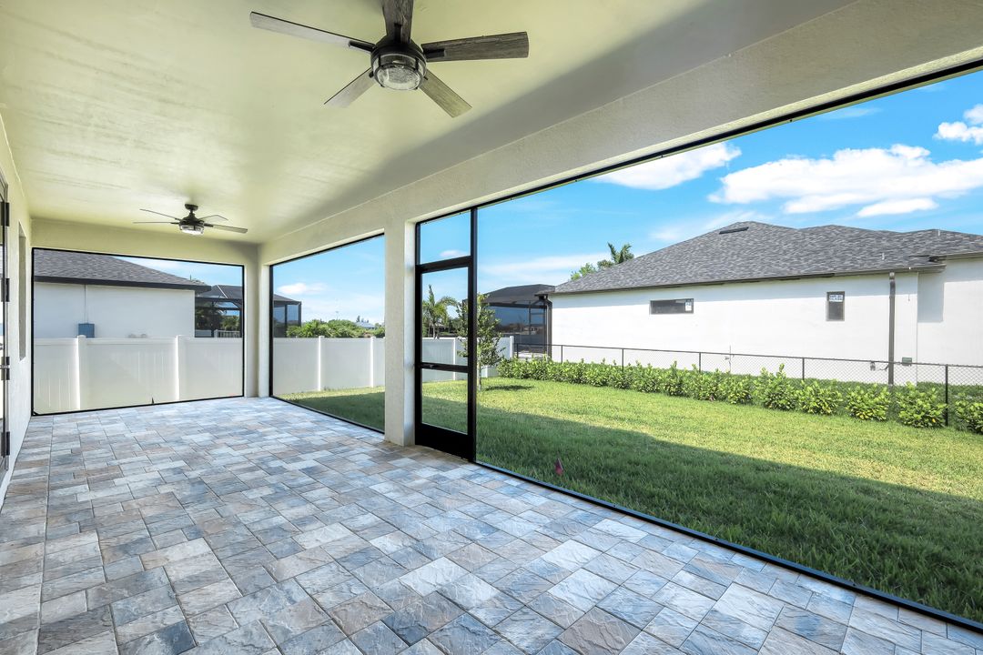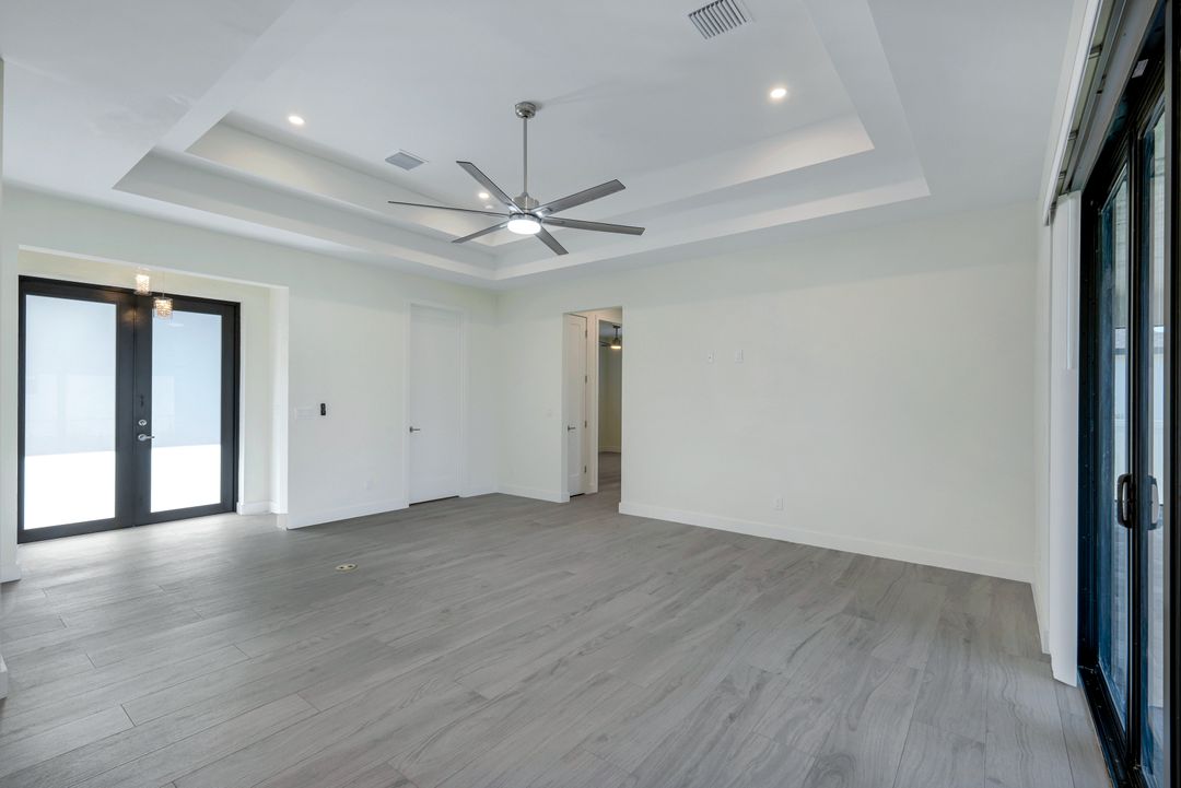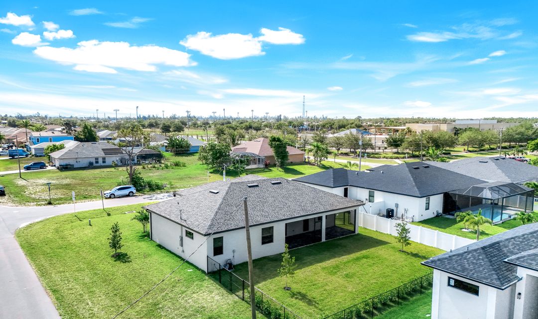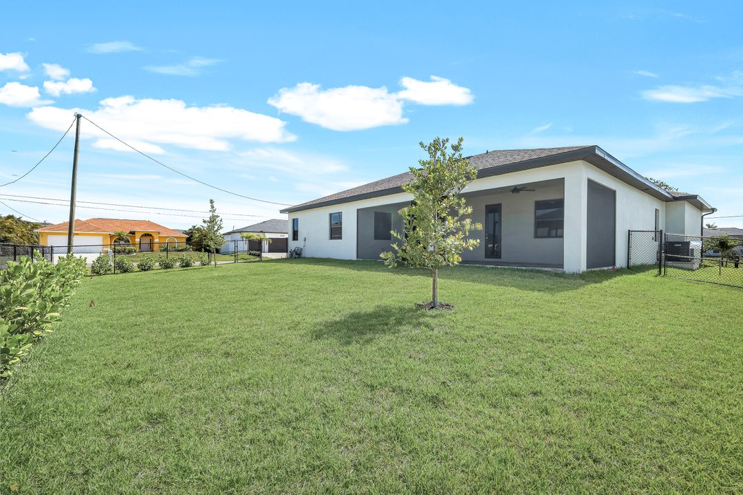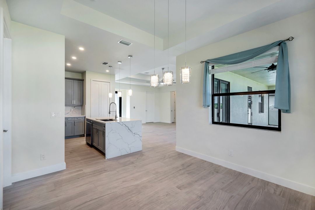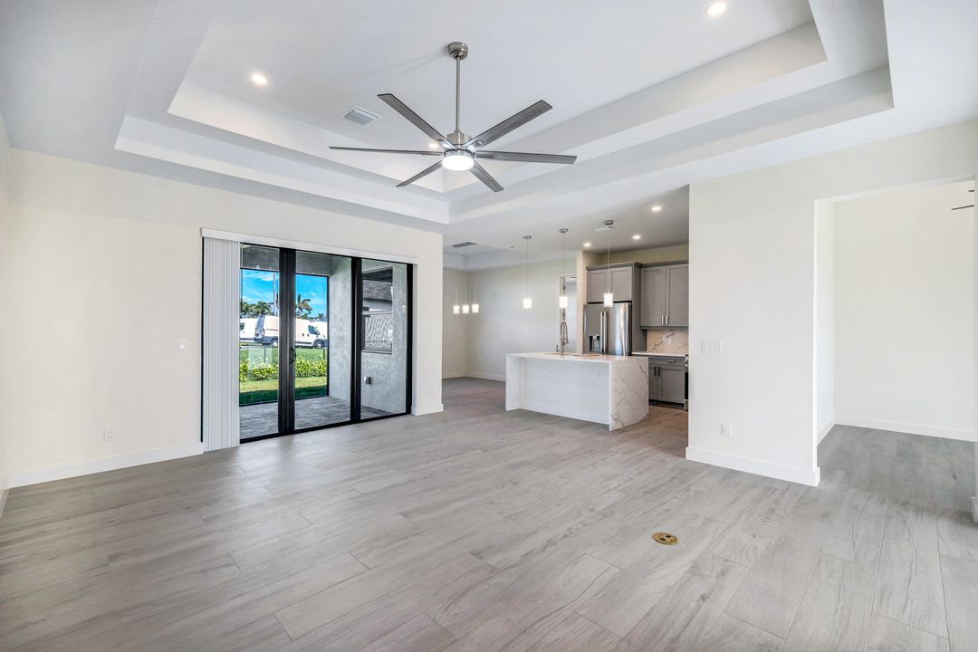 New Construction – This Custom-Built Lakeview Home is situated on an Oversized Corner Lot with 3 Bedrooms, Den, 2 Baths, 1900 sq ft of Living Area, and a 3-Car Garage. You will Love the Chefs Kitchen with Gorgeous Quartz Countertops and Full Quartz Backsplash, Waterfall Countertop Island, Soft-close Wood Cabinets, Luxury LG Stainless Steel Appliances including Craft Ice French door Refrigerator, and a Pantry. The Spacious Owners Suite Boasts a Tray Ceiling, Custom His & Hers Walk-in Closets, Dual Sink Vanity, and Large Walk-in Shower. Added Cabinets and Countertop in the Laundry room provide Extra Storage and Enhanced Functionality of the space. There is even an Electrical Outlet in the Linen Closet to keep your rechargeable vacuum at the ready. The Extended Lanai is the Perfect Place to Relax and Enjoy the Lakeview and the Fenced Backyard is Ideal for Children and Pets. This Home also Features Volume ceilings, 8-foot doors, Multiple Tray ceilings, Upgraded Plank Tile flooring throughout, Custom Closets in all Bedrooms, Recessed lights, Impact Windows, Window Coverings, Epoxy Garage Floor, Black Chain Link Fence, Paver Driveway-Walkway-Lanai, and Premium Landscaping. The Living room, All Bedrooms, Den, and Lanai are equipped with Ceiling Fans. Central Water, Sewer and Irrigation are already in place. Conveniently Located near Jim Jeffers Park and the Burnt Store Boat Ramp, and close to Restaurants, Shopping and Schools, with easy access to Fort Myers RSW International Airport and the Punta Gorda Airport.