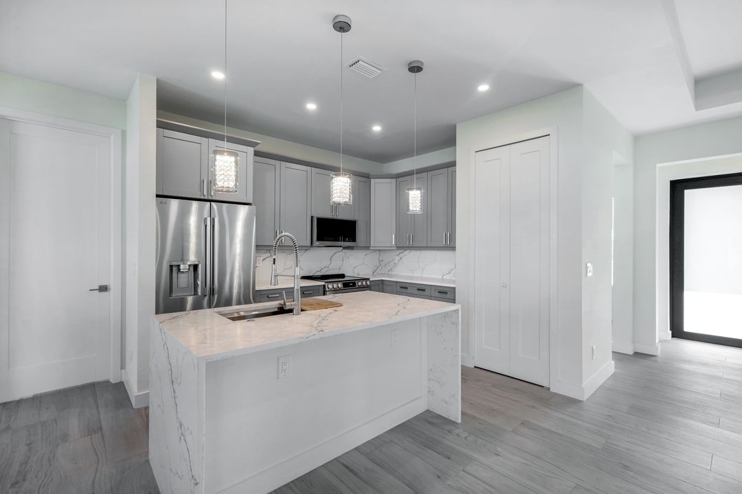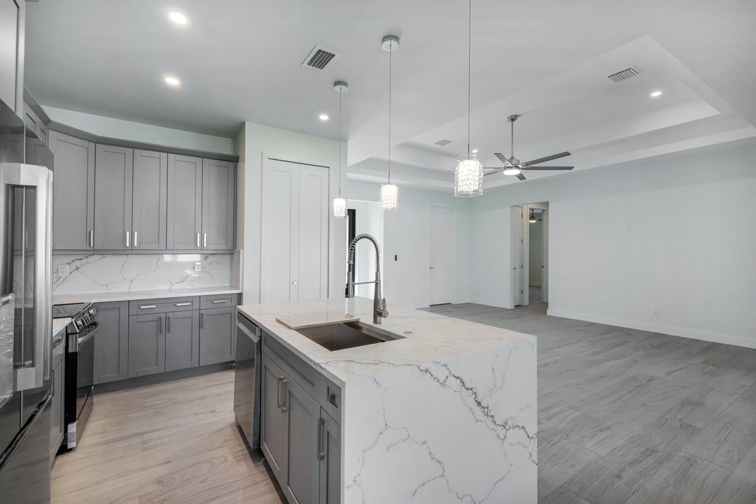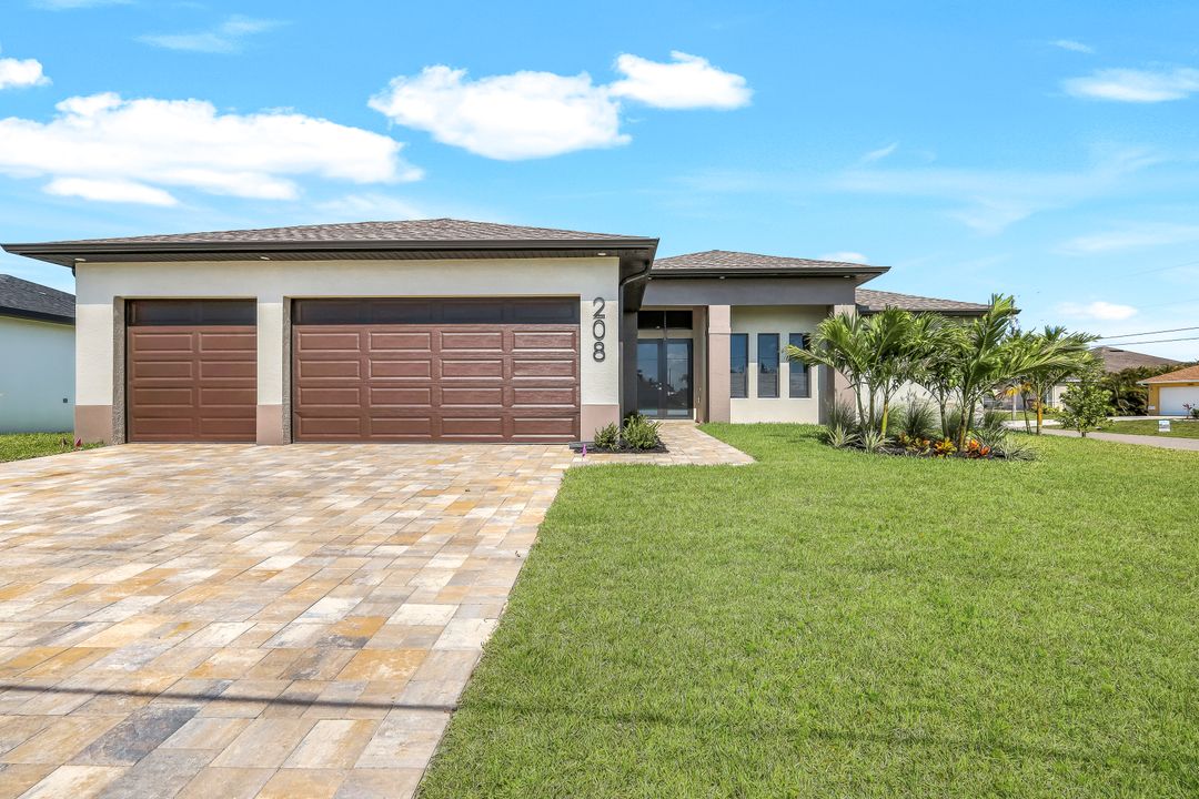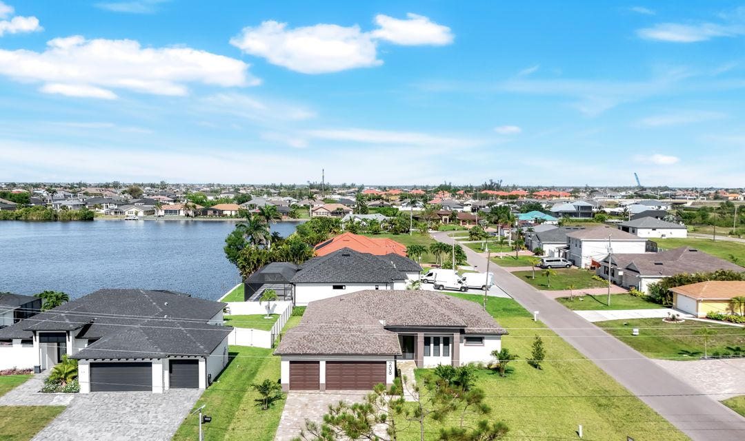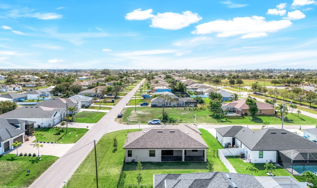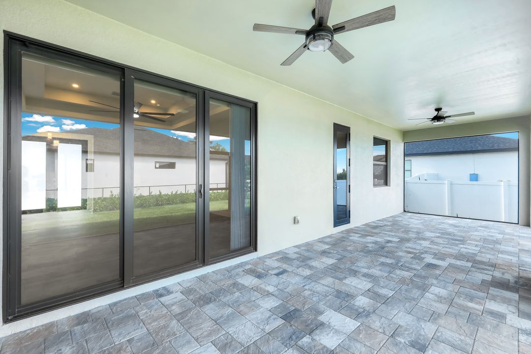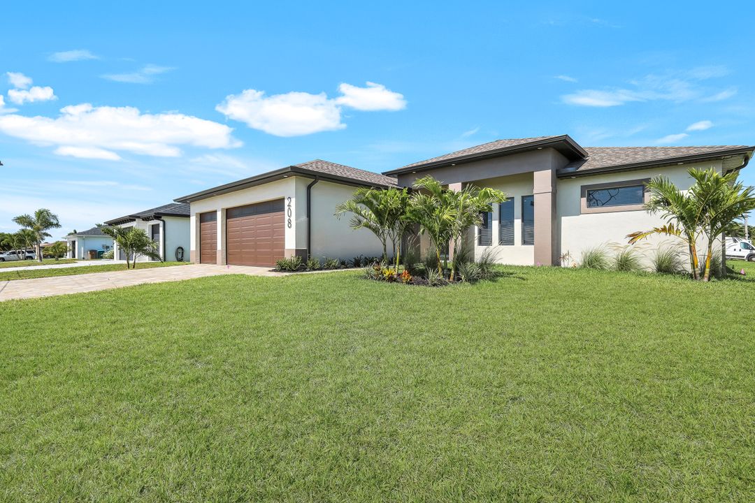 New Construction – This Custom-Built Lakeview Home is situated on an Oversized Corner Lot with 3 Bedrooms, Den, 2 Baths, 1900 sq ft of Living Area, and a 3-Car Garage. You will Love the Chefs Kitchen with Gorgeous Quartz Countertops and Full Quartz Backsplash, Waterfall Countertop Island, Soft-close Wood Cabinets, Luxury LG Stainless Steel Appliances including Craft Ice French door Refrigerator, and a Pantry. The Spacious Owners Suite Boasts a Tray Ceiling, Custom His & Hers Walk-in Closets, Dual Sink Vanity, and Large Walk-in Shower. Added Cabinets and Countertop in the Laundry room provide Extra Storage and Enhanced Functionality of the space. There is even an Electrical Outlet in the Linen Closet to keep your rechargeable vacuum at the ready. The Extended Lanai is the Perfect Place to Relax and Enjoy the Lakeview and the Fenced Backyard is Ideal for Children and Pets. This Home also Features Volume ceilings, 8-foot doors, Multiple Tray ceilings, Upgraded Plank Tile flooring throughout, Custom Closets in all Bedrooms, Recessed lights, Impact Windows, Window Coverings, Epoxy Garage Floor, Black Chain Link Fence, Paver Driveway-Walkway-Lanai, and Premium Landscaping. The Living room, All Bedrooms, Den, and Lanai are equipped with Ceiling Fans. Central Water, Sewer and Irrigation are already in place. Conveniently Located near Jim Jeffers Park and the Burnt Store Boat Ramp, and close to Restaurants, Shopping and Schools, with easy access to Fort Myers RSW International Airport and the Punta Gorda Airport.