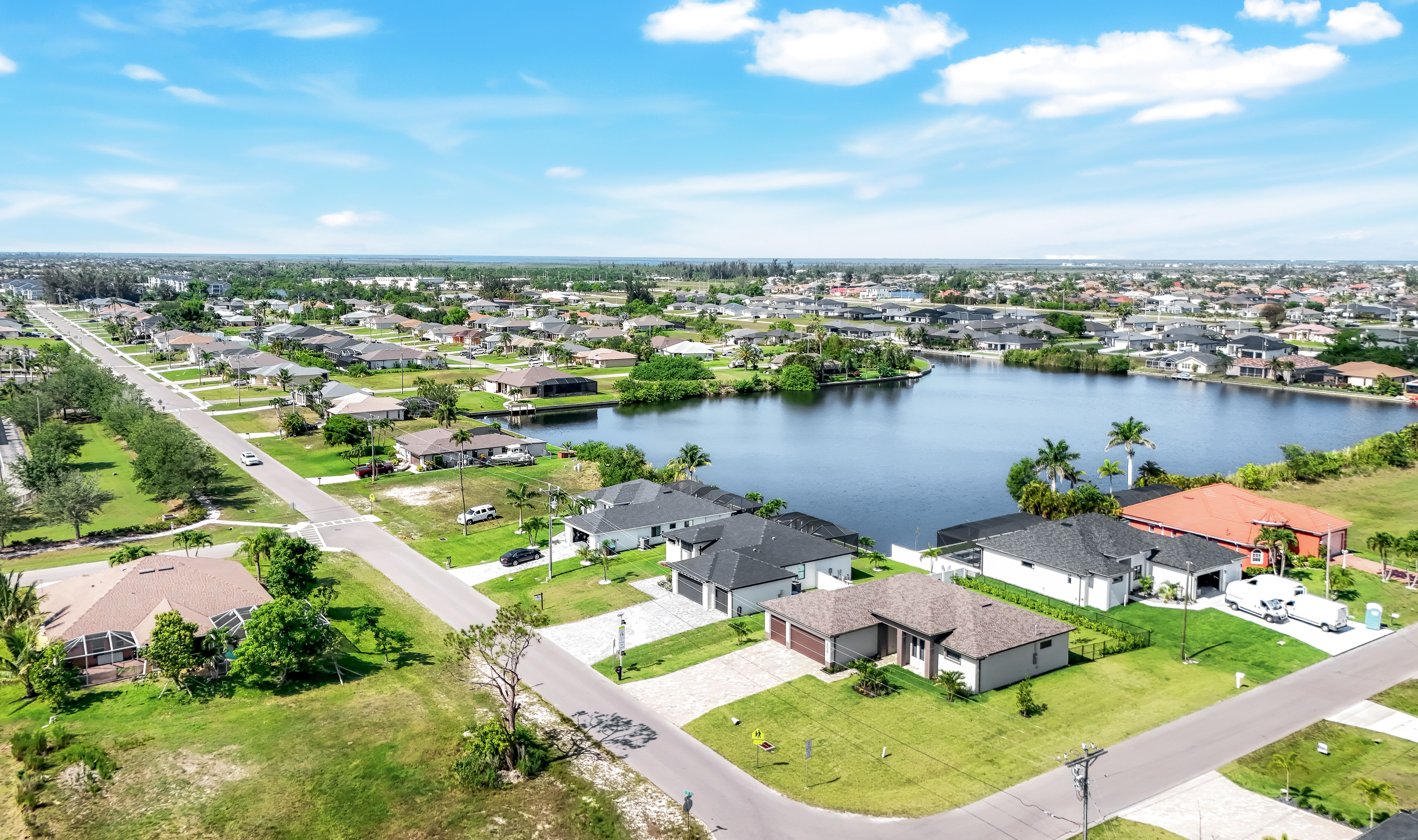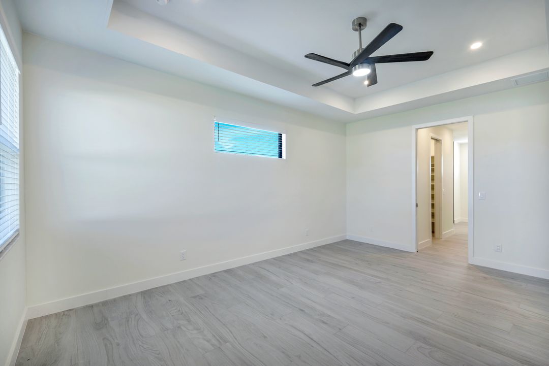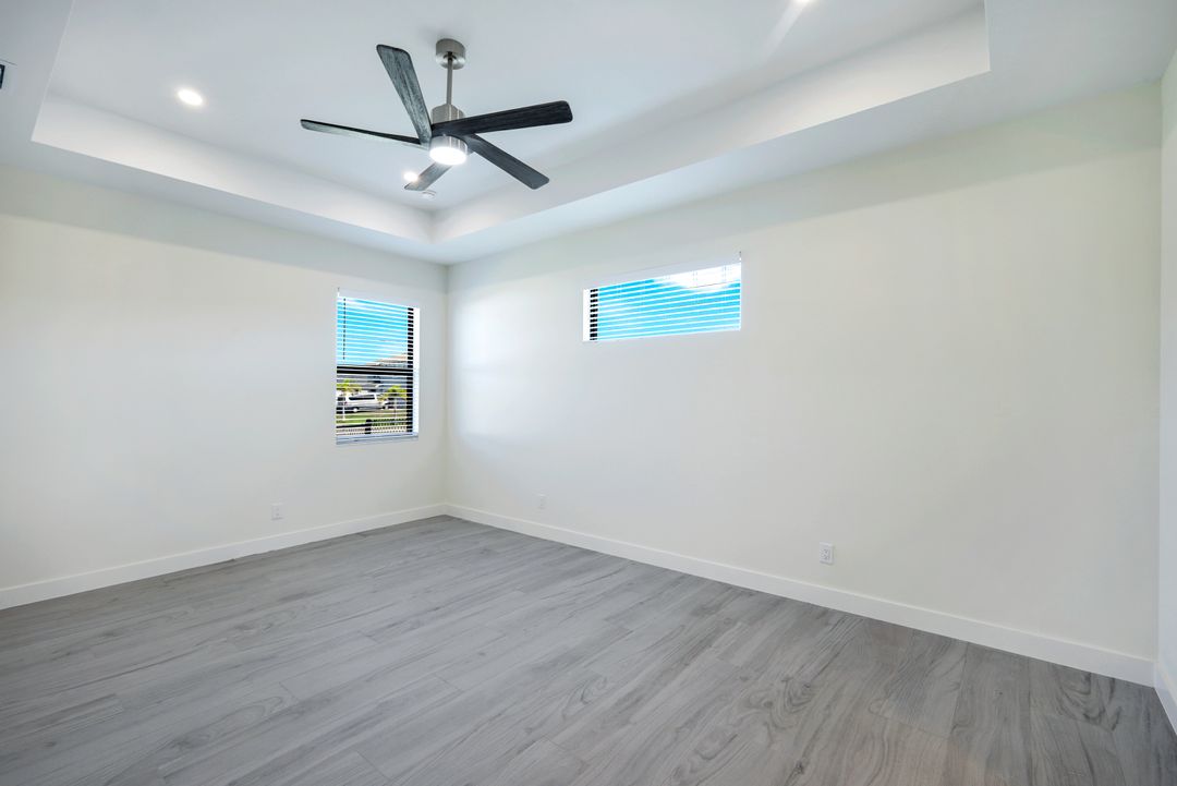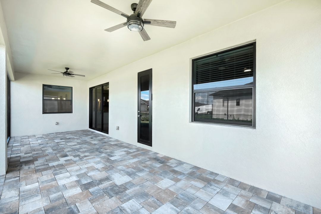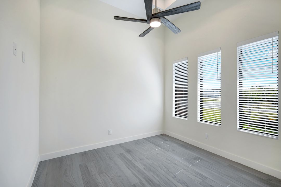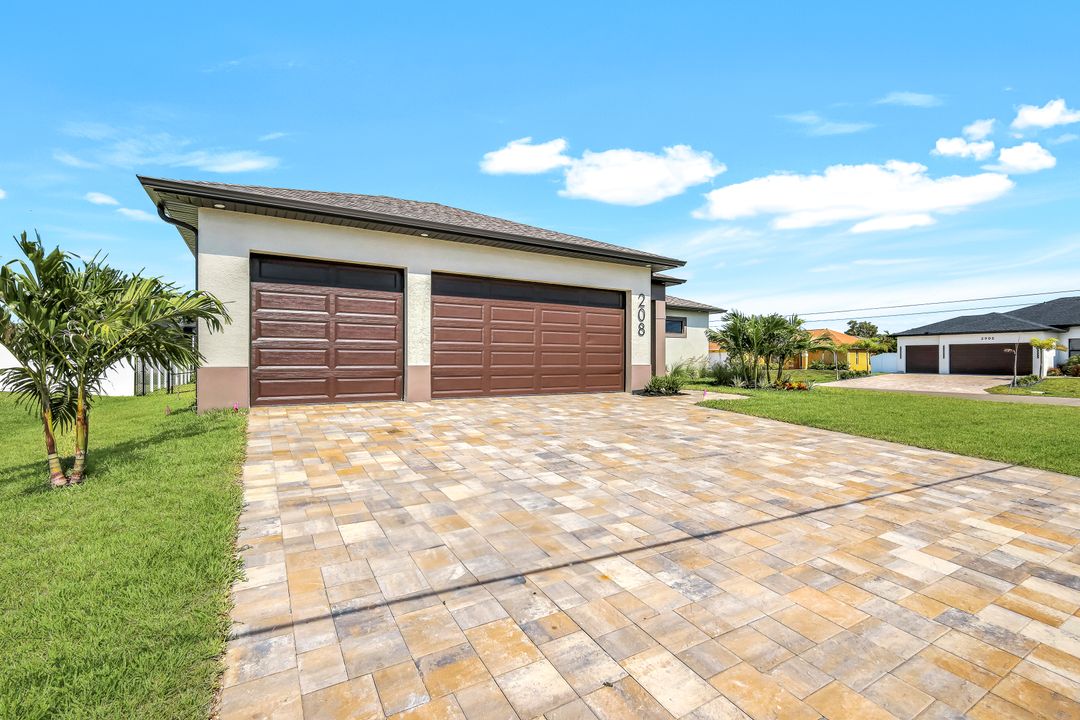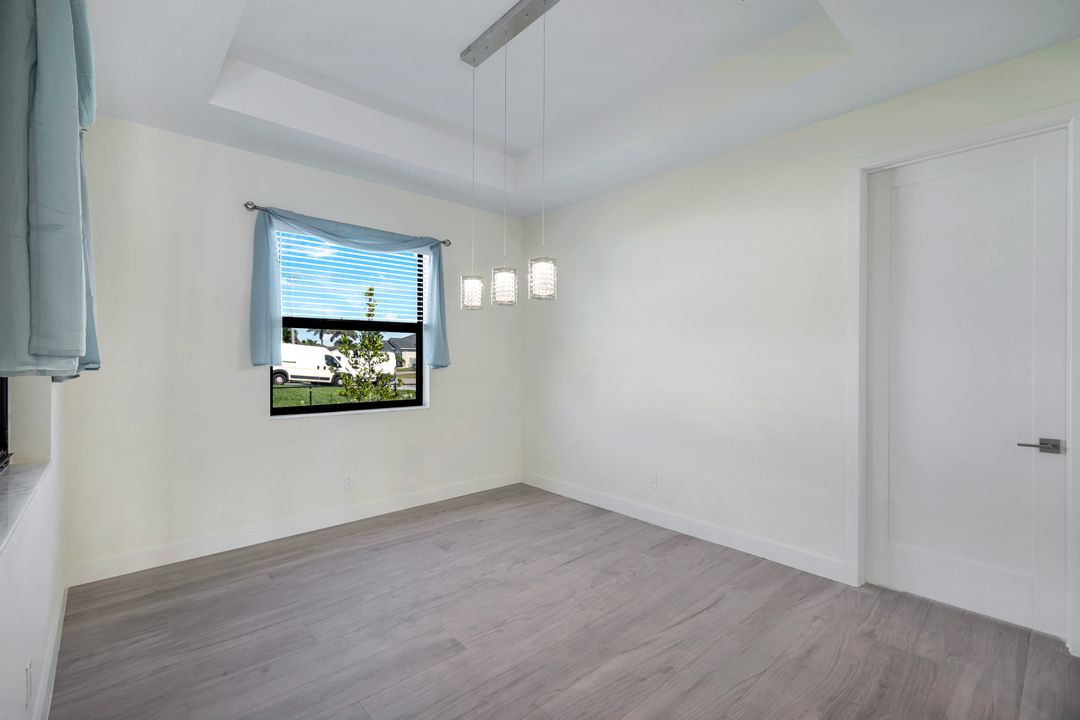 New Construction – This Custom-Built Lakeview Home is situated on an Oversized Corner Lot with 3 Bedrooms, Den, 2 Baths, 1900 sq ft of Living Area, and a 3-Car Garage. You will Love the Chefs Kitchen with Gorgeous Quartz Countertops and Full Quartz Backsplash, Waterfall Countertop Island, Soft-close Wood Cabinets, Luxury LG Stainless Steel Appliances including Craft Ice French door Refrigerator, and a Pantry. The Spacious Owners Suite Boasts a Tray Ceiling, Custom His & Hers Walk-in Closets, Dual Sink Vanity, and Large Walk-in Shower. Added Cabinets and Countertop in the Laundry room provide Extra Storage and Enhanced Functionality of the space. There is even an Electrical Outlet in the Linen Closet to keep your rechargeable vacuum at the ready. The Extended Lanai is the Perfect Place to Relax and Enjoy the Lakeview and the Fenced Backyard is Ideal for Children and Pets. This Home also Features Volume ceilings, 8-foot doors, Multiple Tray ceilings, Upgraded Plank Tile flooring throughout, Custom Closets in all Bedrooms, Recessed lights, Impact Windows, Window Coverings, Epoxy Garage Floor, Black Chain Link Fence, Paver Driveway-Walkway-Lanai, and Premium Landscaping. The Living room, All Bedrooms, Den, and Lanai are equipped with Ceiling Fans. Central Water, Sewer and Irrigation are already in place. Conveniently Located near Jim Jeffers Park and the Burnt Store Boat Ramp, and close to Restaurants, Shopping and Schools, with easy access to Fort Myers RSW International Airport and the Punta Gorda Airport.