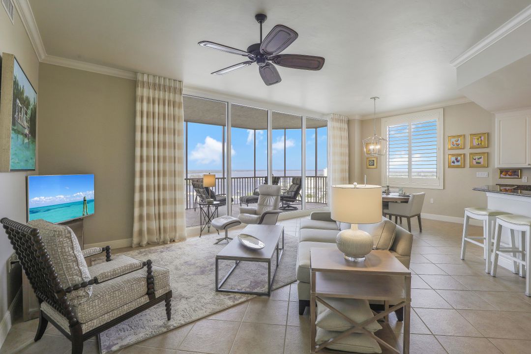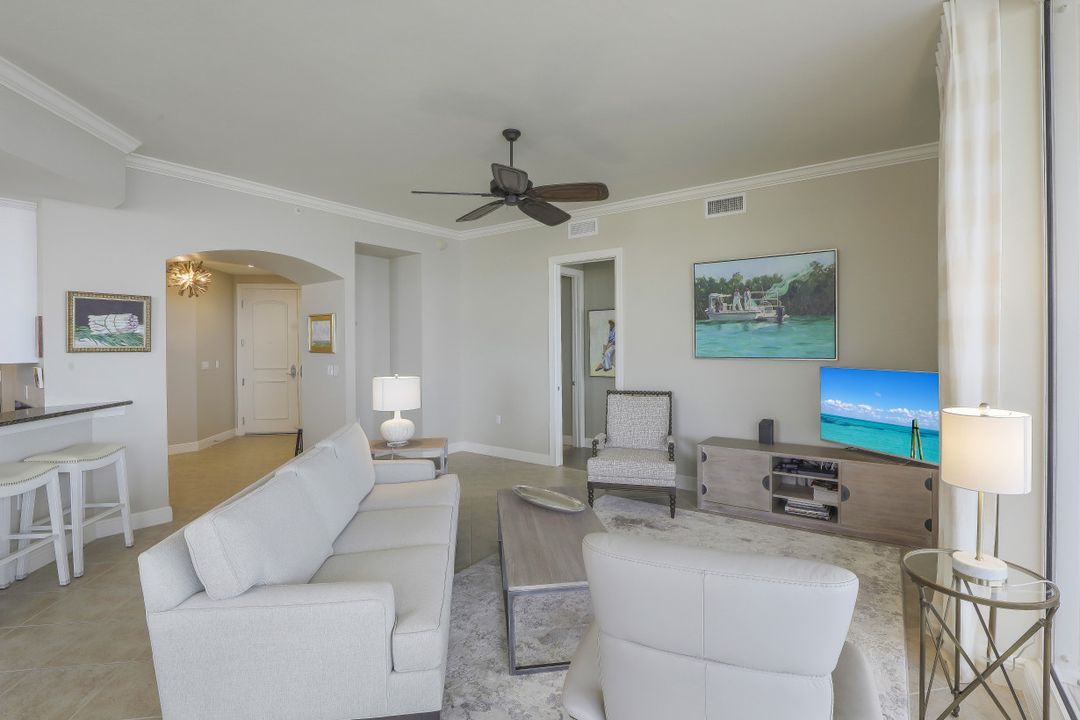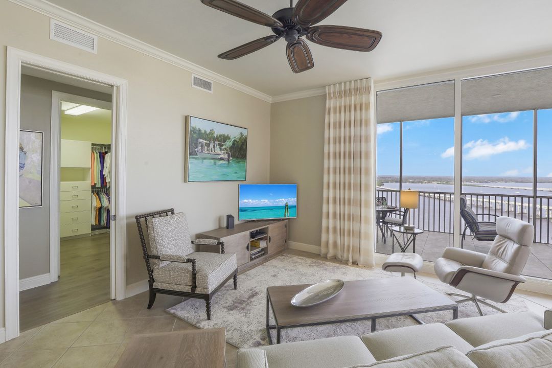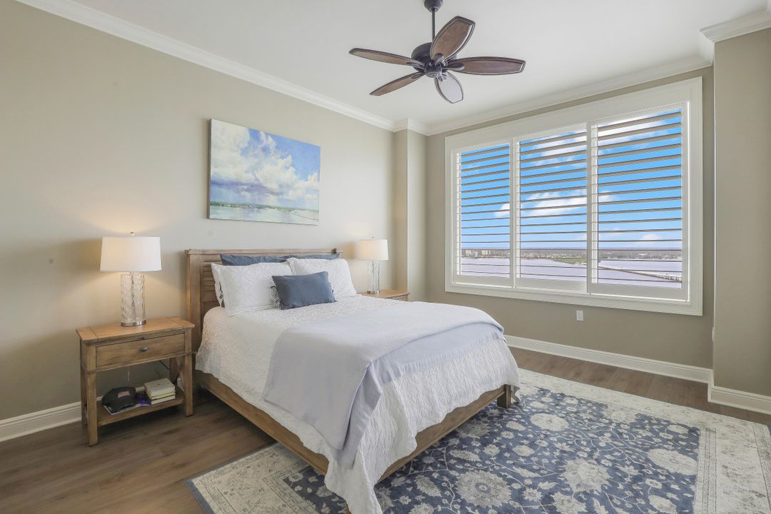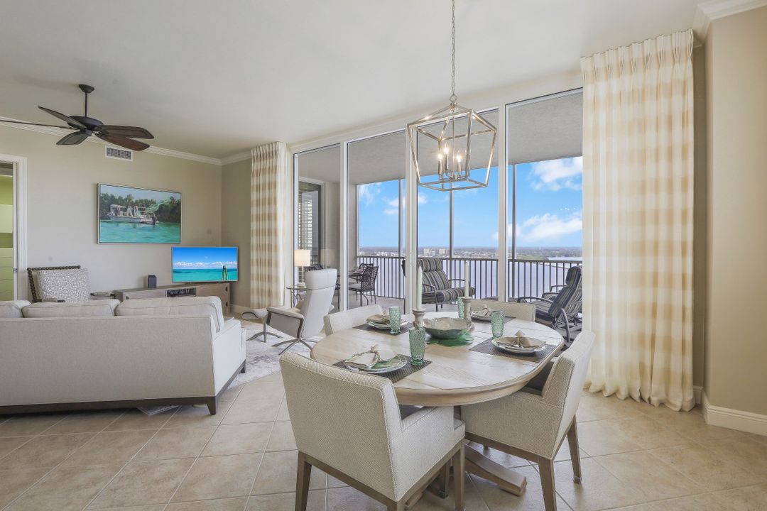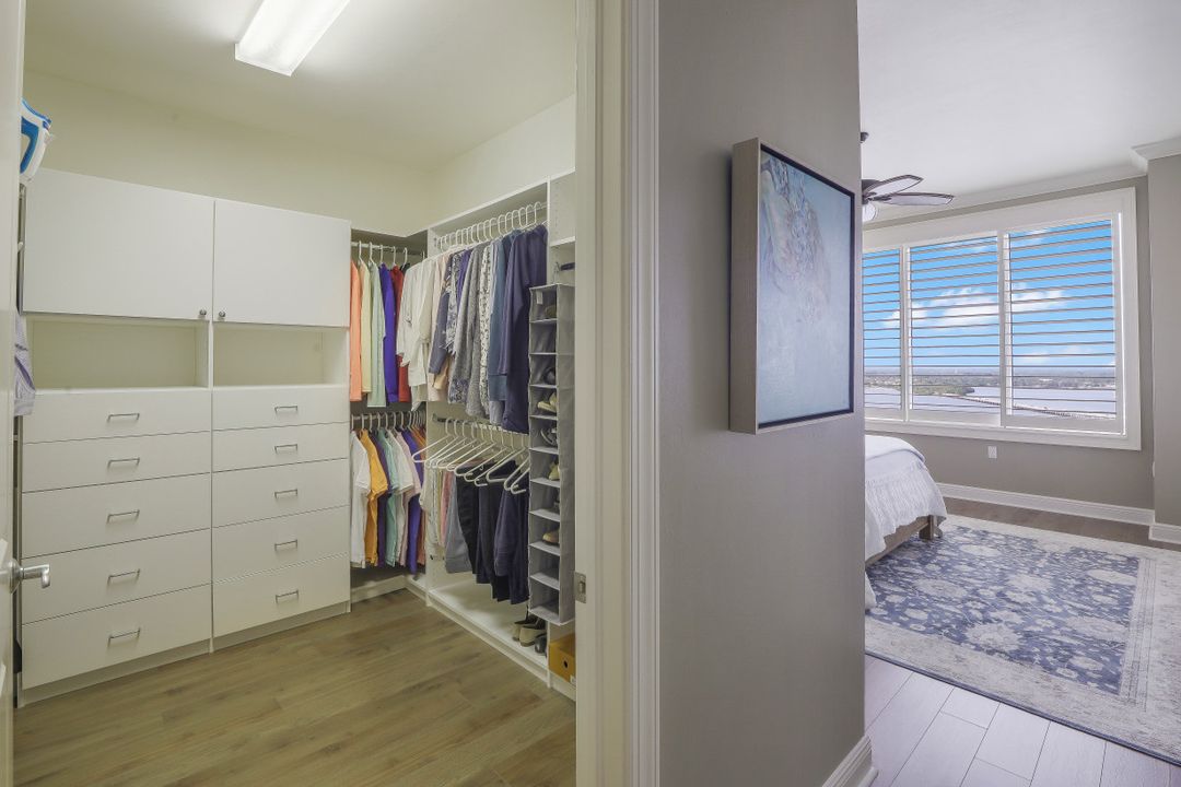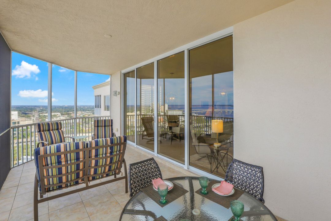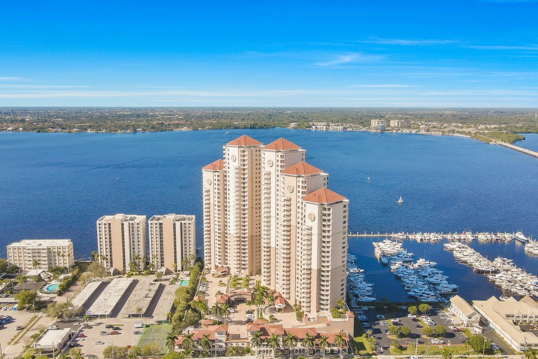 Move-in ready, rare ‘08 stack’ unit with higher ceilings offering privacy & sweeping vistas of the Caloosahatchee River await in this stunning, 25th floor residence! Elevators open to private foyer leading to a 3-Bed, 2-bath open floor plan. Features include Chefs kitchen, new bar area & beverage fridge (being installed 2/1), large walk-in pantry, stainless appliances, new dishwasher, granite and butcher block counter tops, 8 ft. solid wood doors & plantation shutters on all windows. Owner’s suite includes resort-style bath & large walk-in custom closet. New cabinet in living room niche (being installed 2/1). New bedroom floors. Laundry w/ built in cabinets & tub. Large lanai & rear balcony offer 300 degrees of magnificent views, sunsets, & sunrises. Impact glass throughout. Unit includes two enclosed parking spaces & storage unit. Newer AC. Amenities include resort pool, spa, exercise center, large gathering room, guest suites, on site staff, 24-hour security officer, premium cable, water, & many social activities. Within walking distance of historic downtown., Publix, fine dining, Edison-Ford Winter Estates, Florida Repertory Theatre, and Shopping. Florida Lifestyle at its best!