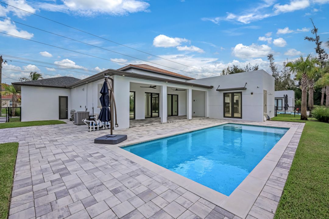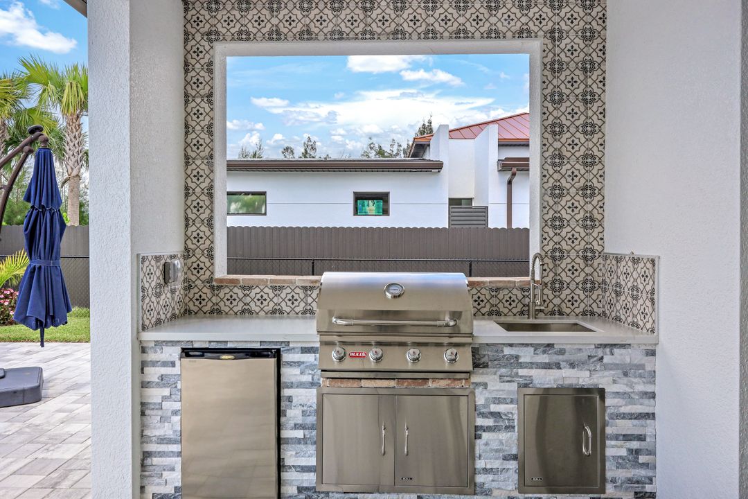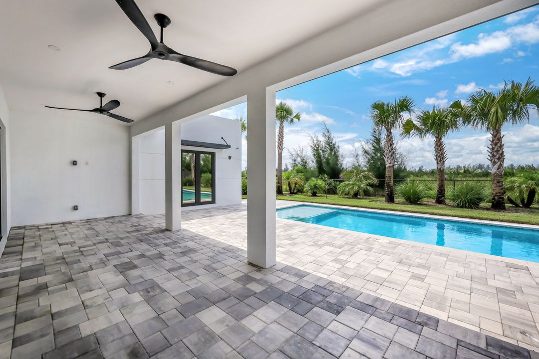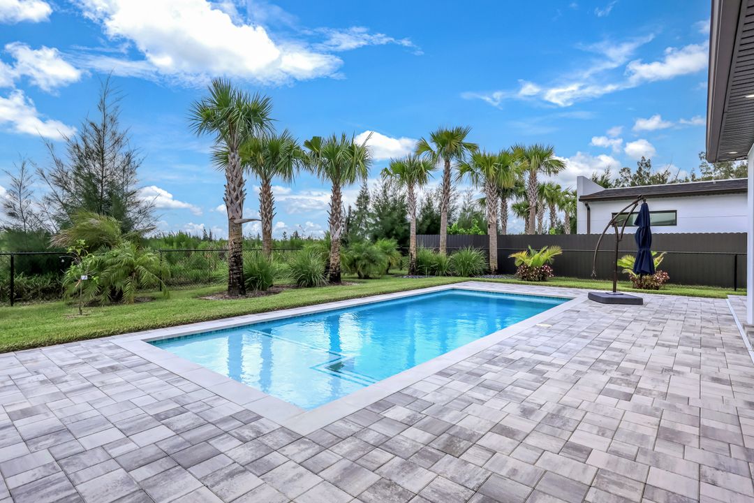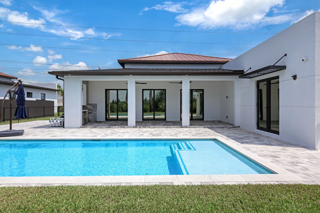 Southern Exposure, Newer Built Salt Water Pool Home! ASSUMABLE VA MORTGAGE AT 5.75% - Available to Veterans! Welcome to this stunning modern home in the up and coming and highly sought-after Pine Island Corridor. This exquisite residence features 3 spacious bedrooms and 2.5 well-appointed bathrooms, offering floating cabinets, quartz counters and high end fixtures. Pull into the oversized concrete driveway with a decorative transition, leading to a 3-car epoxy floor garage, plus additional parking pad. Inside, the home is designed with sophisticated touches such as straight stacked porcelain tile throughout, impressive 12 ft ceilings, and elegant brass Sputnik chandeliers, impact windows and doors throughout. The open space kitchen is a chef's dream, featuring a 12 ft quartz countertop island and backsplash, European-style cabinets with soft-close technology, 2 Whirlpool stainless steel ovens and a commercial grade hood vent. The living area includes a wine case feature wall with an art niche and an electric fireplace, creating a cozy and stylish atmosphere. One way solar tinted sliding glass doors lead to the oversized pool area, perfect for outdoor entertaining ensuring privacy as well as energy efficiency. Cool off in the electric heated crystal blue blue salt water pool with sun shelf surrounded by a fenced-in backyard beautifully landscaped with an assortment of pygmy dates, palm trees, flowers, and fruit trees. Additional outdoor amenities include oversized pavered sun pad, outdoor shower and a summer kitchen with a grill, refrigerator, and sink. Smart home features such as a Google entry, security system, along with LED lighting throughout, add to the modern conveniences of this home. Contemporary touches such as a decorative wine display, plantation shutters, remote controlled custom zebra blinds, built in custom closets and floating cabinets make this home is a perfect retreat for those who appreciate modern luxury and enjoy the Florida lifestyle. Head down to the Pine Island Corridor for a plethora of dining, shopping and entertainment options. City Water and Sewer in Place! You deserve to enjoy everything SWFL has to offer - beautiful weather year-round, world class fishing, golfing, kayaking, paddle boarding, tubing, jet ski or just relax in your very own tropical paradise! Call and schedule a private viewing today!