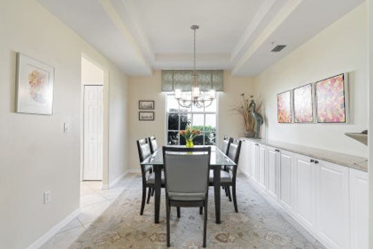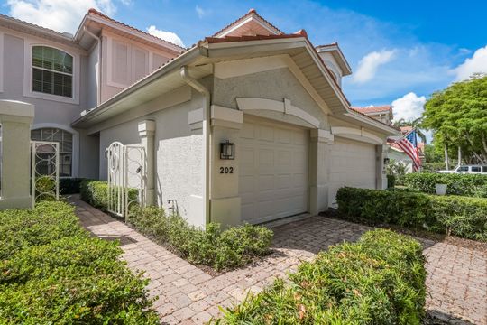 LOCATION IS EVERYTHING—and this exceptional first-floor coach home captures it beautifully, offering sweeping LAKE & GOLF course vistas from within the heart of Pelican Marsh. Ideally positioned as a light-filled END-UNIT with prized SOUTHERN EXPOSURE, the home is bathed in natural sunlight from dawn to dusk. A private, garden-feel entry sets a welcoming tone, leading into a spacious 2BR+DEN/2BA floor plan. Walls of tall sliders and picture windows frame the panoramic views and enhance the open great-room layout, creating an airy feel and an easy connection to the outdoors. The oversized lanai serves as a front-row vantage point to the beautiful water and golf scenery of hole #16 of the Robert von Hagge designed-course, with multiple access points from the great room, kitchen, morning room, and owner’s suite—showcasing a true extension of the home for relaxed entertaining or enjoying sunset skies at twilight. Inside, the residence is appointed in a neutral palette, featuring custom upgrades including diagonally-laid tile flooring, a full-wall dining room buffet built-in, and designer mirrors and lighting in the bathrooms. Offered turnkey furnished, this home is ready for immediate enjoyment—simply bring your toothbrush! Complete with an attached garage, this stand-out property is the perfect setting to fully embrace the coveted Pelican Marsh lifestyle. At the Pelican Marsh community center you find a restaurant with casual al-fresco dining, six pickleball courts, eight tennis courts, bocce courts, a state-of-the-art fitness center with varied classes, and social spaces. Miles and miles of walking paths are the icing on the cake. Located off US 41 in North Naples, Pelican Marsh residents enjoy three access-controlled gated entrances to the east, south and west with close proximity to Vanderbilt Beach; Vanderbilt Galleria and its weekly Farmers Market or Mercato for Whole Foods shopping and a fun night out are just around the corner. Pelican Marsh Golf Club memberships are optional.