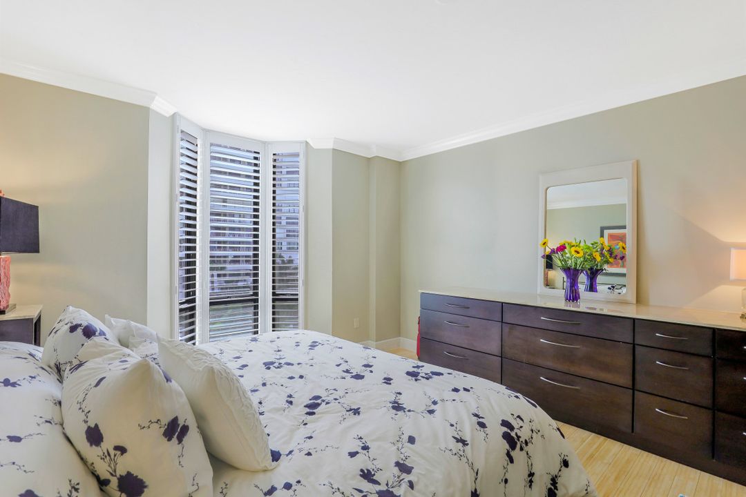 Beautifully maintained and updated with 1,664 square feet of living space with numerous upgrades. Freshly painted with 2 bedroom 2 ½ baths, custom lighting in ceilings, gourmet kitchen with Miele stainless steel appliances, wall oven, cook-top range and steaming oven. The wall in the kitchen has been opened up to enhance the view of the beach and to create a breakfast bar. Hunter Douglas window treatments and plantation shutters, recently updated guest bath with walk-in shower, large tile on the diagonal, wood floors in the bedrooms, walk-in closets, crown moldings, impact windows and sliders. Being sold furnished. Secure under building parking and large storage closet. The Duchess is a wonderful building and a short walk to the Marriott.