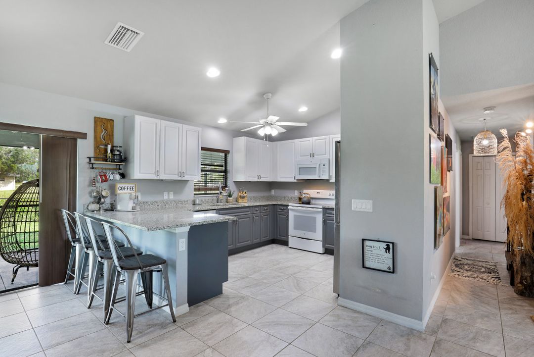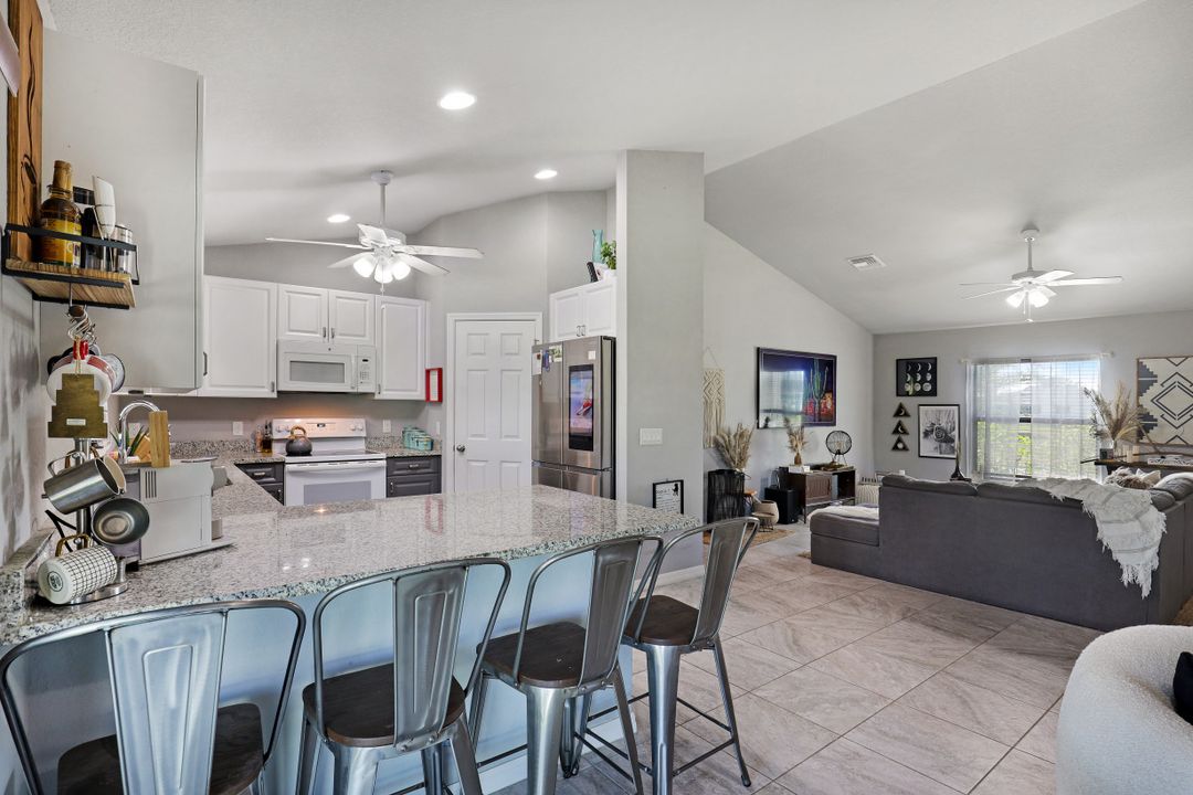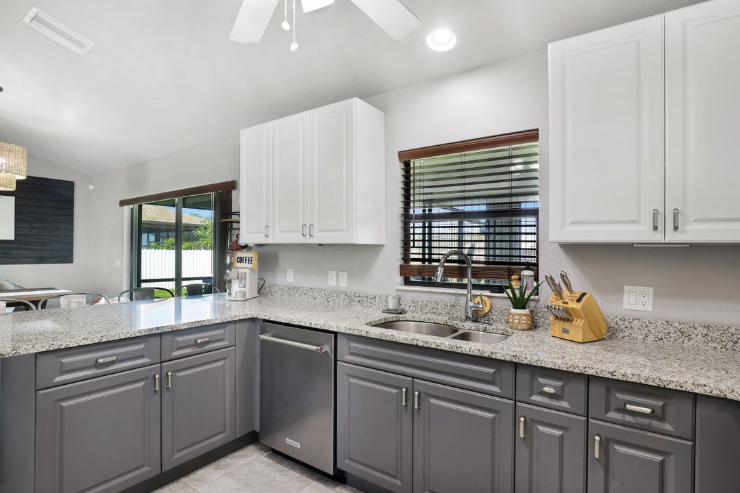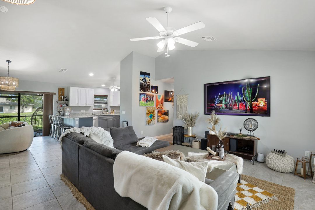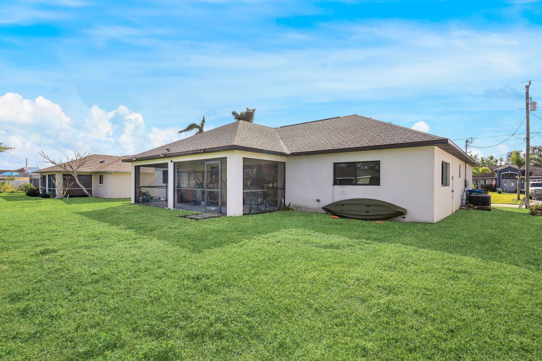 You will not want to miss this WATERFRONT 4BR, 2BA w/2 car garage home w/just under 1700 sqft of living space. This stylishly decorated home could be offered TURNKEY if you fall in love with the entire package! DON'T WAIT TO BUILD-better than new & built in 2019! Great room floor plan w/split bedrooms features tile throughout w/vaulted & trey ceilings, custom decorative wood work & MORE! The kitchen has granite countertops, double sink spacious pantry & Samsung Smart Fridge. The owners suite has a HUGE walk-in closet w/custom barn door & built-in shelves, dual sinks, leather textured granite & tiled shower. Screened lanai is HUGE w/direct access to the guest bathroom & overlooking the wide fresh water canal! Outdoor living area is partially fenced & features privacy hedge! Waterfront leads to fresh water lake system so launch your kayak, SUP & enjoy EVERYTHING SWFL has to offer! Nestled in established community close to the Pine Island corridor, downtown Fort Myers & Midpoint Bridge. Don't forget Cape Coral is just a short drive to white sandy beaches, world class fishing, boating, tubing & jet skiing! ASSESSMENTS ARE IN AND PAID! Schedule your private tour!
