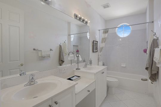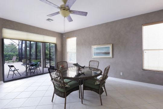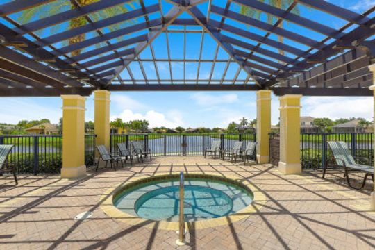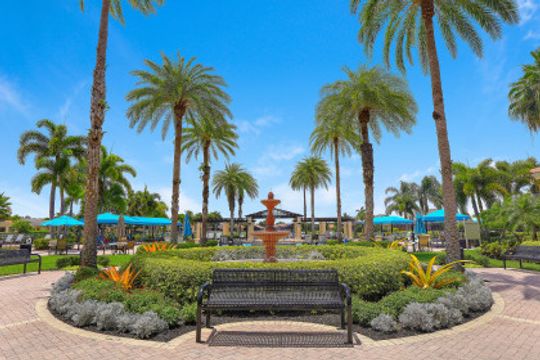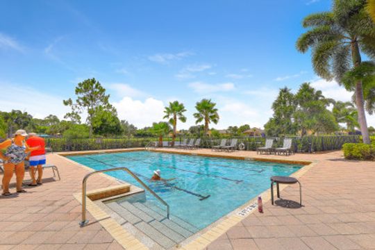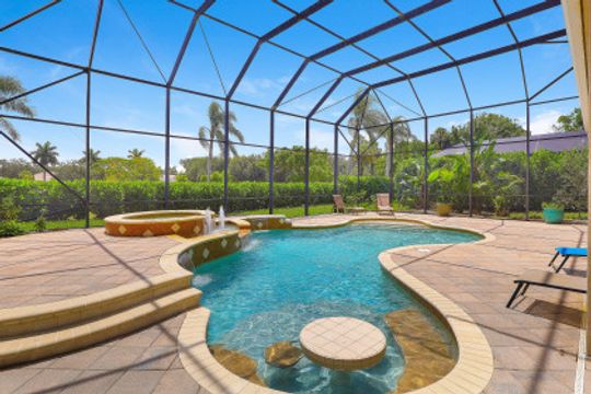 Golf course view without the golf course price!Sweeping views of the 18th green at Arrowhead Golf Course. in the 1,800 sq ft 2 Story screened enclosure you will find the most unique pool in Saturnia Lakes! This highly desirable, very spacious "Emerald" floor plan doesn't disappoint. This amazing 5 BR 3 BA, huge 3 car garage, pool home is fabulous for family and/or entertaining. Walk in the front door into soaring 2 story ceiling that allow tons of natural light. Move into your open custom kitchen with Stainless Steel Appliances and look out as your family and friends play in the huge custom heated pool, yes that is a swim up table in the pool and an in-water sun-shelf which is perfect for the kids play area or relax in your beach chair with a cocktail. The water feature adds to the luxurious feel.Walk out of your spacious master BR through the French Doors onto your huge balcony and enjoy your pool/golf course view. The bonus sitting, loft area is a great bonus space. Look at that dual sink for your guests/kids. Recessed lighting throughout. No homes behind you. Want to hang out with other family or friends? Go to your HUGE Clubhouse and enjoy the amenities. Don't miss it!
