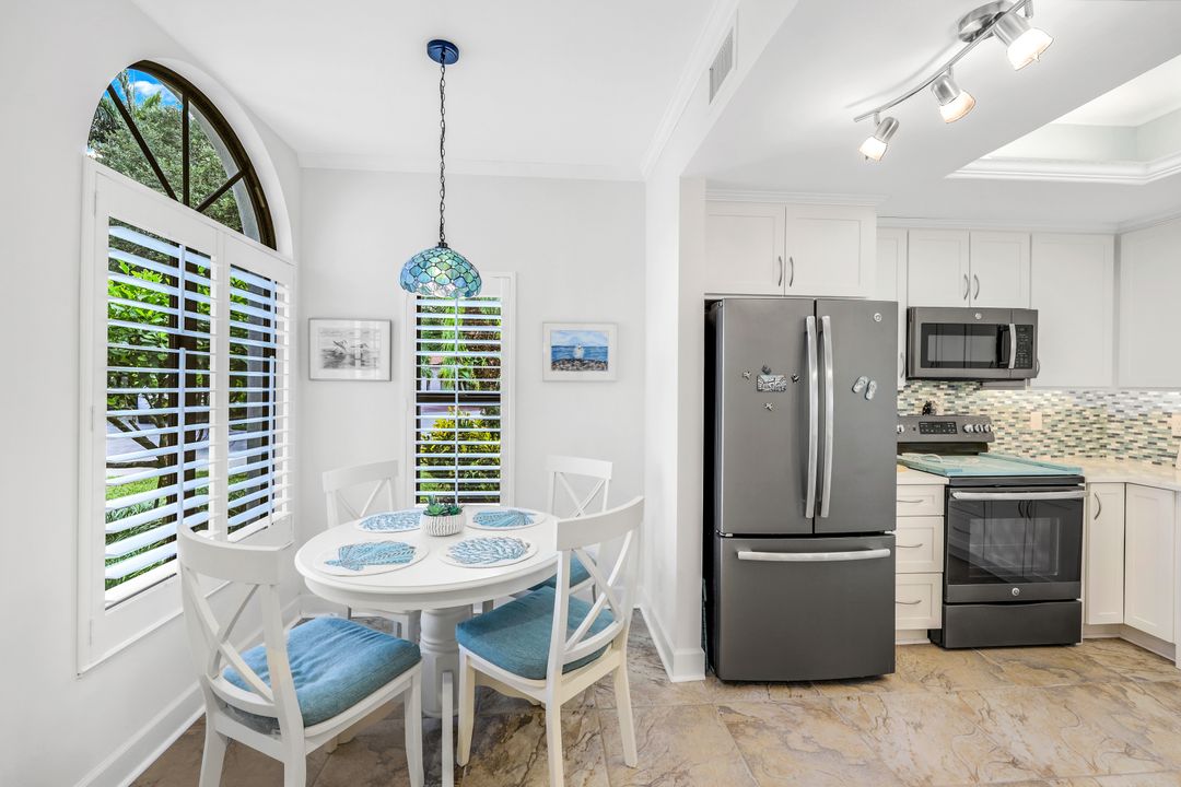 Welcome to your dream condo, where modern elegance meets unparalleled convenience! This stunning two-bedroom, two-bathroom condo with a one-car garage offers an exceptional living experience in one of Naples' most sought-after locations. Step inside to discover a spacious open floor plan adorned with beautiful tile floors throughout, providing a seamless flow from room to room. The attention to detail is evident with the exquisite crown molding that adds a touch of sophistication to every corner. The heart of the home, the kitchen, has been meticulously upgraded with brand-new cabinets, countertops, and top-of-the-line appliances, making it a chef's paradise. Both bathrooms also feature new cabinets, ensuring ample storage space and a cohesive aesthetic. Natural light pours in through the new impact sliders and windows, enhancing the condo's energy efficiency and offering peace of mind with their superior storm protection. Plantation shutters throughout add a touch of classic charm while allowing you to control the ambiance and privacy of your space. Located close to downtown Naples, this condo offers the best of both worlds: a tranquil retreat within walking distance of Baker Park and the Naples Greenway. Imagine starting your day with a leisurely stroll through lush nature trails within the community or spending afternoons exploring the scenic beauty of the Naples Greenway. The community boat dock provides easy access to the Gulf of Mexico via Rock Creek for boating enthusiasts, making it one of Southwest Florida's most unique boating communities. Whether you enjoy kayaking, fishing, or simply relaxing on the water, this location caters to your every need. The community itself is designed to foster a sense of relaxation and connection with nature. Residents can enjoy community gardens and a wooden walkway nature trail that winds through picturesque landscapes, offering a serene escape right outside your door. The sense of community is further enhanced by well-maintained common areas, a cabana with a community pool and spa, and friendly neighbors, creating an inviting atmosphere that truly feels like home. In addition to its natural beauty and outdoor amenities, this condo is in a prime location that provides easy access to all Naples has to offer. From world-class dining and shopping to cultural attractions and entertainment, you'll find everything you need just a short drive away. Whether you're looking for a quiet night in or an evening out on the town, this location offers endless possibilities. This condo is not just a place to live; it's a lifestyle. Its modern upgrades, convenient location, and community amenities provide the perfect blend of comfort and luxury. Don't miss the opportunity to make this exceptional condo your new home. Experience the best of Naples living and schedule a viewing today. Welcome home!
