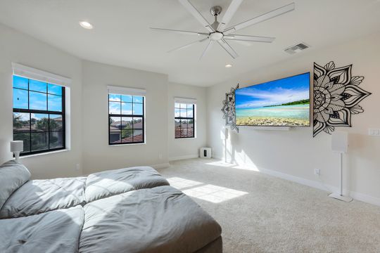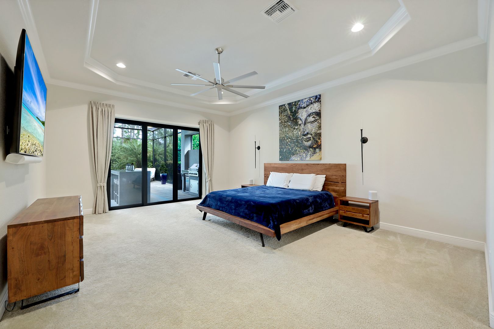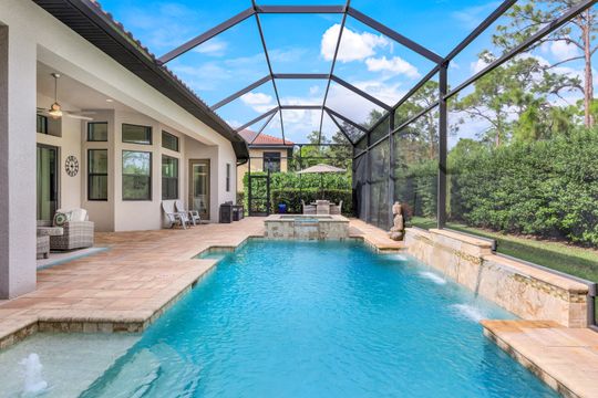 Welcome to your dream home in Bonita Springs! This luxurious 4BR+Den/4.5 bath multi-level residence has clean lines & natural earth-tone colors creating a sophisticated ambiance. Spanning over 3820 sq ft, this magnificent open floor plan boasts arched entries, volume ceilings, high-end lighting, crown molding, & beautiful wrought iron banister staircase. Chef's kitchen features 42" cabinets, quartz counters, under cabinet lighting, premium SS appliances, GAS cooktop, & massive island w/ breakfast bar seating. Entertain in style as guests seamlessly transition through large glass sliding doors to the extended outdoor living area. Your outdoor kitchen with a built-in grill awaits, alongside outdoor dining, & stunning pool & spa w/ 3 waterfalls. Master BR +2 en-suite Bedrooms & office on 1st floor. 2nd level features a spacious loft sitting area & private guest suite & bath. Every detail has been considered, from plantation shutters to oversized 3 car garage. This home is storm-smart ready w/ Whole Home Generator & all impact-resistant doors & windows. If you're seeking an elite lifestyle in beautiful Southwest Florida, please experience this remarkable property that truly has it all! Also offered as an annual rental at $7000/month. Rent to own can be an option.