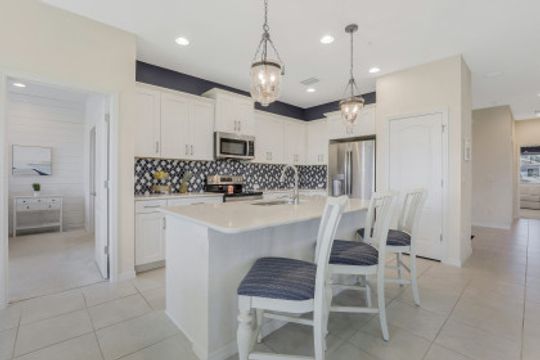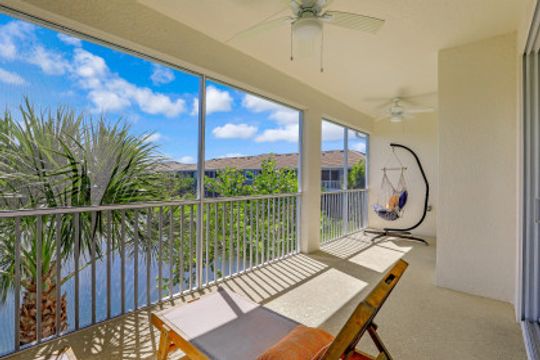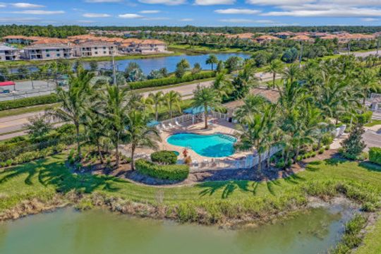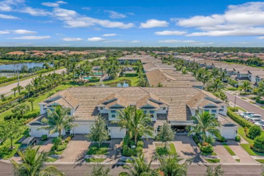 No Builder Delays & No Supply Chain Issues! CREME DE LA CREME & Fully Furnished!! Exceptional 2 Bed + Den w/Sublime Views Overlooking The Landscaped Lake & Water Fountain. This Windemere Floorplan Carriage Home Is Upgraded Beyond Compare & It Comes Fully Furnished & Turnkey! As Soon As You Enter Into The Voluminous Open Concept Floorplan With Its Oversized Tile, Plantation Shutters, Navy Accents, Designer Lights/Fans & Custom Drapery, You Will Know This Is Home. As An End Unit, This Home Is Flooded w/Natural Light From Endless Impact Windows/Doors That Capture The Views & Flow Out To The Oversized South-Facing Lanai. The Kitchen Centers This Layout, Abundant w/White Cabinets, After-Build Backsplash, Quartz Counters & SS Appliances. The Primary Suite Is A Private Oasis w/Shiplap Feature Wall & Oversized Closet w/Specialized Built-Ins. Innovative Finishes Include A Remote-Controlled Thermostat, Doorbell, Garage Door Opener, And Indoor Camera. The Intimate Coastal-Themed Richmond Park Offers A Clubhouse w/pool! A Stellar Location Close To Everything! Minor Furniture Exclusions Are Master Closet Dresser (2), Shoe Rack(1), Shelf (1), Ottomans (2), And Sectional Sofa In Den.